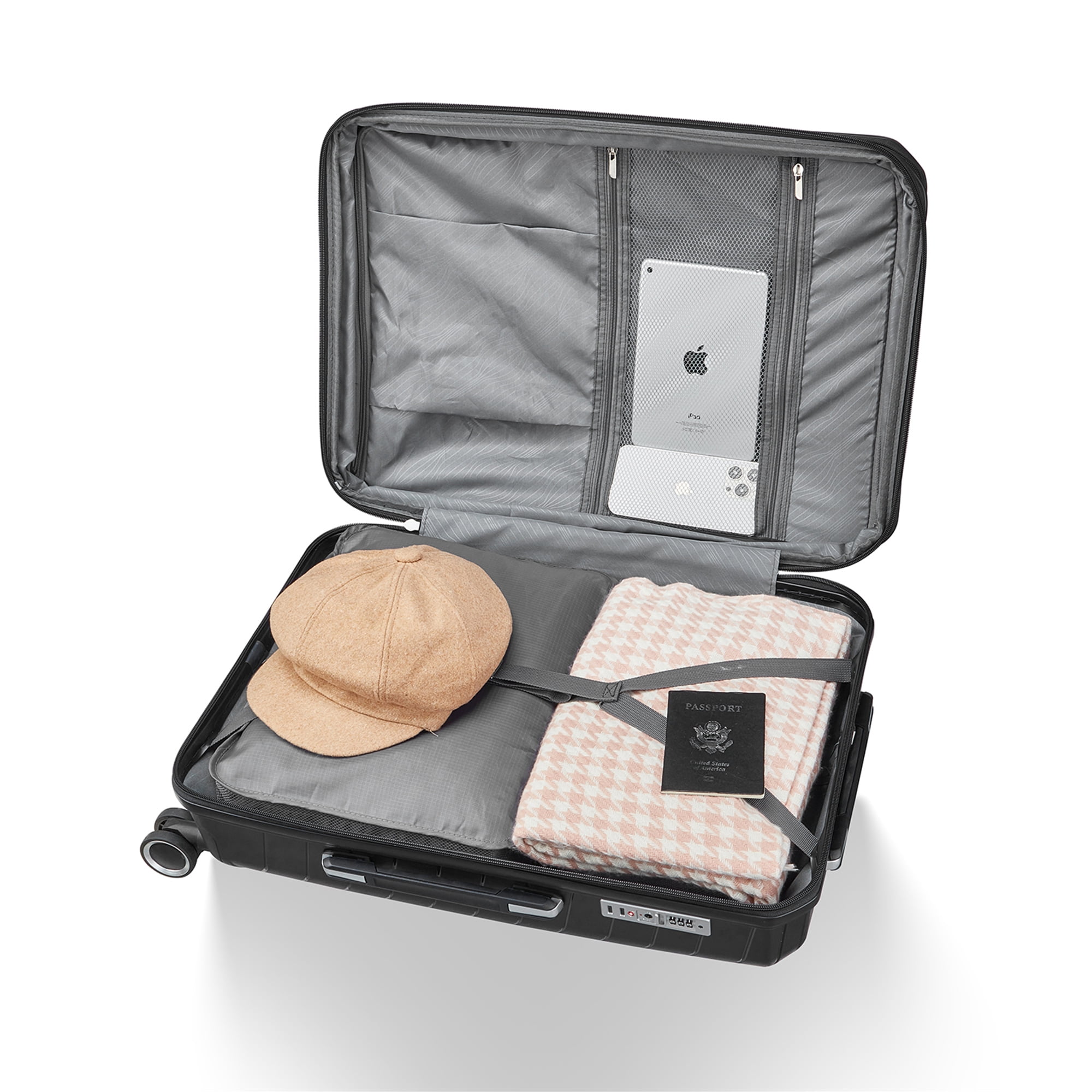 ENHANCED TRAVEL ORGANIZATION – Our AK-LG02-014 luggage set includes four different sizes of suitcases to accommodate all your travel needs. The set comprises a spacious 30-inch suitcase for extended trips, a versatile 26-inch suitcase for medium-length journeys, a convenient 22-inch carry-on, and a compact travel tote for your essentials. Whether you’re embarking on a weekend getaway or an overseas adventure, we’ve got you covered. DURABLE AND DEPENDABLE – Crafted from high-quality, rugged PP materials, our luggage set is built to withstand the rigors of travel. The hard-shell exteriors are designed to protect your belongings from rough handling and harsh weather conditions. With sturdy, multidirectional spinner wheels and reinforced corner guards, our suitcases will glide effortlessly and endure for years to come. ORGANIZED PACKING – Say goodbye to chaotic packing and endless rummaging! Each suitcase features a fully lined interior with multiple compartments and pockets. The spacious main compartments are perfect for your clothing, while the extra toiletry bag case is ideal for smaller items like toiletries and accessories. A compression strap keeps your clothes neatly in place during transit, minimizing wrinkles. CONVENIENT EXTRAS – We’ve included a durable travel tote that attaches securely to your luggage via a convenient strap, making it easy to carry extra items or keep important documents within reach. The telescoping handles are ergonomically designed for comfort and convenience. SECURITY AND PEACE OF MIND – Travel with confidence knowing your belongings are secure. Our luggage set comes equipped with a TSA-approved combination lock, allowing airport security to inspect your luggage without damaging it. Rest easy knowing your valuables are protected. EASY MANEUVERABILITY – The 360-degree spinner wheels provide effortless maneuverability, making it a breeze to navigate crowded airports, train stations, and hotel lobbies. Push, pull, or glide your suitcase effortlessly, even in tight spaces. PRODUCT INFORMATION Overall – Toiletry bag: 11″ H x 13.6″ L x 6.7″W; 2 LB Overall – Small: 21.7″ H x 13.6″ L x 8.7″W; 5.7 LB Overall – Medium: 25.6″ H x 16.1″ L x 11″W; 7.5 LB Overall – Large: 29.5″ H x 18.5″ L x 12.6″D; 10.14 LB Overall Product Weight: 25 LB Features Product Type: 4 Pcs Luggage Set Primary Material: Polypropylene Finish: Black Expandable: Yes Spinner Wheels: Yes Handle Included: Yes TSA Lock: Yes Supplier Intended and Approved Use: Residential Use Assembly Assembly Required: No Warranty Product Warranty: Yes Full or Limited Warranty: Limited Warranty Length: 90 Days