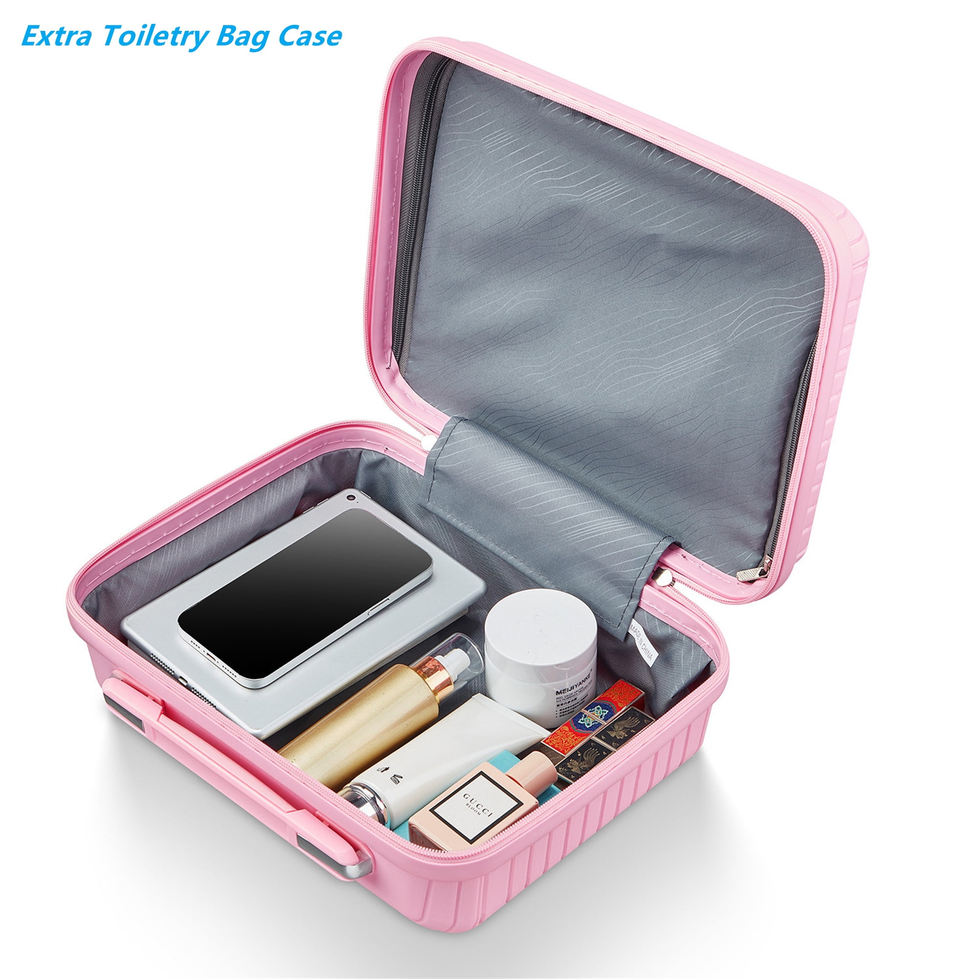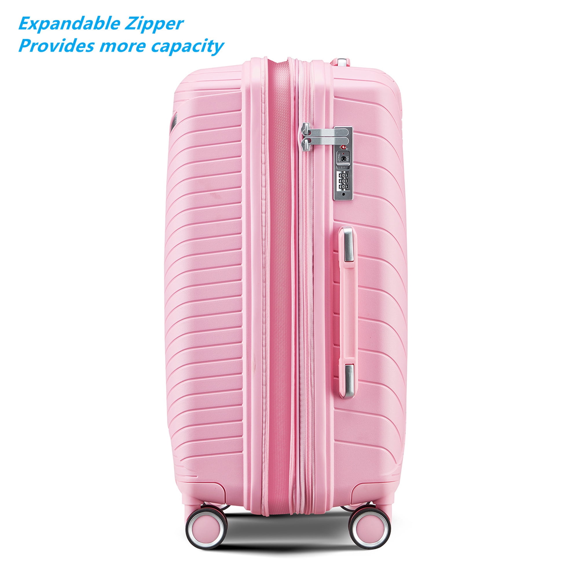 Aukfa Expandable Hardside 4-Piece Luggage Travel Set, Durable Suitcase Double Wheels, Pink