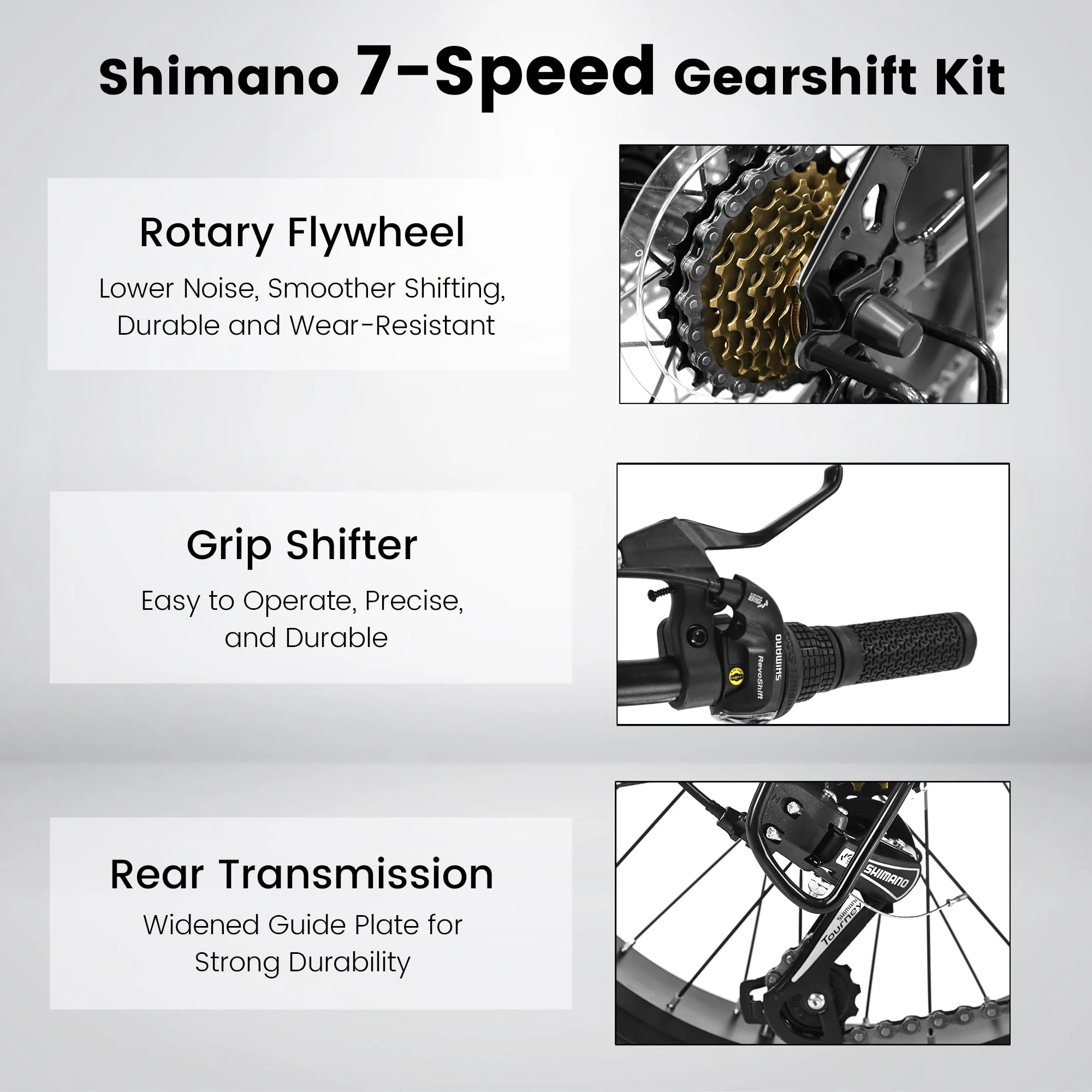 Aukfa Kids 24″ Mountain Bike, 7 Speed Teenager Children Kids’ Bicycles,Green LIGHTWEIGHT STRONG KIDS BIKES – This kids mountain bike features a high-tensile carbon steel frame that’s both lightweight and high-strength, making it easy for kids to control while ensuring durability. The ergonomic step-through design provides a safe and smooth ride, perfect for young adventurers ready to hit the trails, city roads, or off-road paths. Designed with kids’ safety and comfort in mind, this bike is ideal for beginner cyclists and young riders. 7-SPEED DRIVETRAIN FOR VERSATILE RIDING – Equipped with a 7-speed Shimano drivetrain, this kids bike allows for smooth gear shifts and precise positioning, ensuring a seamless riding experience. Whether your child is riding on flat surfaces, hilly terrains, or rough trails, the multi-speed system makes it easy to adapt to various terrains. It’s perfect for helping kids develop confidence and coordination while exploring the outdoors. DOUBLE DISC BRAKES FOR ENHANCED SAFETY -Safety is a top priority with this kids mountain bike. It features a mechanical disc brake system with 160mm rotors on both the front and rear, providing reliable stopping power in all conditions. The dual disc brakes significantly reduce braking distance, ensuring your child can stop immediately in emergencies. This makes it a safe choice for off-road adventures, city commutes, or trail riding. 20*4.0″ WIDE TIRES FOR ALL-TERRAIN RIDING – The 20*4.0″ wide tires are designed for all-terrain riding, offering 5 times more wear resistance than ordinary bike tires. The thickened outer walls and shock-absorbing front fork provide excellent shock resistance, ensuring a smooth ride on rocky trails, sandy beaches, snowy paths, or city roads. The anti-slip grip and strong traction make this bike fully capable of conquering any terrain, giving your child the confidence to explore. 85% PRE-ASSEMBLED FOR EASY SETUP – This kids bike arrives 85% pre-assembled, making setup quick and easy. You’ll need to install the pedals, handlebars, saddle, front wheel, and inflate the tires, which takes about 20 minutes. A bicycle manual and assembly video are included to guide you through the process. If you lose the manual, our customer service team is available to provide an electronic manual. Let your child start their cycling adventures in no time!