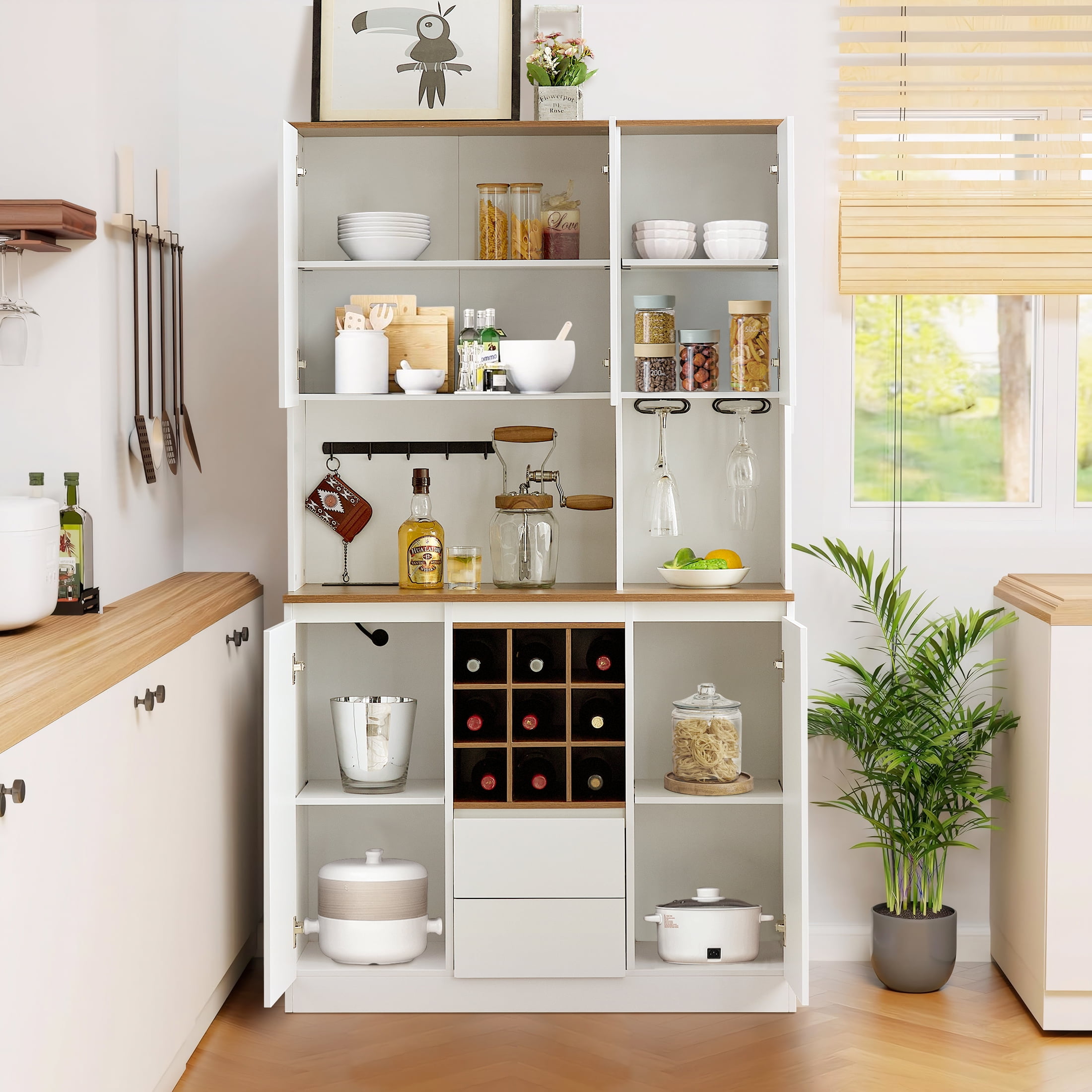 Aukfa Kitchen Cabinet,Sideboard Buffet Cabinet with Large Storage Space – White