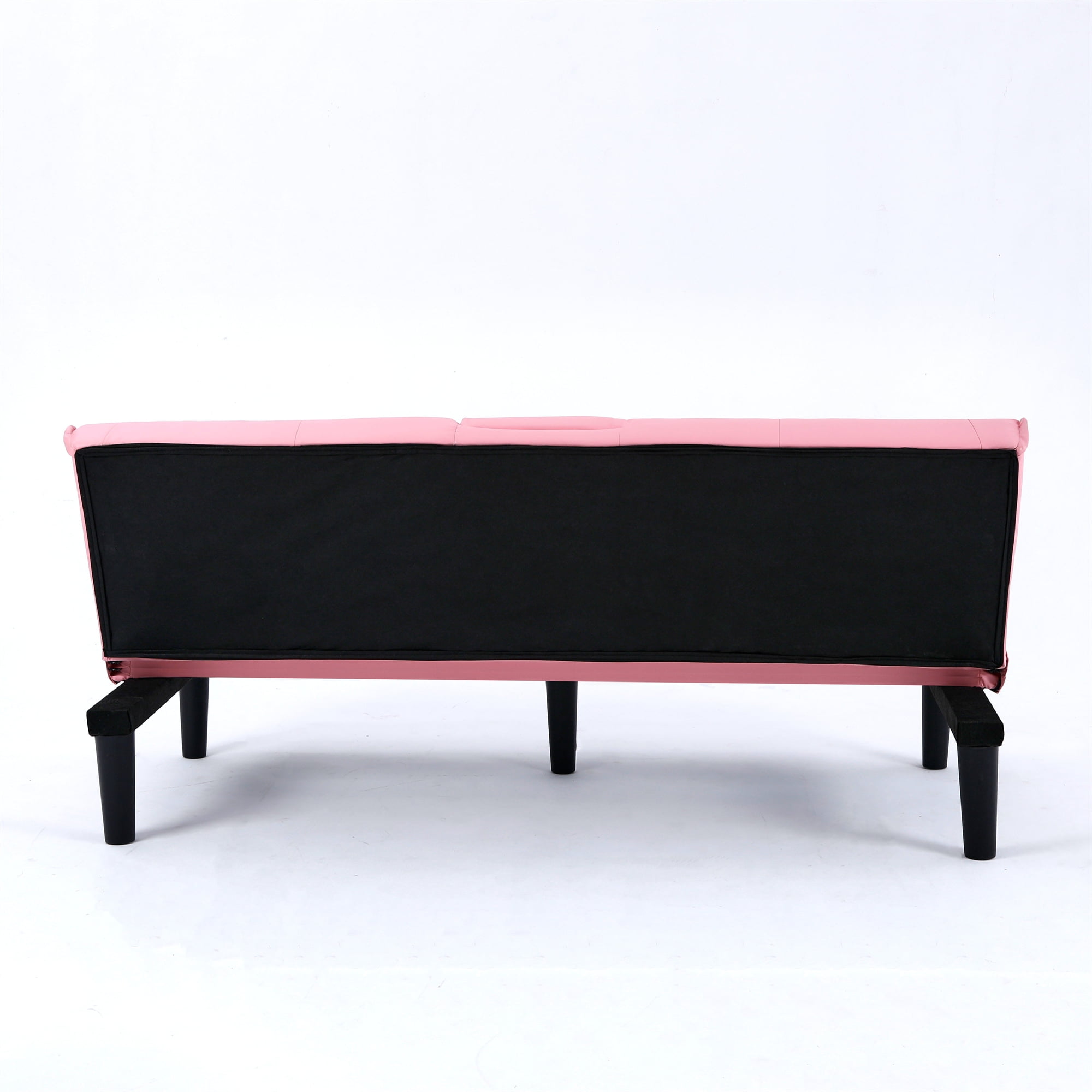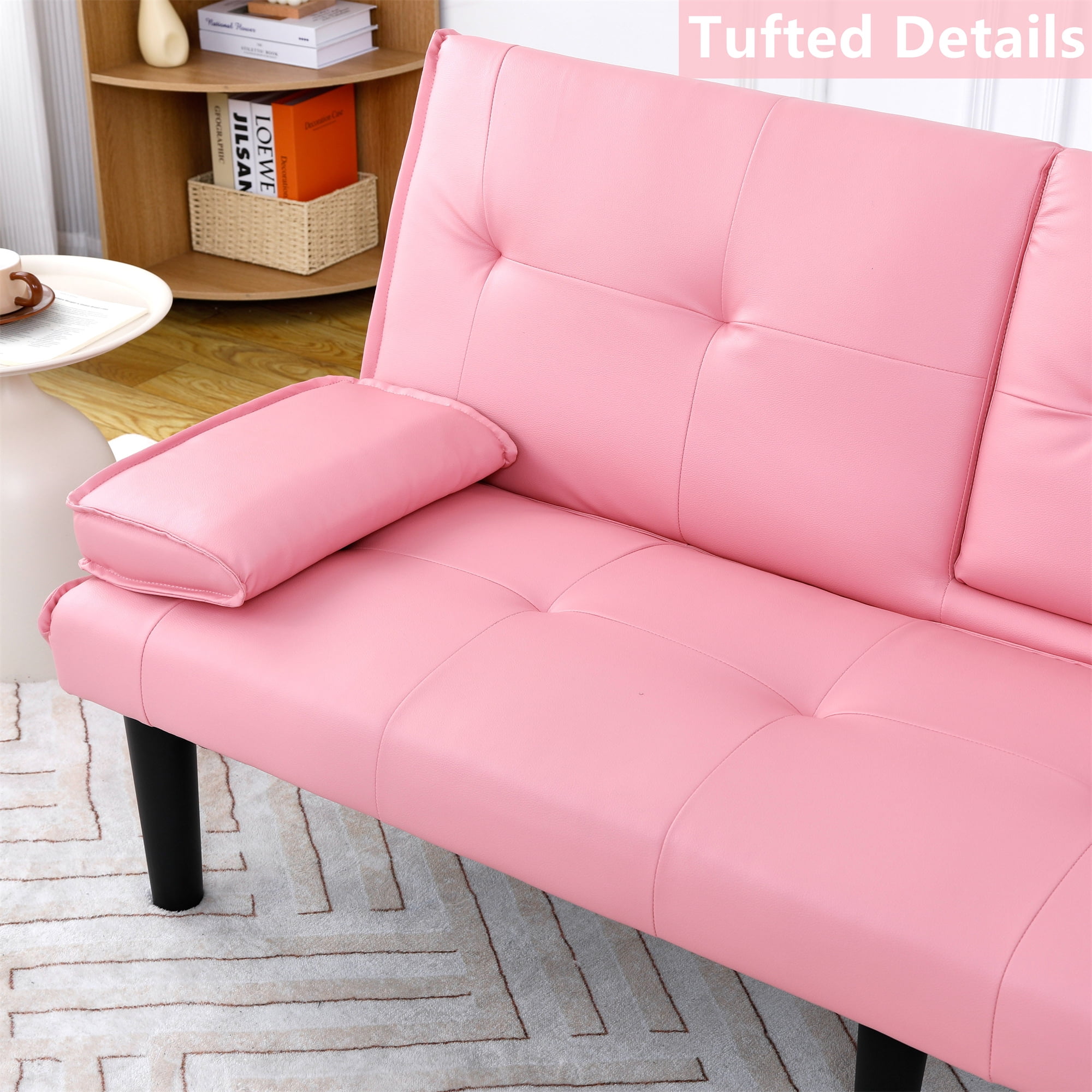 Aukfa Leather Futon Convertible Sofa Bed with 2 Cup Holders&Pillows, Twin Size, Pink