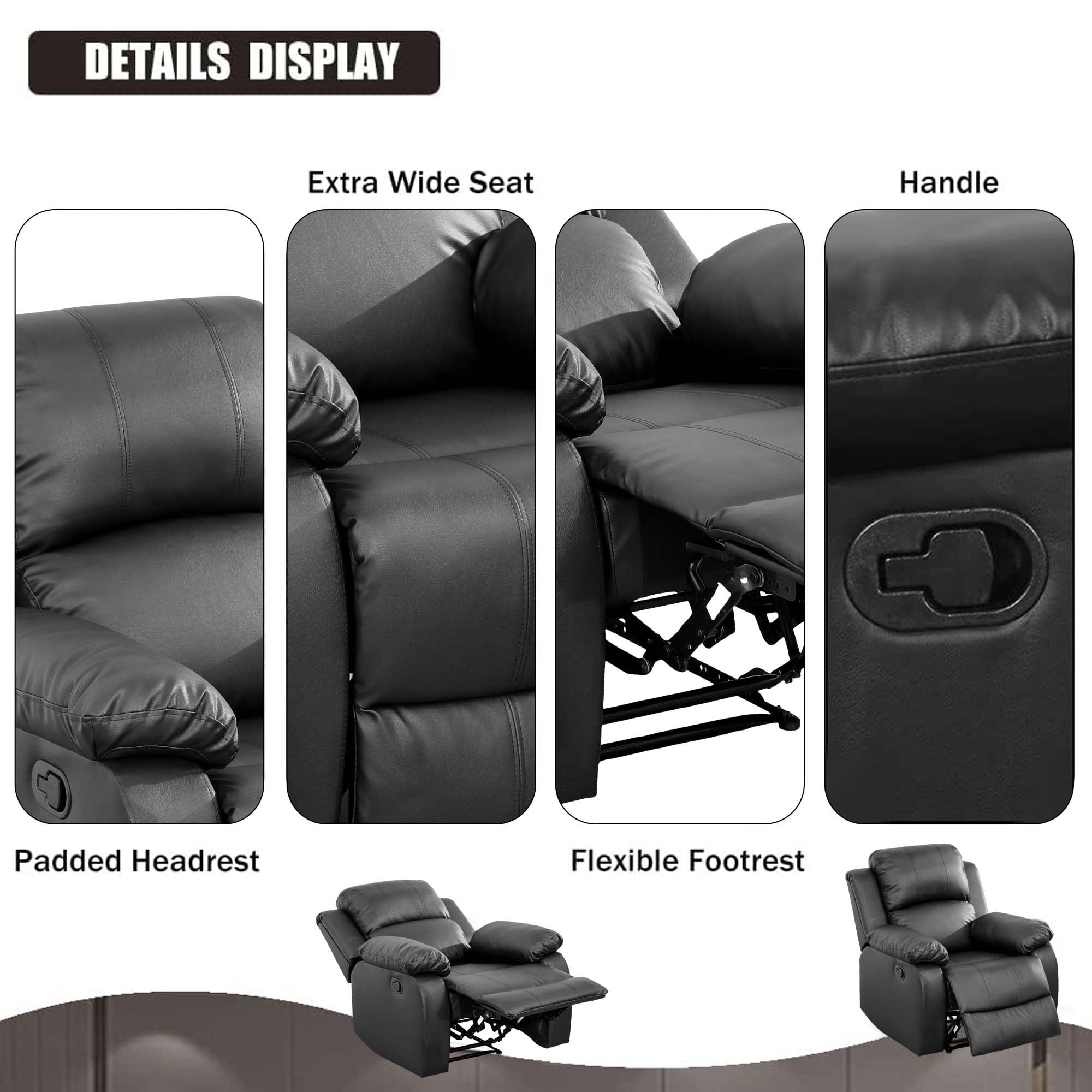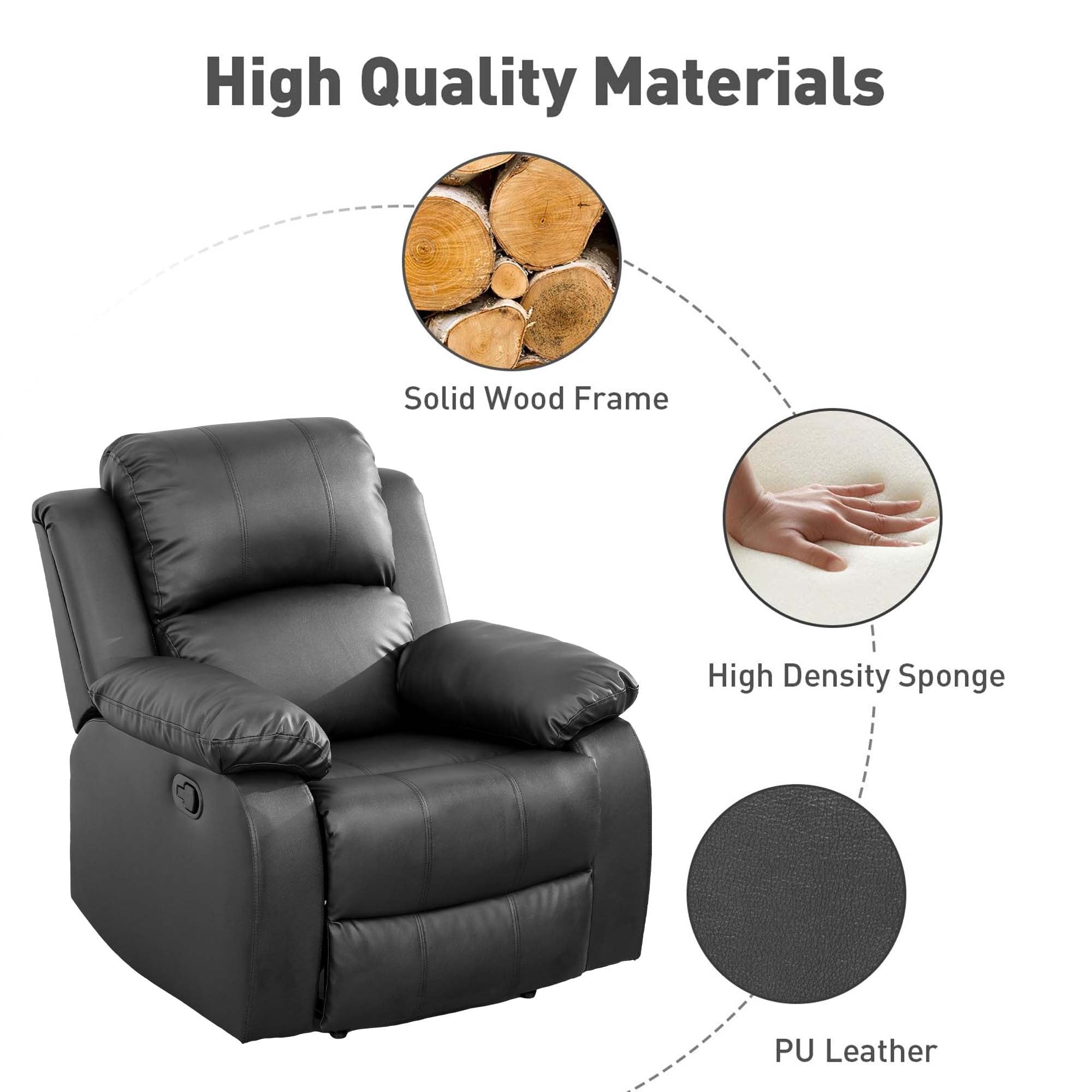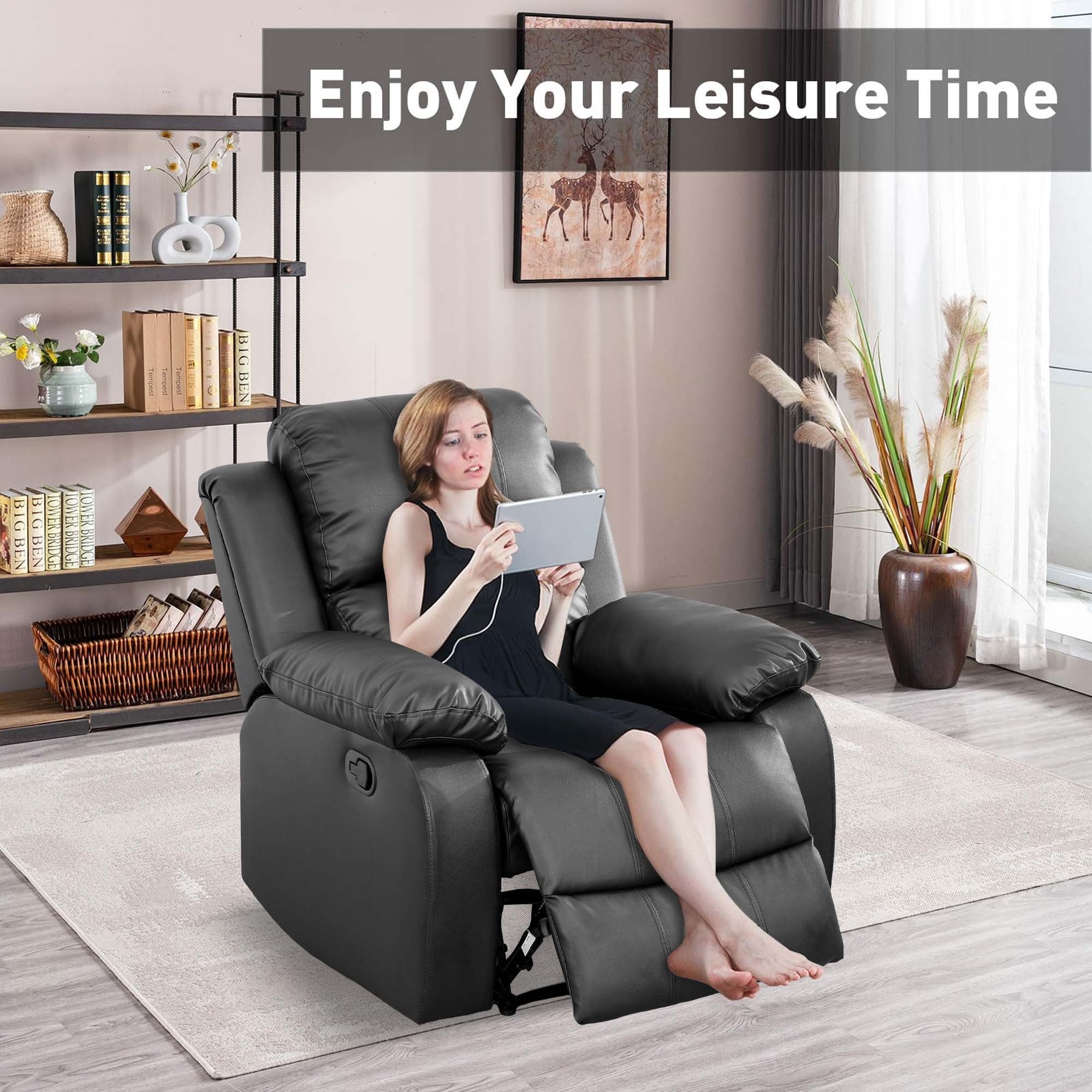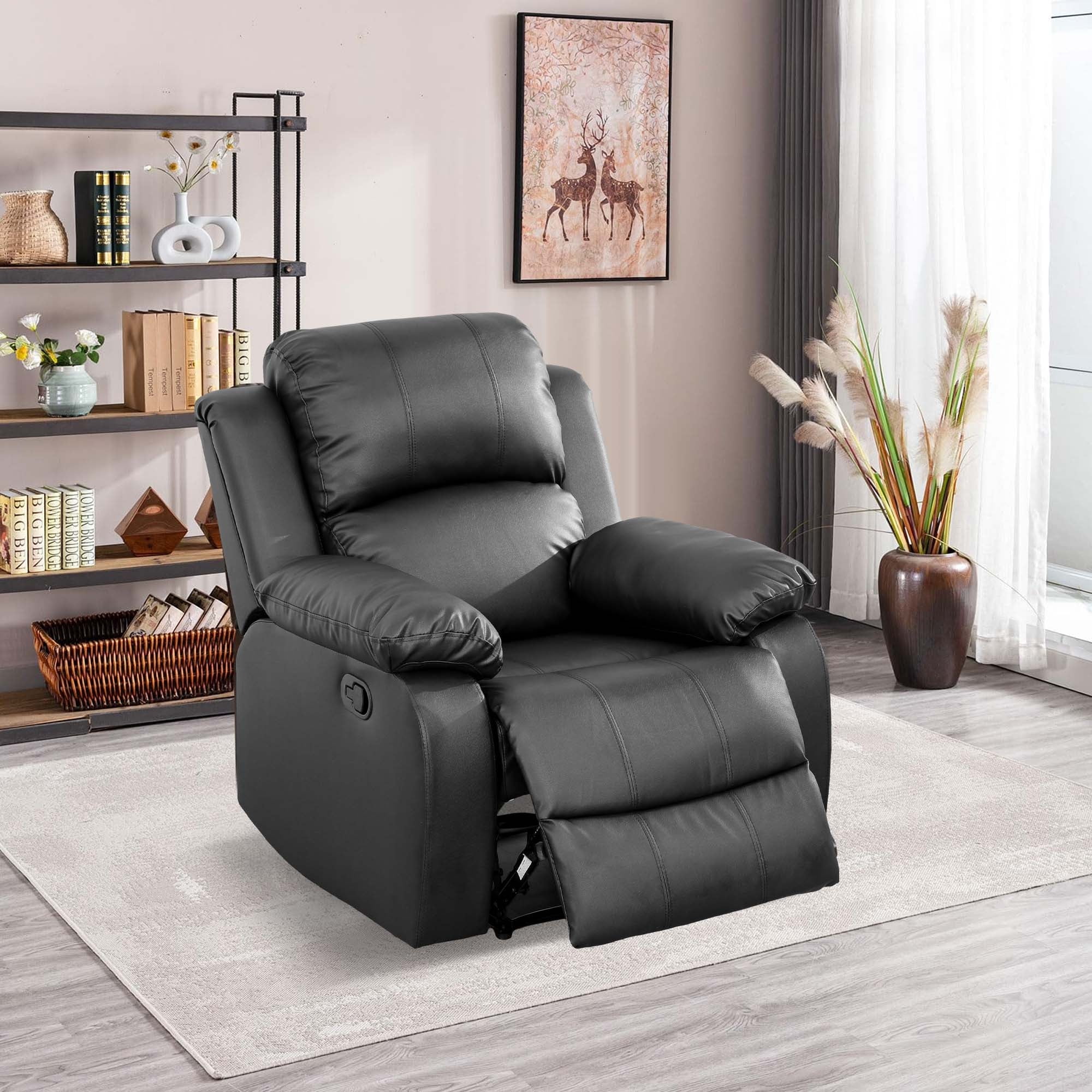 Aukfa Leather Recliner Chair, 38″ Overstuffed Armchair Living Room Read Chair for Adults, Black