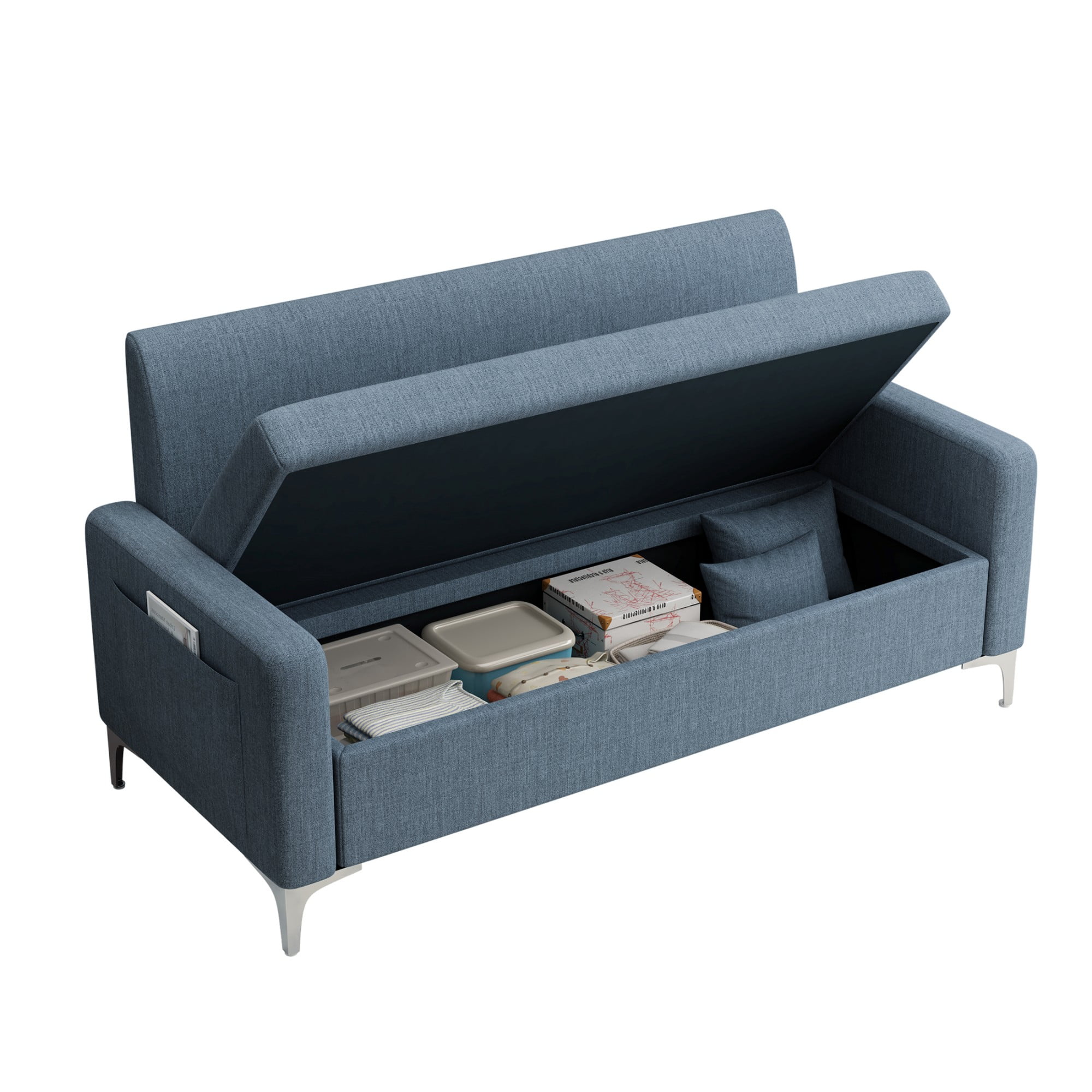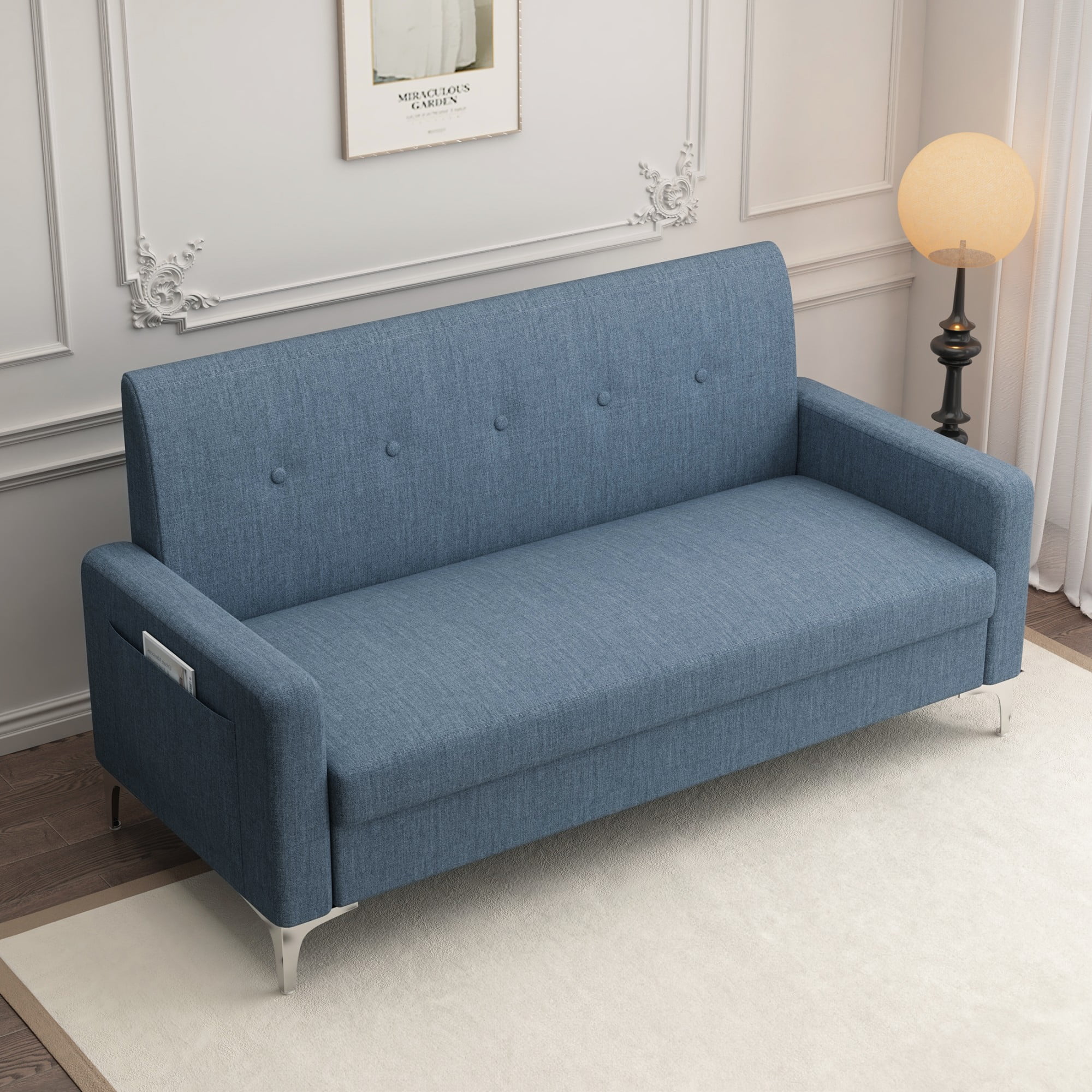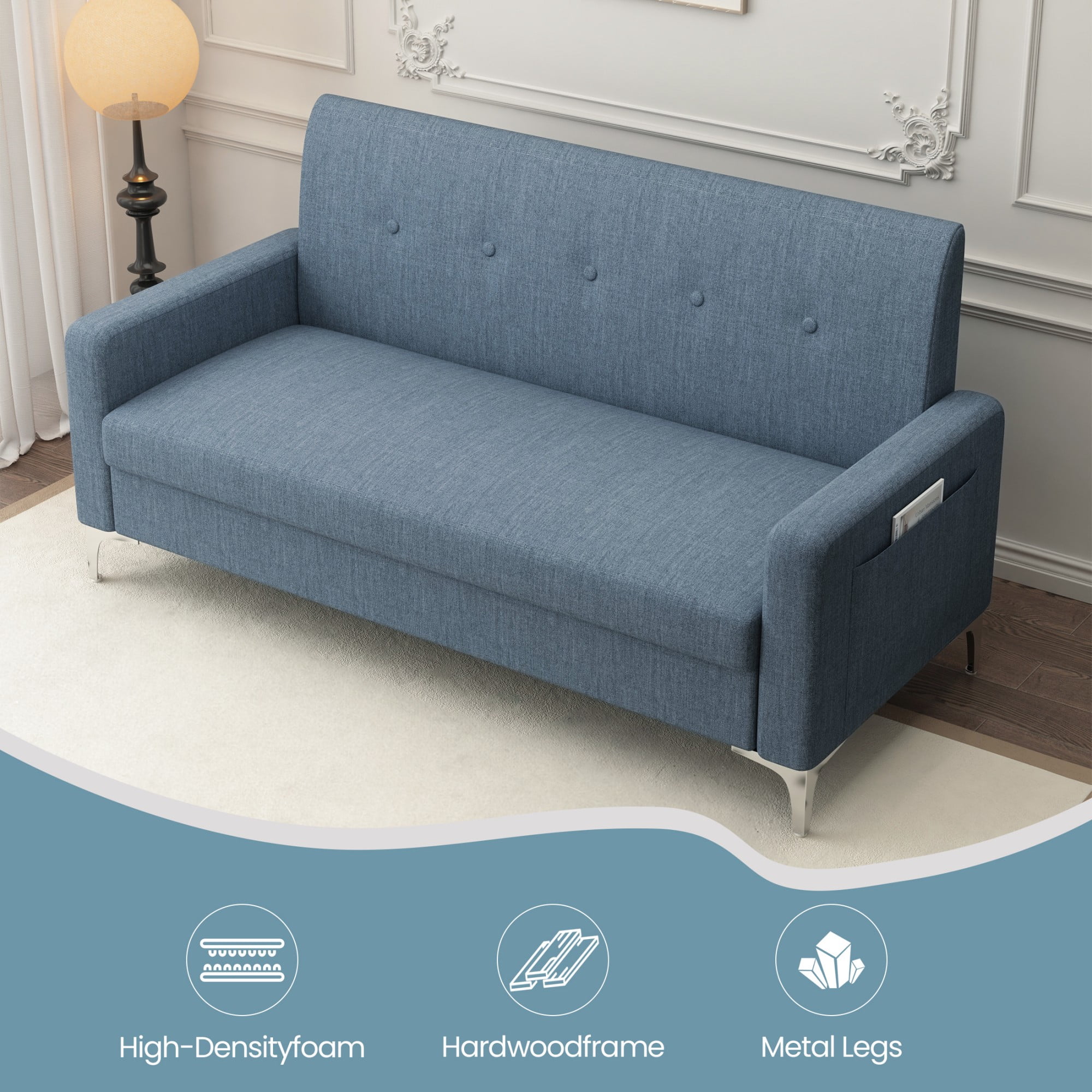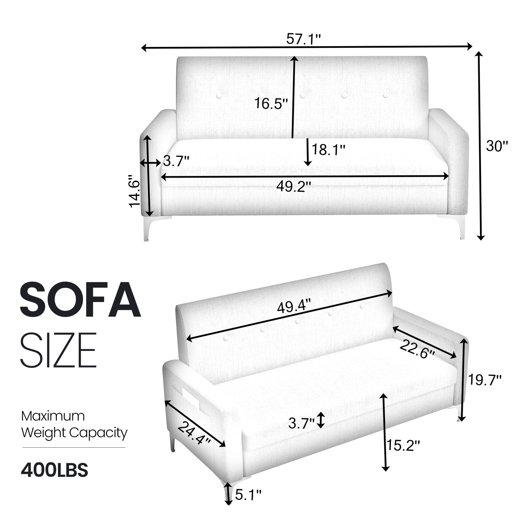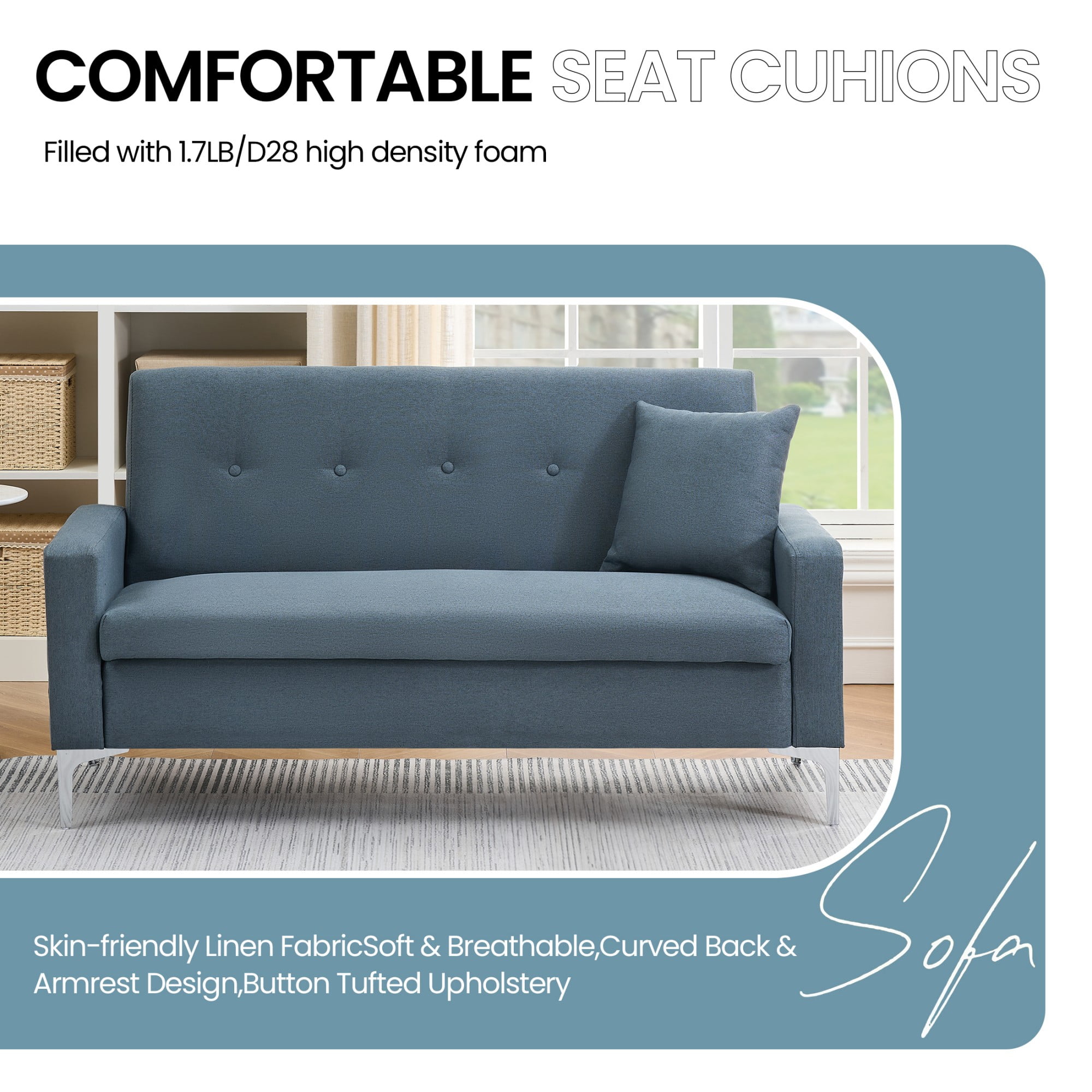 Features STYLISH LINEN UPHOLSTERY – Crafted from high-quality linen fabric, this tufted button design loveseat with pillow offers a sleek, modern look that complements any decor while providing durability and comfort. SPACE-SAVING STORAGE SOLUTION – The mini couch features a convenient storage compartment under the seat, perfect for stowing blankets, pillows, books, or other essentials, helping keep your living space organized. COMPACT LOVESEAT DESIGN – Ideal for apartments, small spaces, or cozy living areas, this sofa couch combines style and function without taking up too much room. STRONG & STURDY CONSTRUCTION – Built to last, this loveseat can support up to 400 lbs, making it a reliable and sturdy seating option for daily use. EASY-TO-ACCESS SIDE POCKETS – With side pockets for magazines, remote controls, or other items, this loveseat keeps everything you need within reach for added convenience. Specifications Product Name: Loveseat Sofa Overall Size: 24.4″D x 57.1″W x 30″H Upholstery Material: Linen Frame Material: Solid; Manufactured Wood Fill Material: Sponge Seat Construction: Solid wood; Serpentine spring Leg Material: Metal Weight Capacity: 400 lb. Storage Included: Yes Number of Pillows Included: 1 Removable Cushion Cover: No Weight Capacity: 400 LBS User Manual: AK_AK-HLS8FL3001-K2_PUM_VY-102524
