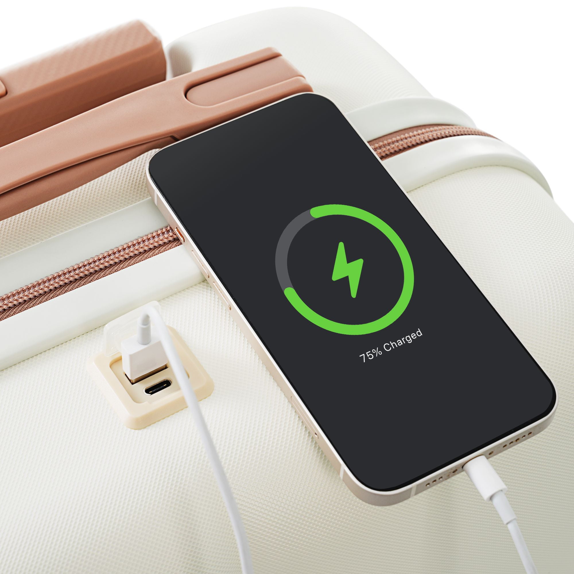 Aukfa Luggage Set, 3 Piece Expandable Hardshell Suitcase with USB Port and Cup Holders, Spinner Wheels, Beige