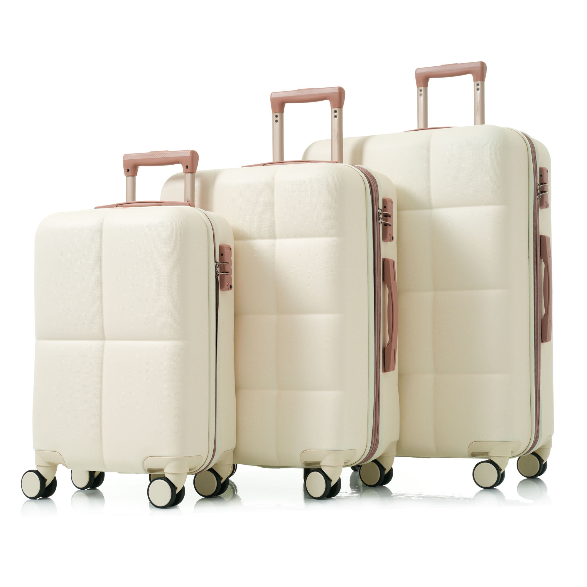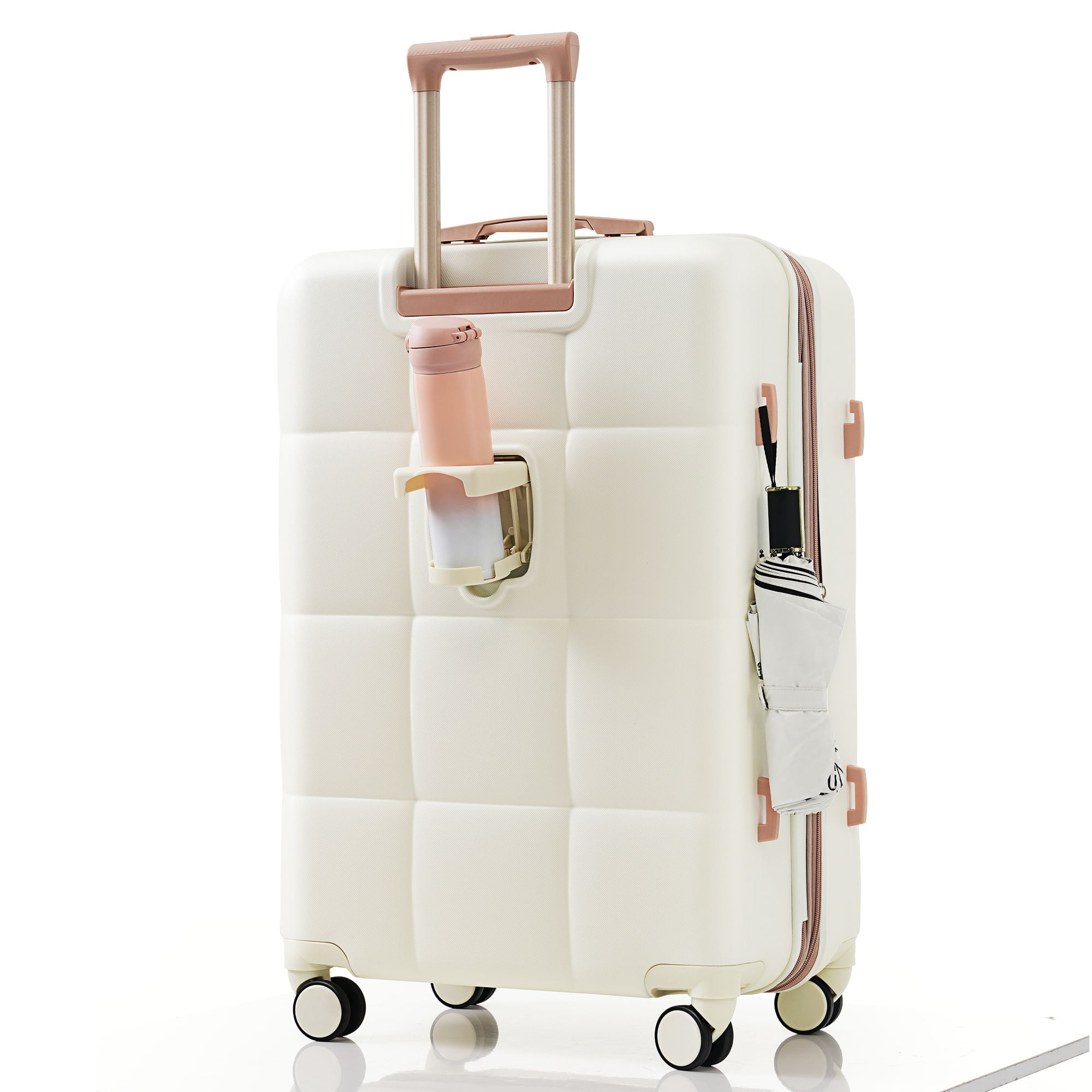 Features CARRY ON LUGGAGE SET – The 20″ carry-on suitcase features USB charging ports (power bank not included), while the 24″ and 28″ suitcases are expandable, adding 25% more space capacity to the hardshell luggage. THREE CUP HOLDERS – The newly designed cup holder is perfectly integrated into the structure of the spinner luggage, providing you with a convenient option to put your cup on the go without worrying about it tipping or slipping. TSA LOCK & SPINNER WHEELS – Our expandable luggage sets feature TSA-approved locks for secure luggage protection during travel. Choose our 360° silent spinner wheels and enjoy a smooth, quiet, and convenient luggage handling experience, these wheels allow your suitcase to stay upright while getting pushed, pulled and dragged in any direction. ABS LUGGAGE SETS – Made from extra strong ABS material, which is lightweight and extremely durable. Features textured finish to prevent against scratches,keeping lightweight luggage set beautiful trip after trip. SIDE HOOKS – The side hooks of the suitcase can stably bear items of a certain weight and are used to hang various items, making your journey more convenient. Specifications Material: ABS Foldable: No Assembly Required: No Product Warranty: One Year Warranty Specifications Material: ABS Foldable: No Assembly Required: No Product Warranty: One Year Warranty HOW TO RESET THE TSA COMBINATION LOCK The lock is set to 0-0-0 at the factory; Make sure the dials are rotated at 0-0-0 or any other code you’ve set before resetting it; Use a pen or something pointed to press the reset hole adjacent to the dials; Enter your new code by rotating the dials; Push the key button once and your code is now set; Scramble the dials and test your new code to be sure the correct one is set.