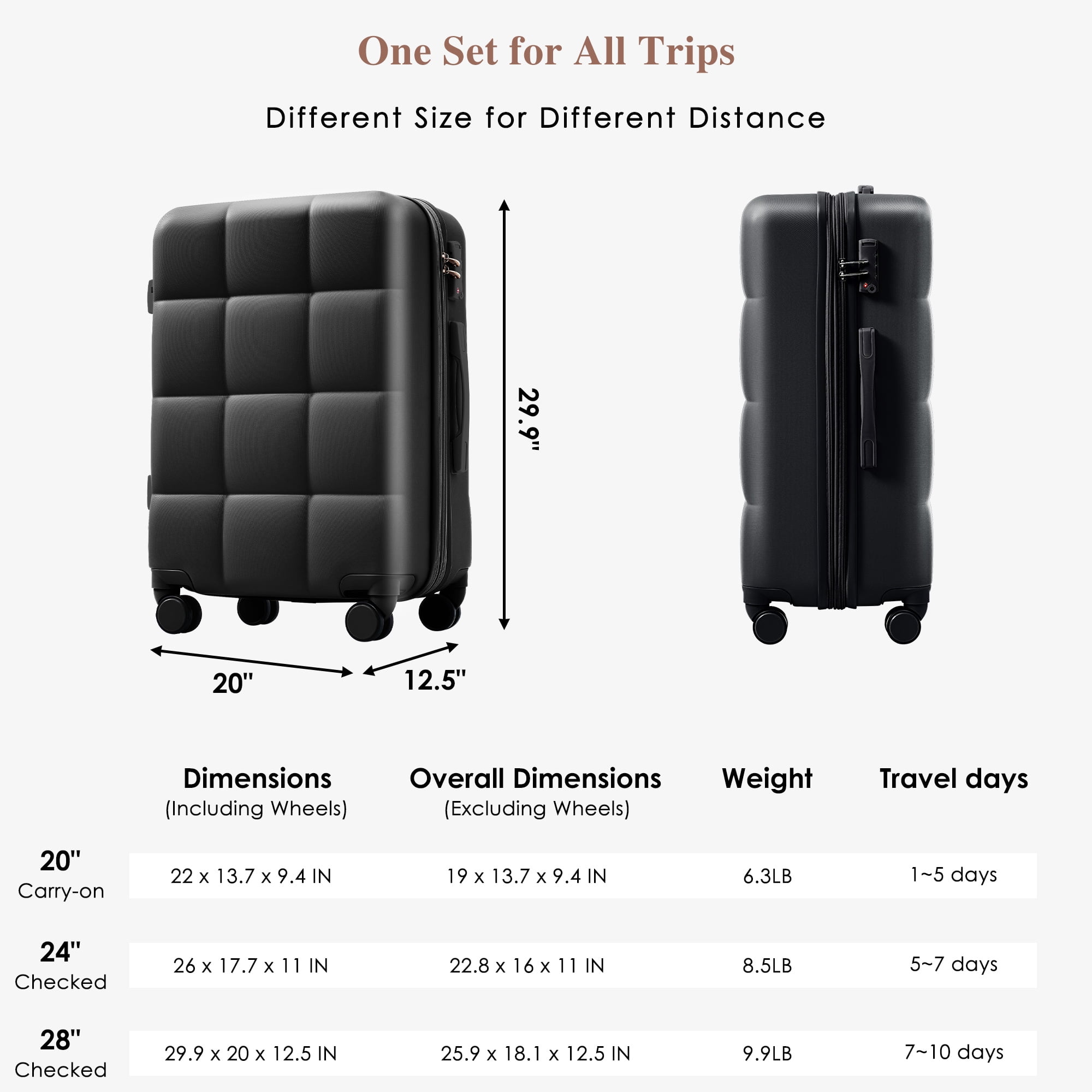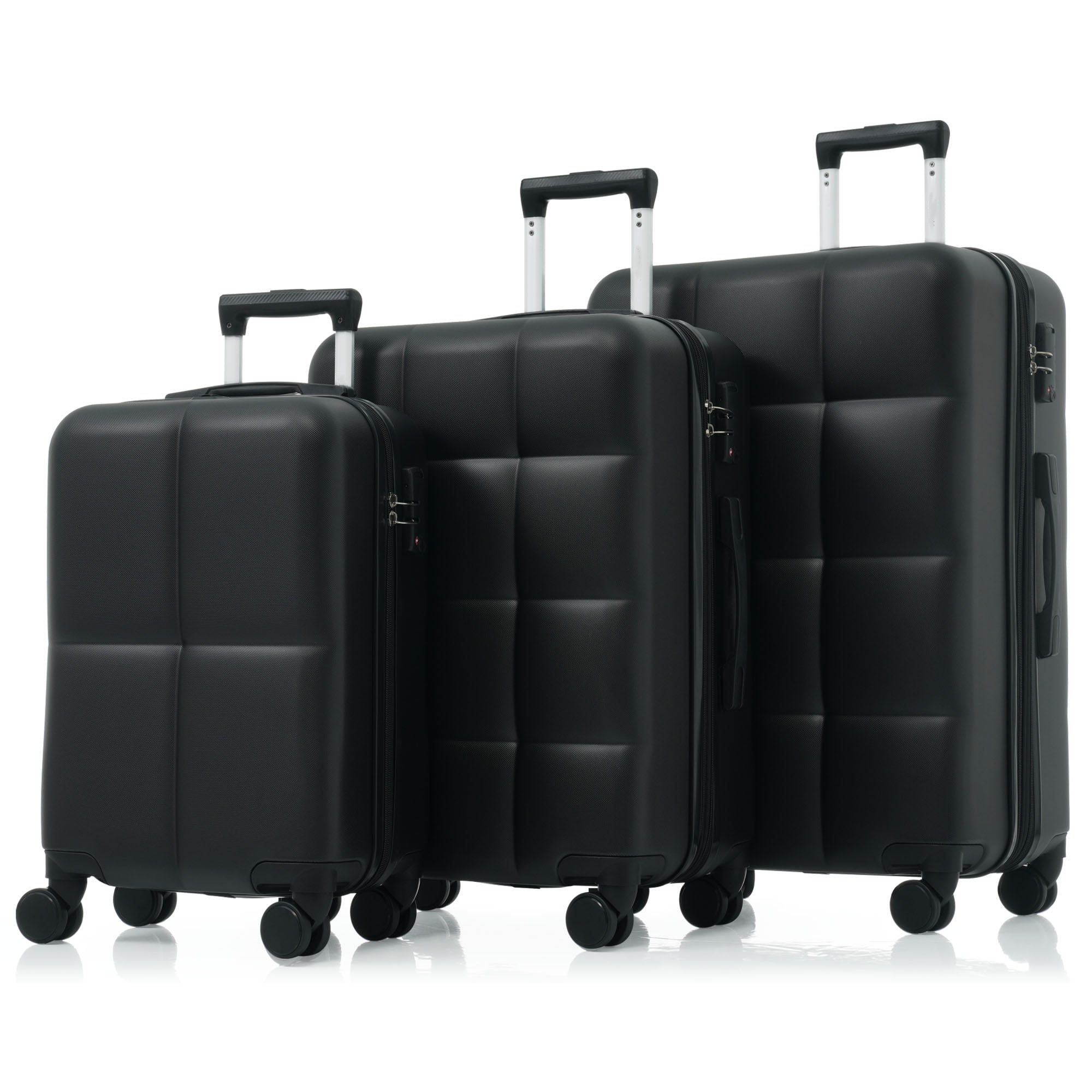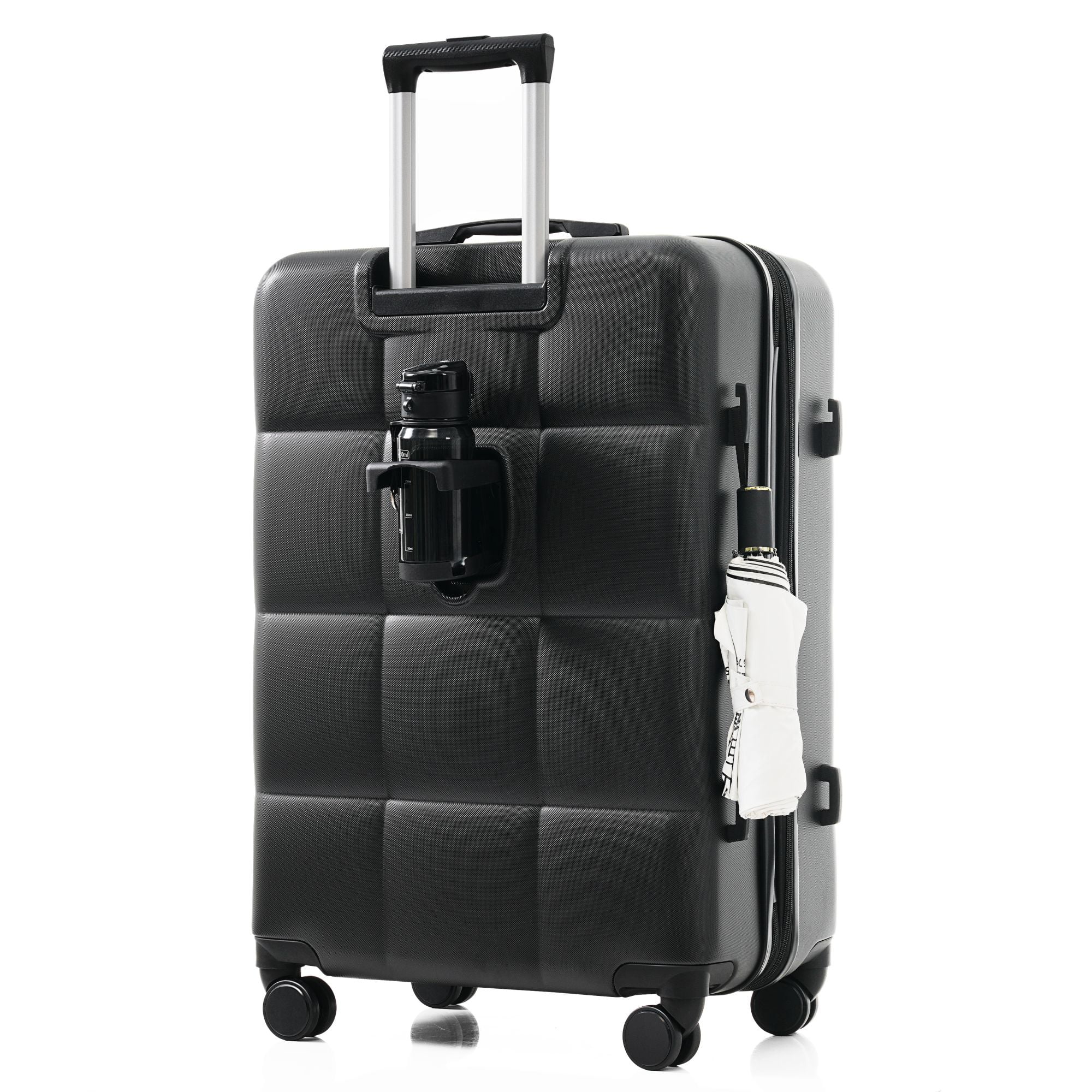 Features CARRY ON LUGGAGE SET – The 20″ carry-on suitcase features USB charging ports (power bank not included), while the 24″ and 28″ suitcases are expandable, adding 25% more space capacity to the hardshell luggage. THREE CUP HOLDERS – The newly designed cup holder is perfectly integrated into the structure of the spinner luggage, providing you with a convenient option to put your cup on the go without worrying about it tipping or slipping. TSA LOCK & SPINNER WHEELS – Our expandable luggage sets feature TSA-approved locks for secure luggage protection during travel. Choose our 360° silent spinner wheels and enjoy a smooth, quiet, and convenient luggage handling experience, these wheels allow your suitcase to stay upright while getting pushed, pulled and dragged in any direction. ABS LUGGAGE SETS – Made from extra strong ABS material, which is lightweight and extremely durable. Features textured finish to prevent against scratches,keeping lightweight luggage set beautiful trip after trip. SIDE HOOKS – The side hooks of the suitcase can stably bear items of a certain weight and are used to hang various items, making your journey more convenient. Specifications Material: ABS Foldable: No Assembly Required: No Product Warranty: One Year Warranty Specifications Material: ABS Foldable: No Assembly Required: No Product Warranty: One Year Warranty HOW TO RESET THE TSA COMBINATION LOCK The lock is set to 0-0-0 at the factory; Make sure the dials are rotated at 0-0-0 or any other code you’ve set before resetting it; Use a pen or something pointed to press the reset hole adjacent to the dials; Enter your new code by rotating the dials; Push the key button once and your code is now set; Scramble the dials and test your new code to be sure the correct one is set.