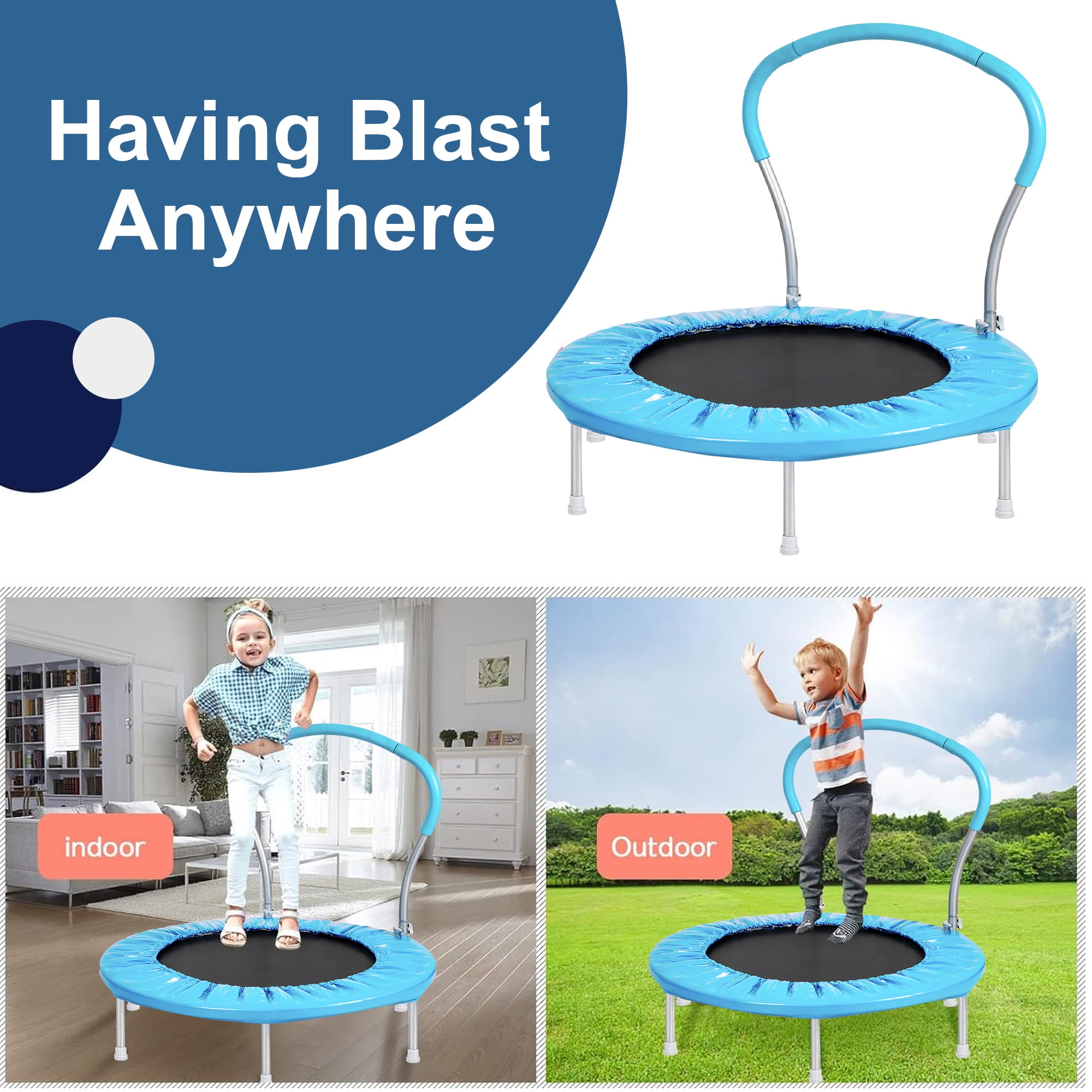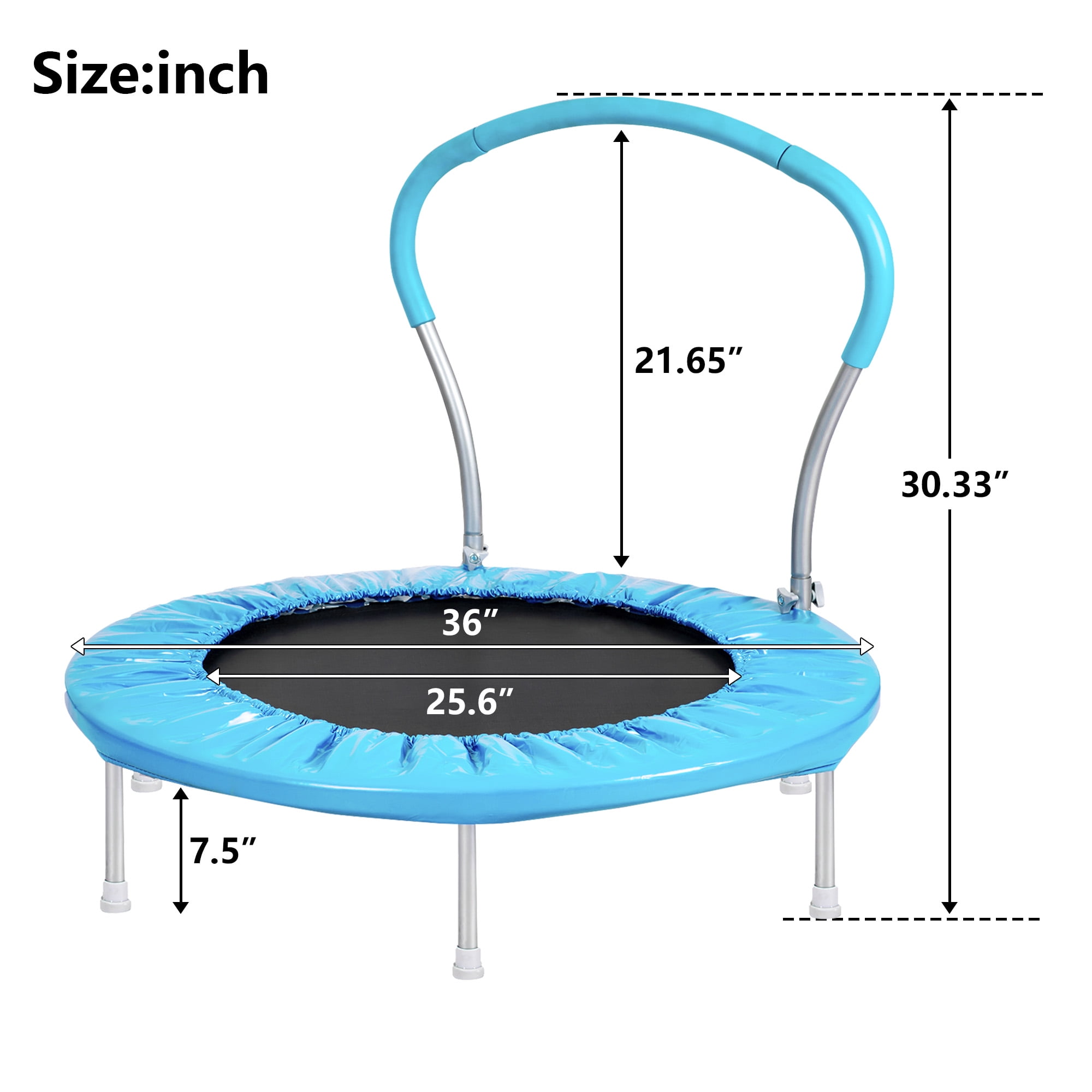 Aukfa Mini Trampoline with Handrail for Kids, 36″ Fitness Rebounder with Safety Pad, Indoor Outdoor, Blue
