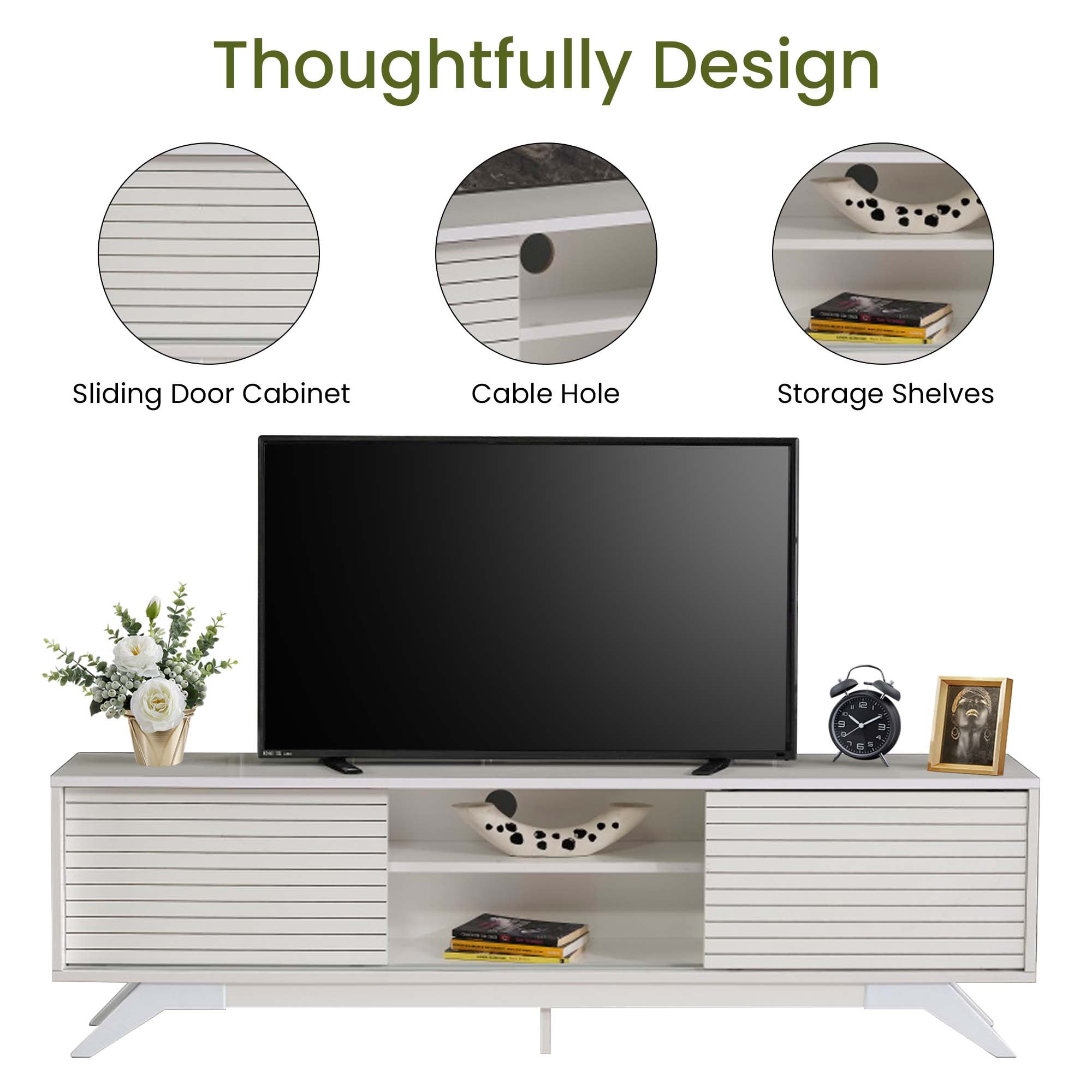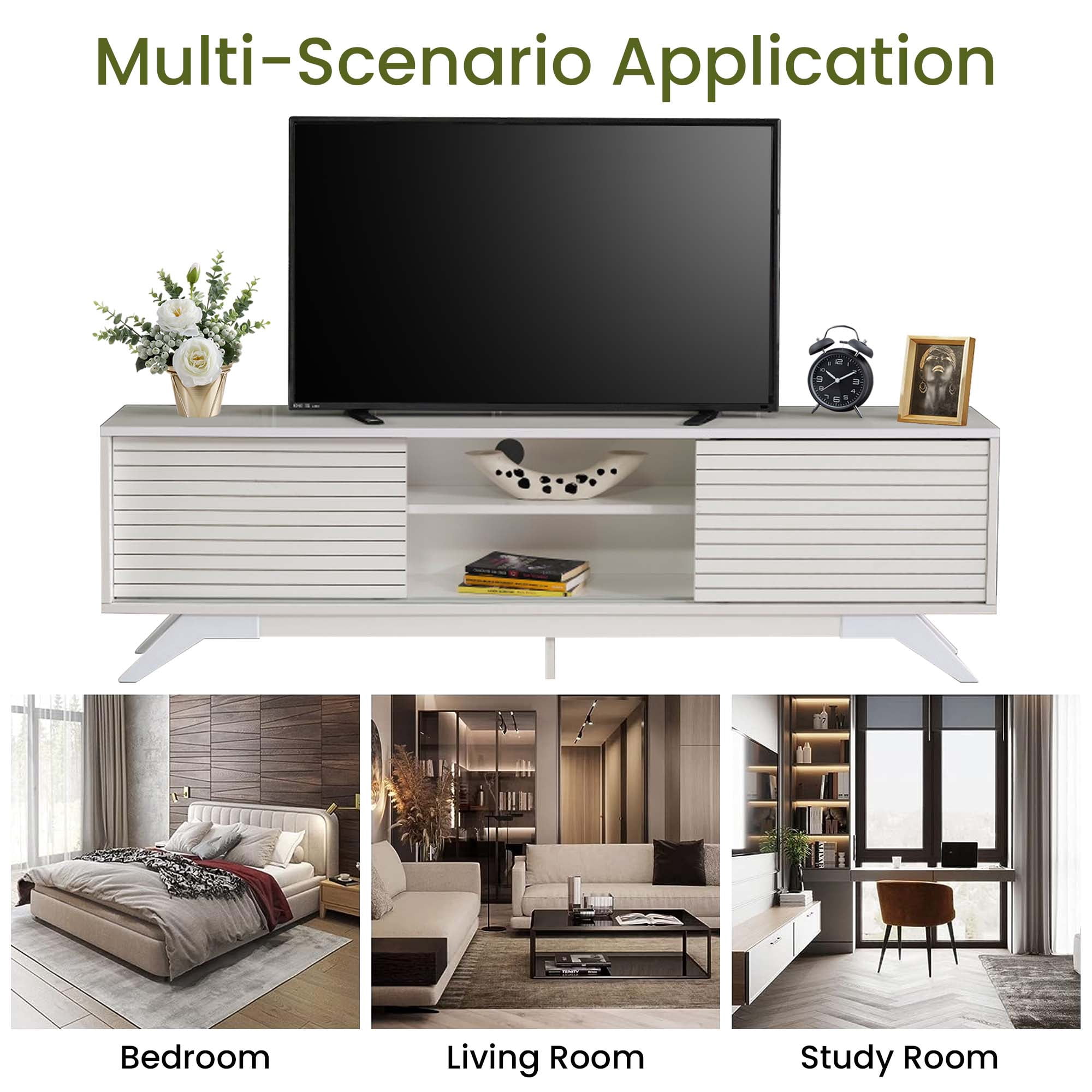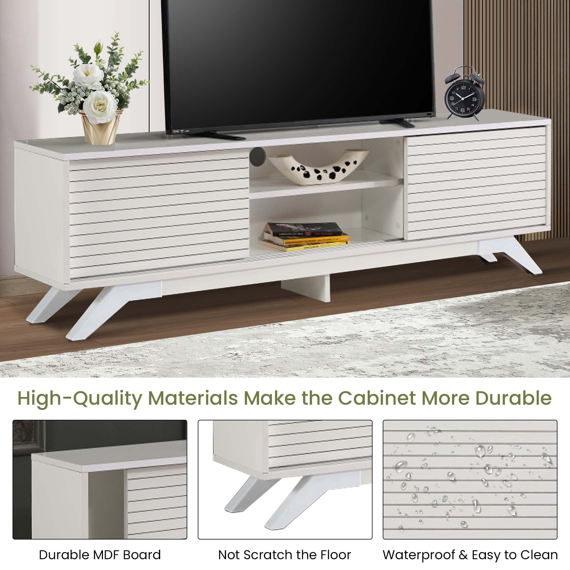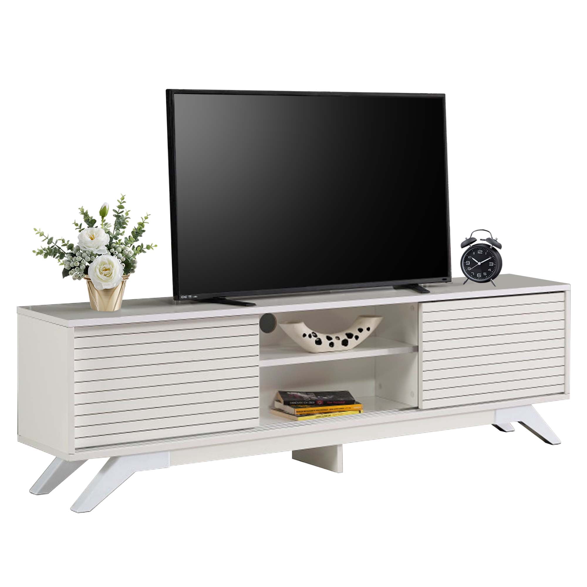 Aukfa Modern TV Stand for TVs up to 70″ – TV Cabinet with 2 Sliding Door for living Room – White