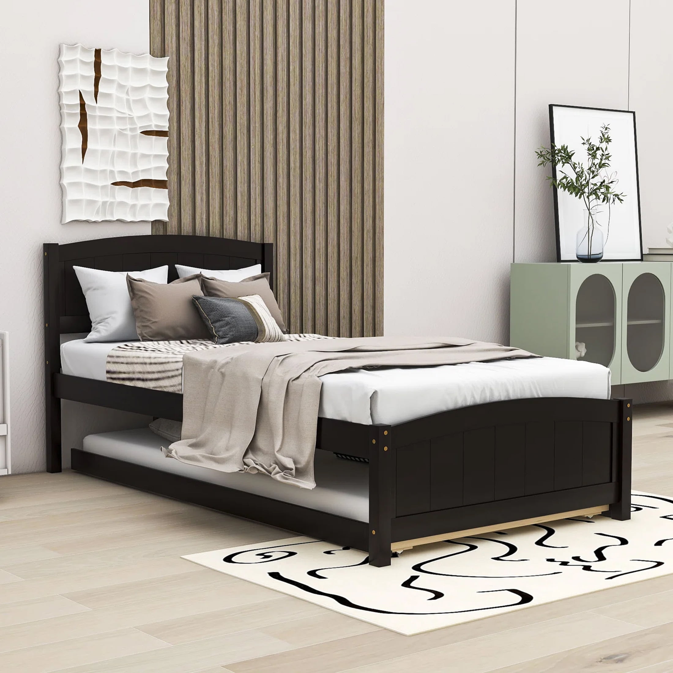 Aukfa Platform Bed with Trundle – Solid Wood Twin Size Bed Frame – Espresso