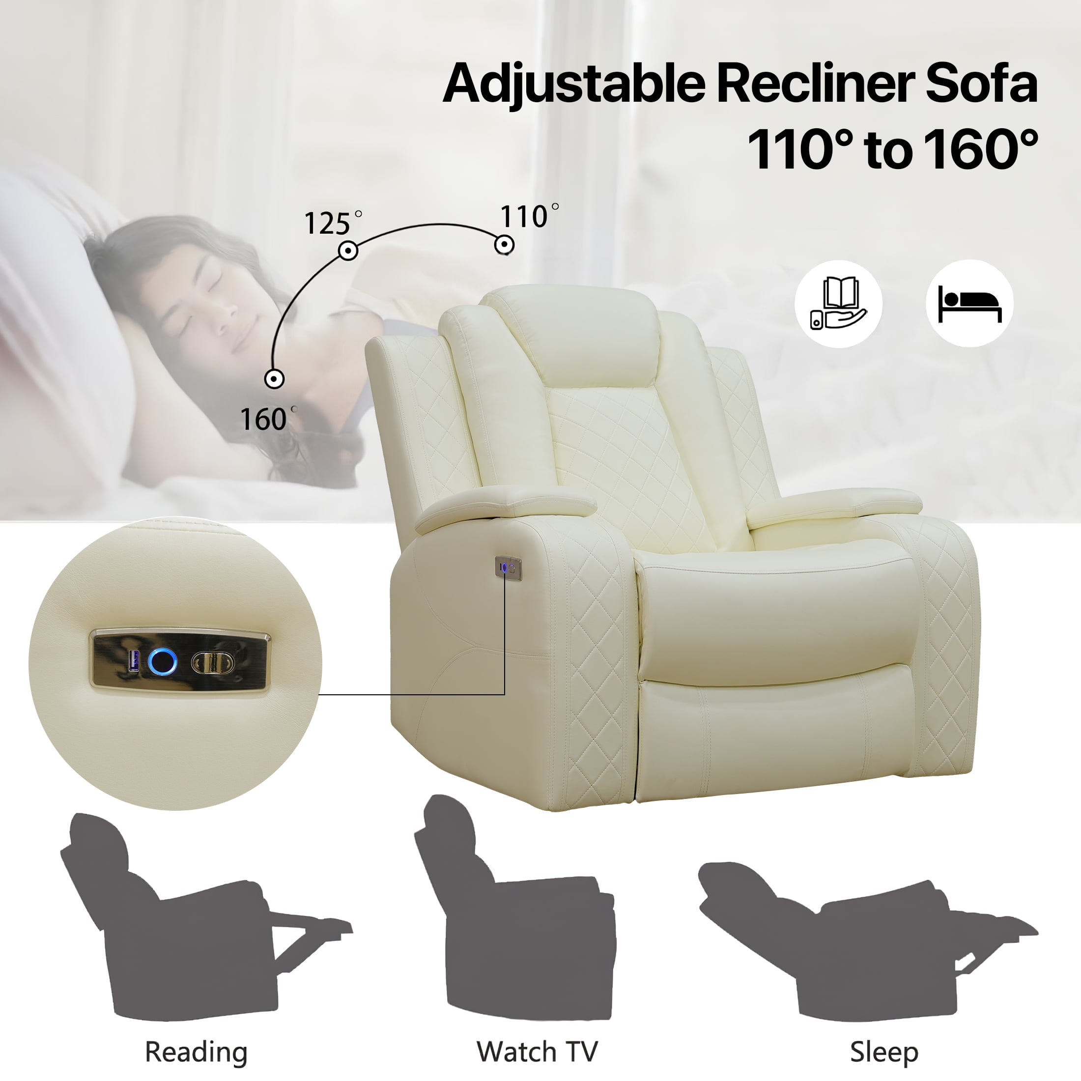 Aukfa Power Recliner Chair Sofa with Storage and USB for Living Room,Beige