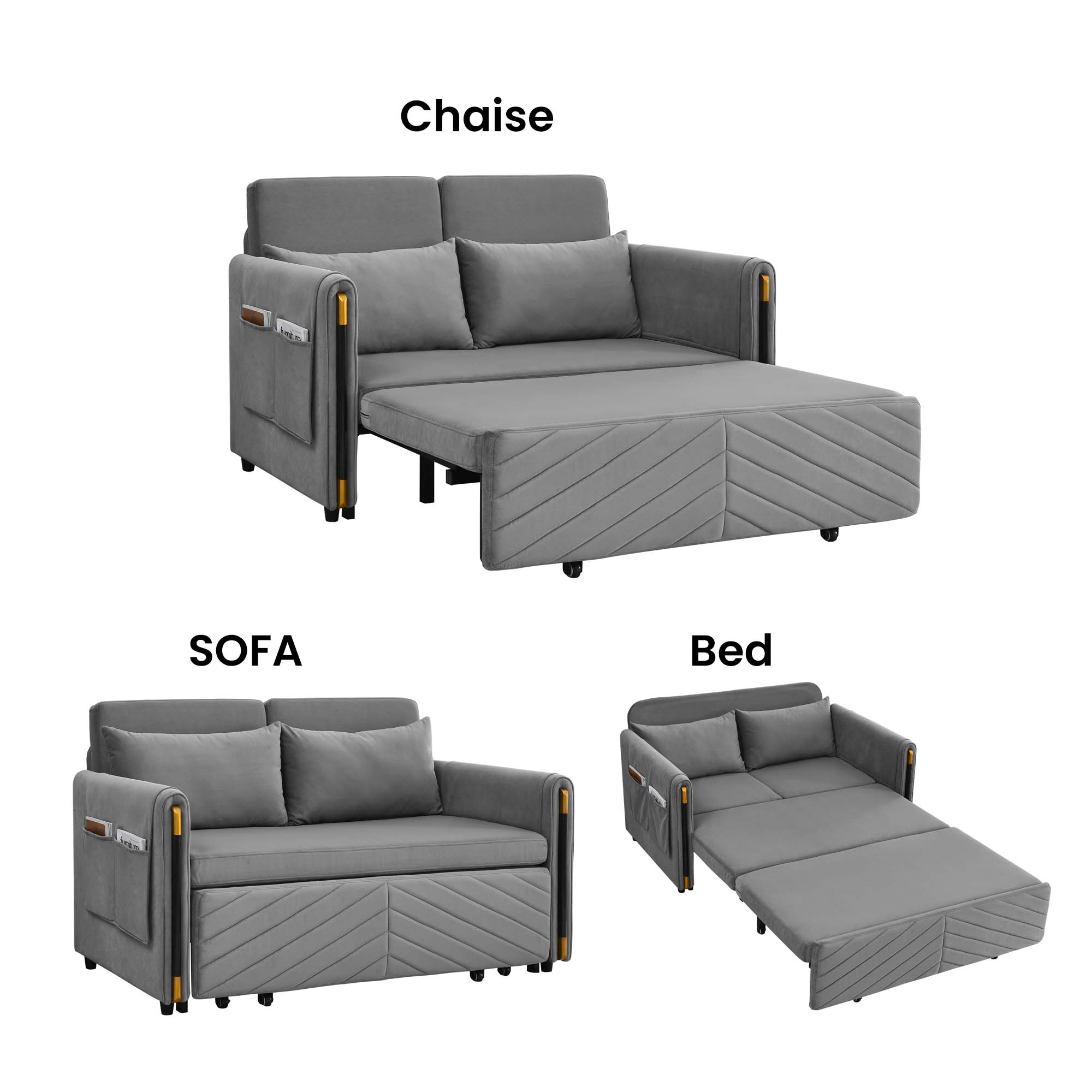 Aukfa Pull Out Sofa Bed, Modern Velvet Convertible Sleeper Sofa Futon Sofa for Home Office, Gray
