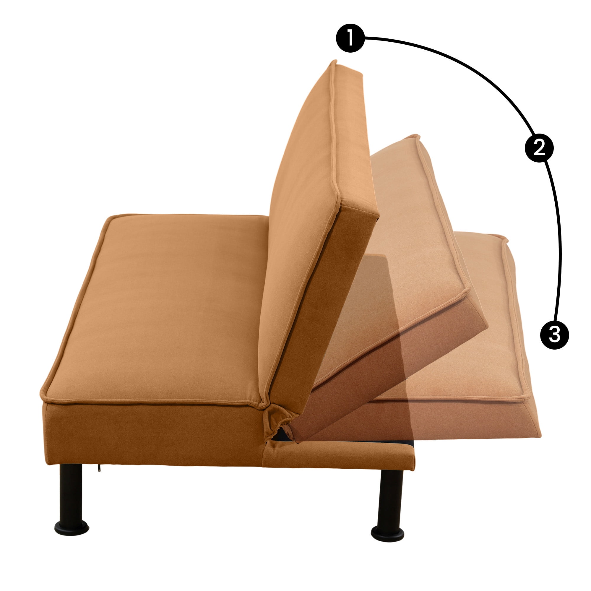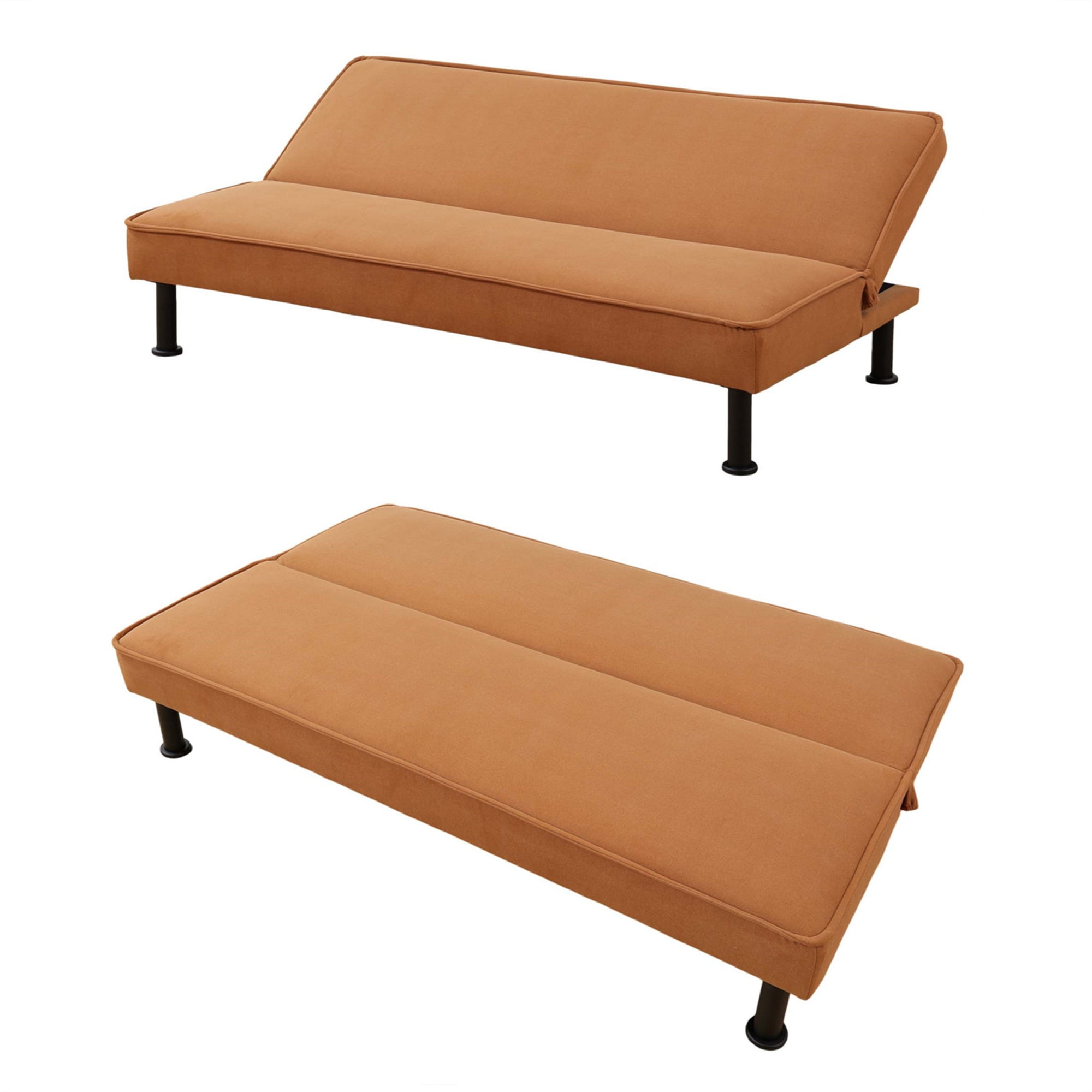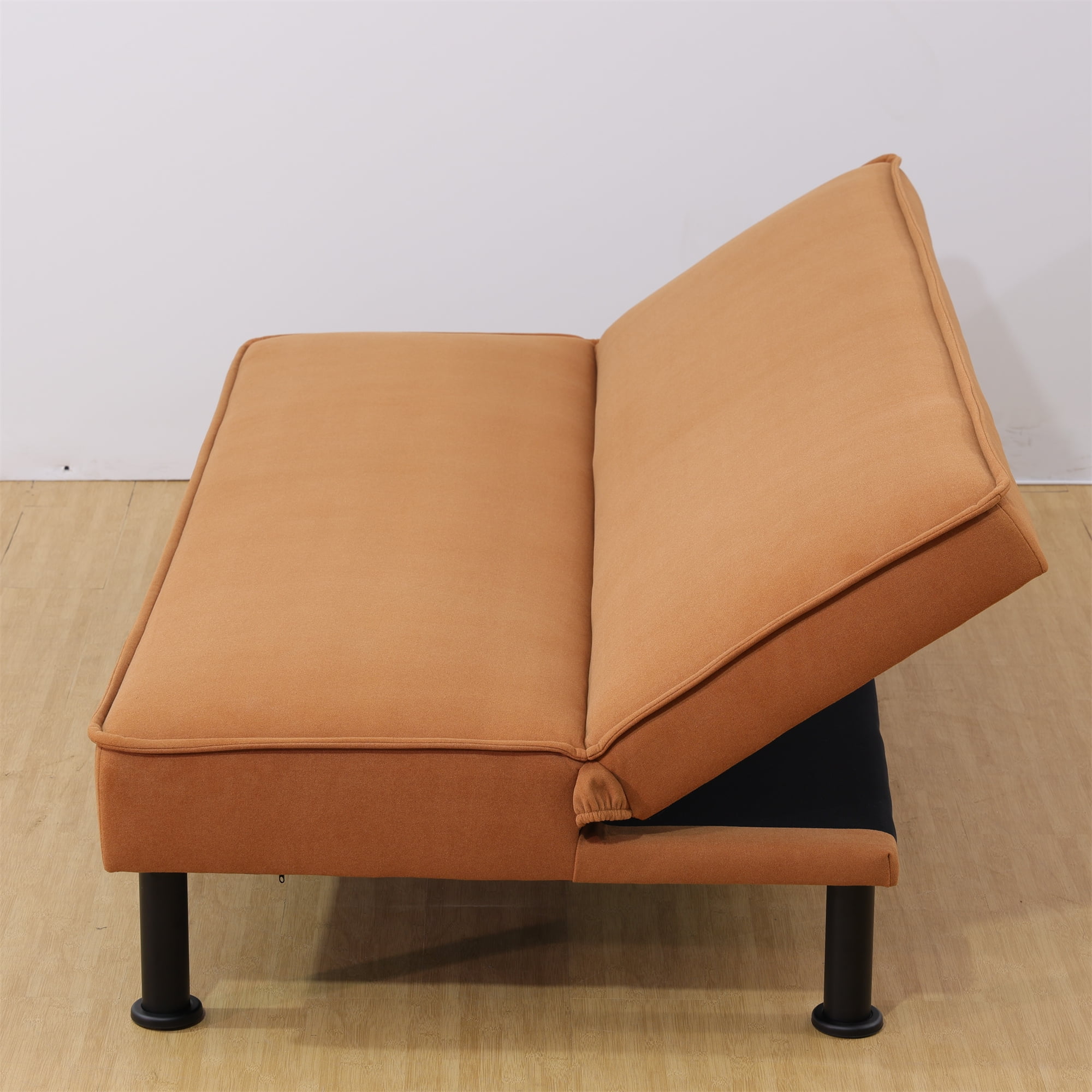 MODERN STYLE AND VERSATILITY – The Aukfa AK-FF01-047 futon sofa bed is designed with a fashionable appearance and modern style, Whether you’re a student living in a dorm room, a young professional living in a small apartment, or a homeowner looking for an extra bed for guests, our futon is the perfect solution. CONVERTIBLE SOFA BED – This multi-functional futon sofa is designed with a folding backrest, and has three adjustable positions, which can easily convert into a recliner, where you can lie down to enjoy a movie, or convert into a sleeper to take a nap or for your friend’s temporary overnight or a lounger to relax and read a book. 3-IN-1 DESIGN FUTON – The space saving futon sofa bed features a folding contraption to lock the back at 105 degrees for reading/TV or 140 degrees for lounging and lay down the back as a 64″ long by 37″ wide single bed. DURABLE MATERIALS – Elevated on 4 modern metal legs, This futon sofa bed is constructed of a manufactured wood frame, flannel fabric upholstery, foam fill, and metal zig-zag springs for robust structure and unmatched durability. EASY TO ASSEMBLE & LONG WARRANTY – Our futon comes with clear and concise instructions, making it easy to assemble and start using in no time. 12-hour professional service team will support you if there is any problem. SPECIFICATION: PRODUCT INFORMAITON Overall: 64″L x 33″W x 32″H. Open size – sleeper: 64″L x 37″W Back Cushion: 18.5’H Seat Width: 64” Seat Depth: 18.5” Seat High: 14” Leg High: 7” Minimum Door Width: 30” Product Weight: 57.5 lbs Carton Size: 64”L x 39” W x 6”H. 64.5 lbs Features Product Type: Futon Sofa Seating Capacity: 2 Frame Material: Manufactured Wood Weight Capacity: 600 lb Sleeper Size: Twin Upholstery Material: 100% Flannel Tufted: No Storage Included: No Toss Pillows Included: No Upholstery Color: Orange Fill Material: Foam Supplier Intended and Approved Use: Residential Use Leg Material: Metal Leg Color: Black Back Type: Cushion Back 3 Position Lock: Yes Cushion Construction: Foam Product Care: Wipe clean with a dry cloth Assembly Level of Assembly: Partial assembly Adult Assembly Required: Yes Suggested Number of People for Assembly/Install: 1 Additional Tools Required (Not Included): All Tools Included Warranty Product Warranty: Yes Full or Limited Warranty: Limited Warranty Length: One Year
