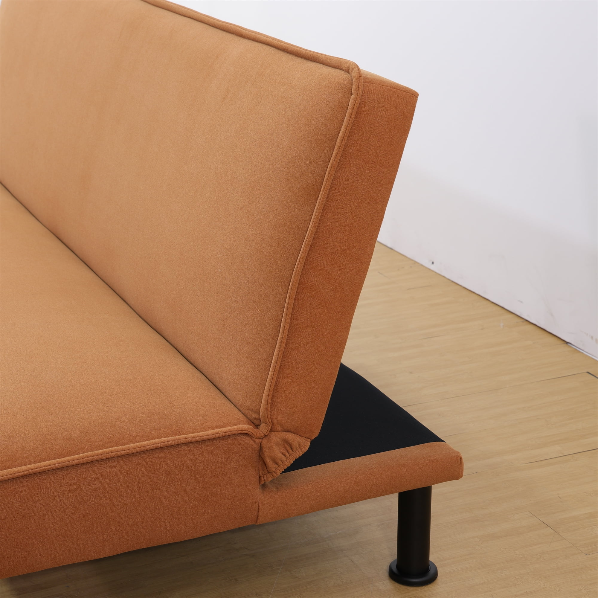 Aukfa Studio Futon Convertible Sofa Bed for Home Office, Upholstered Loveseat, Flannel, Orange