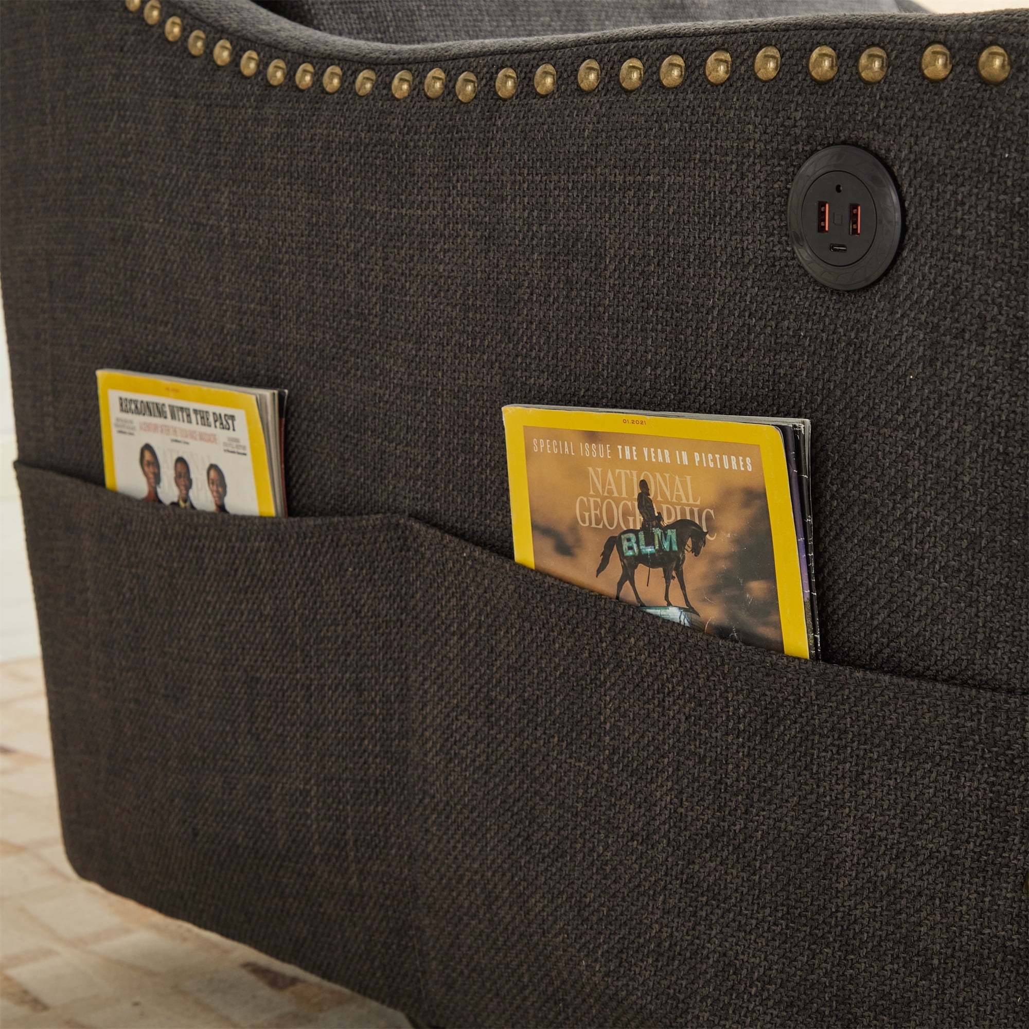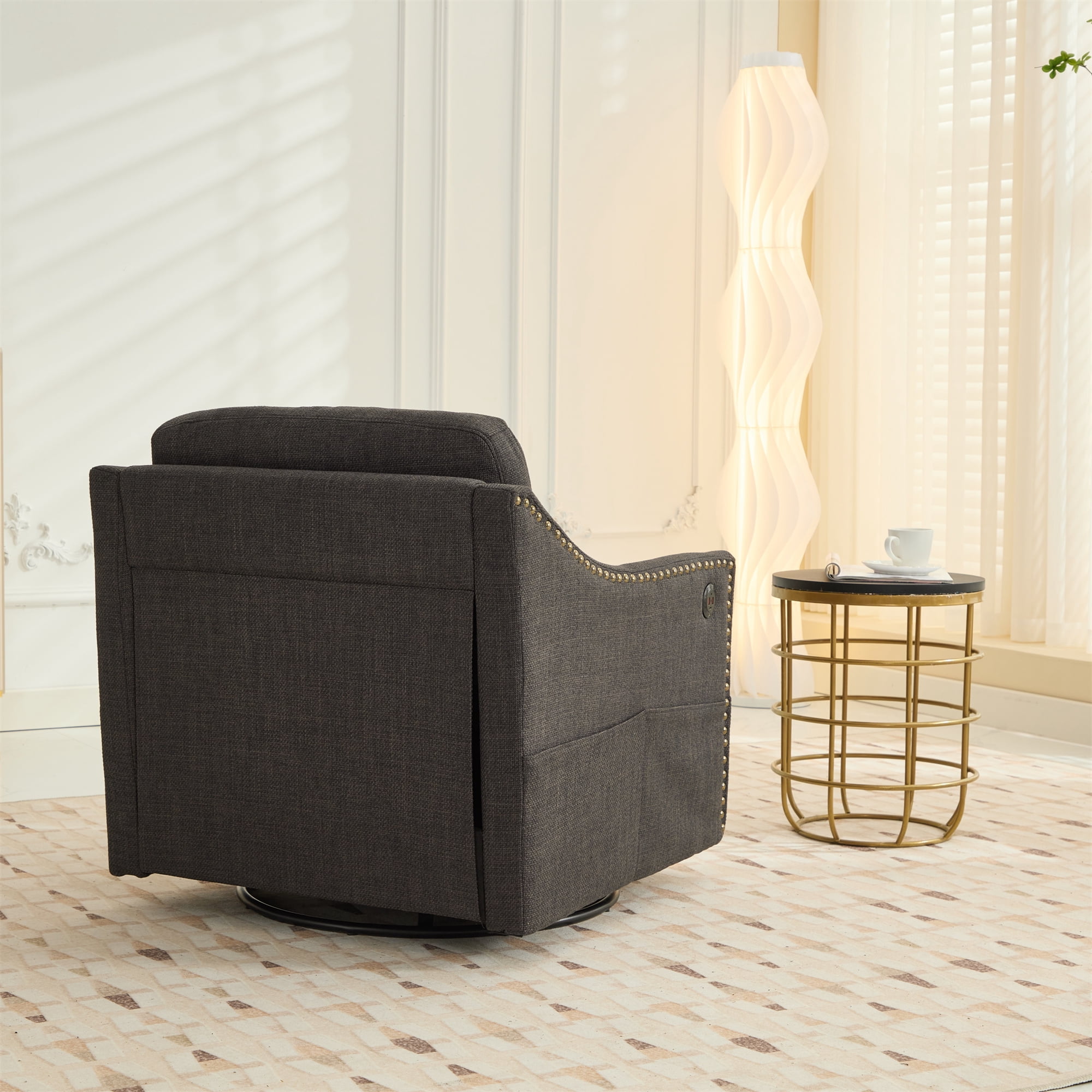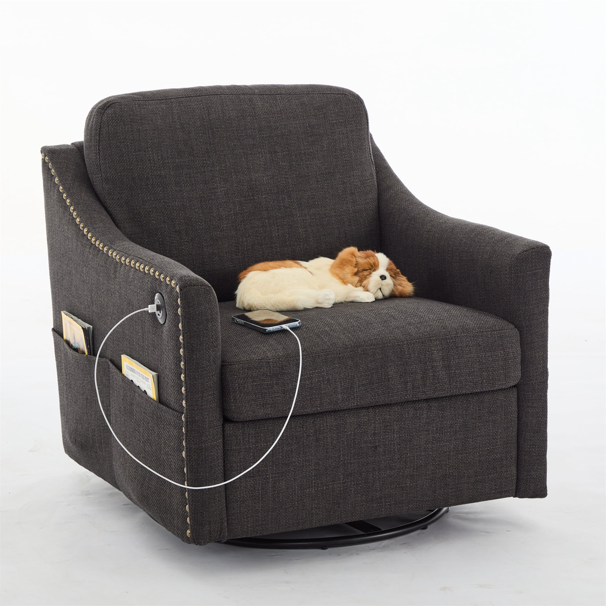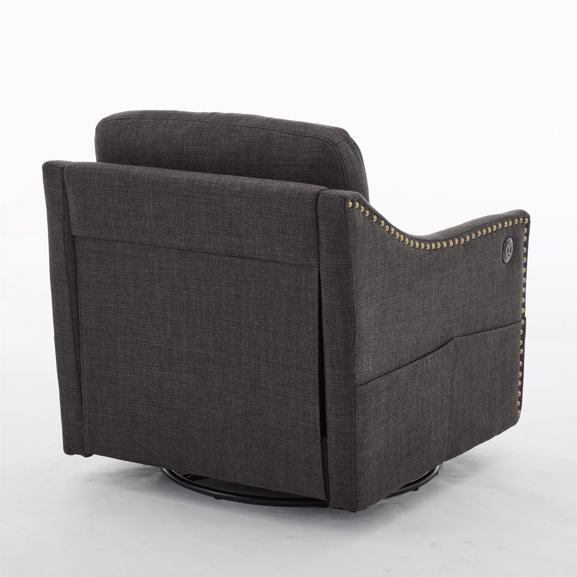 Aukfa Swivel Accent Chair w/ USB Charger for Living Room, Read Chair, Nail Head Trim, Linen, Gray