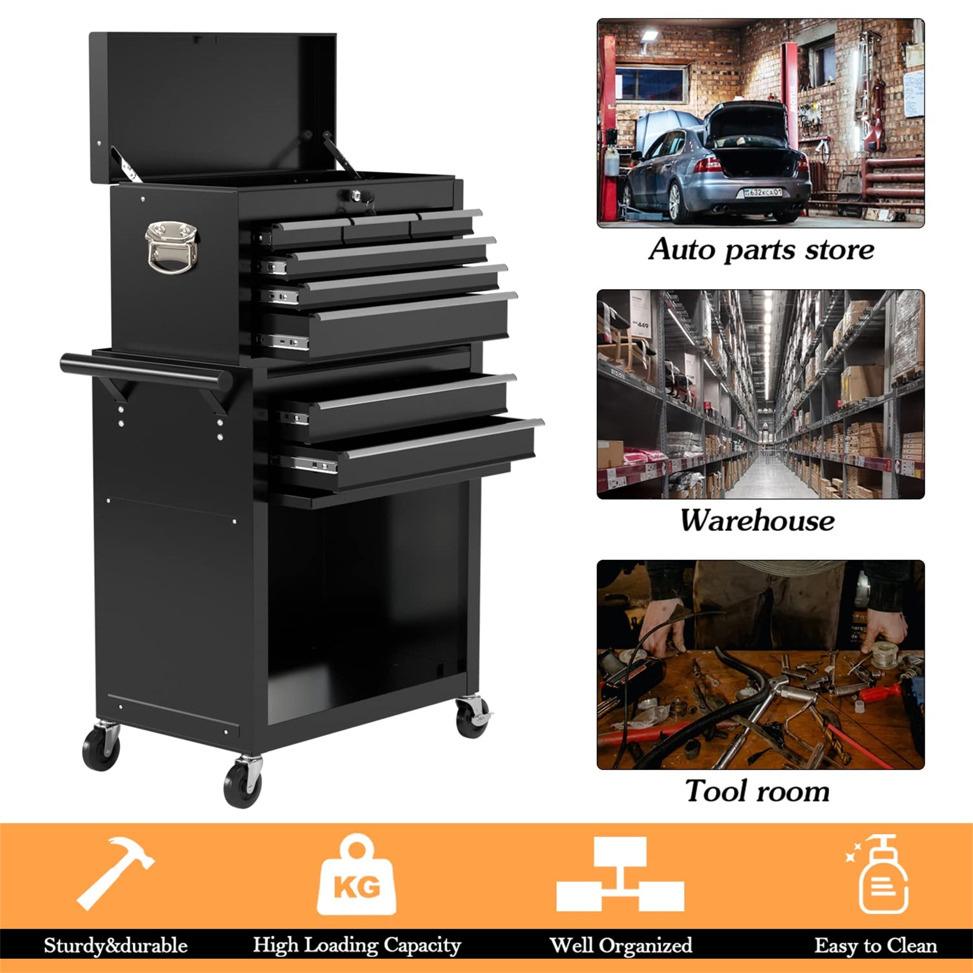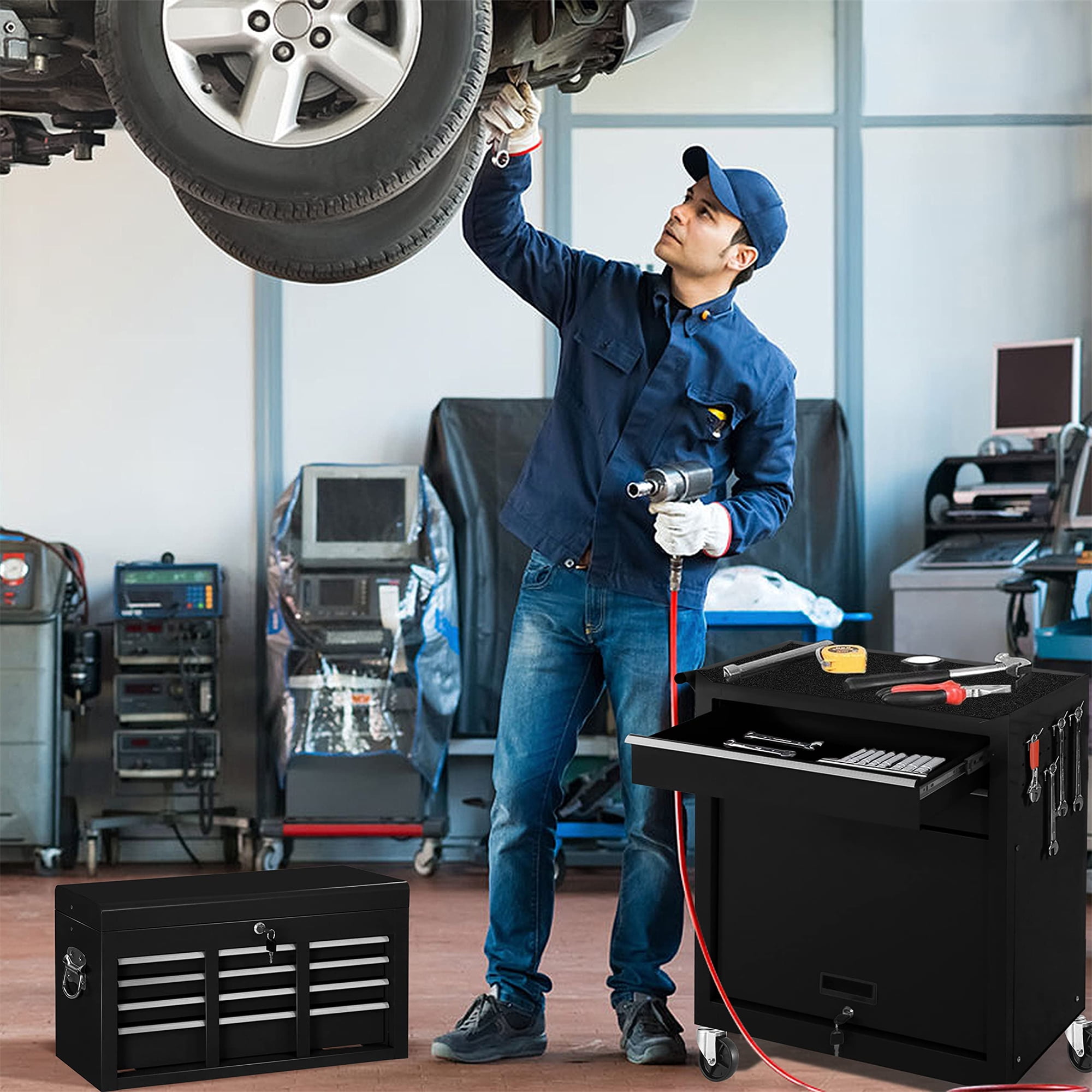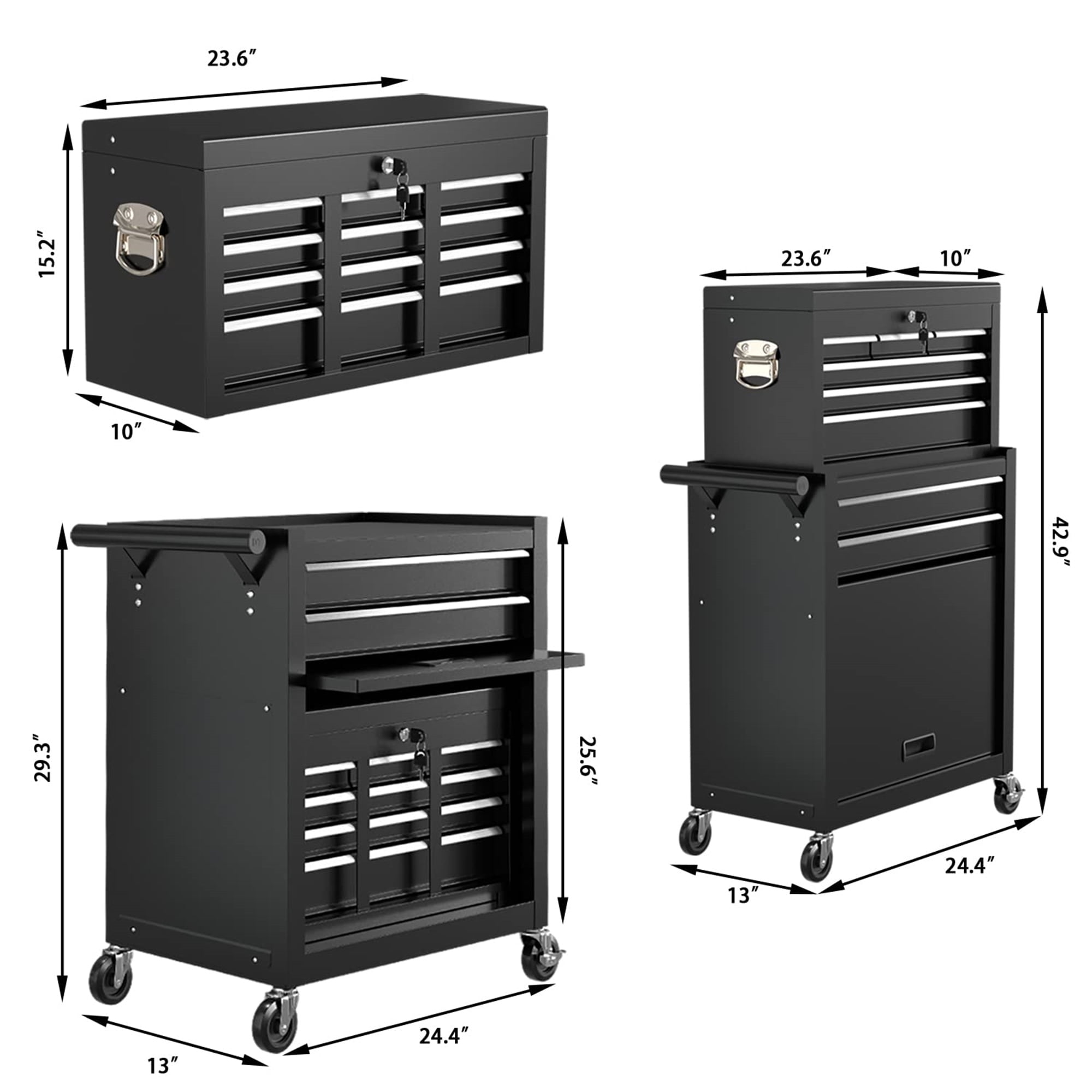 Aukfa Tool Box, 2 in 1 Steel Rolling Tool Chest & Cabinet On Wheels for Garage, 8-Drawer, Black