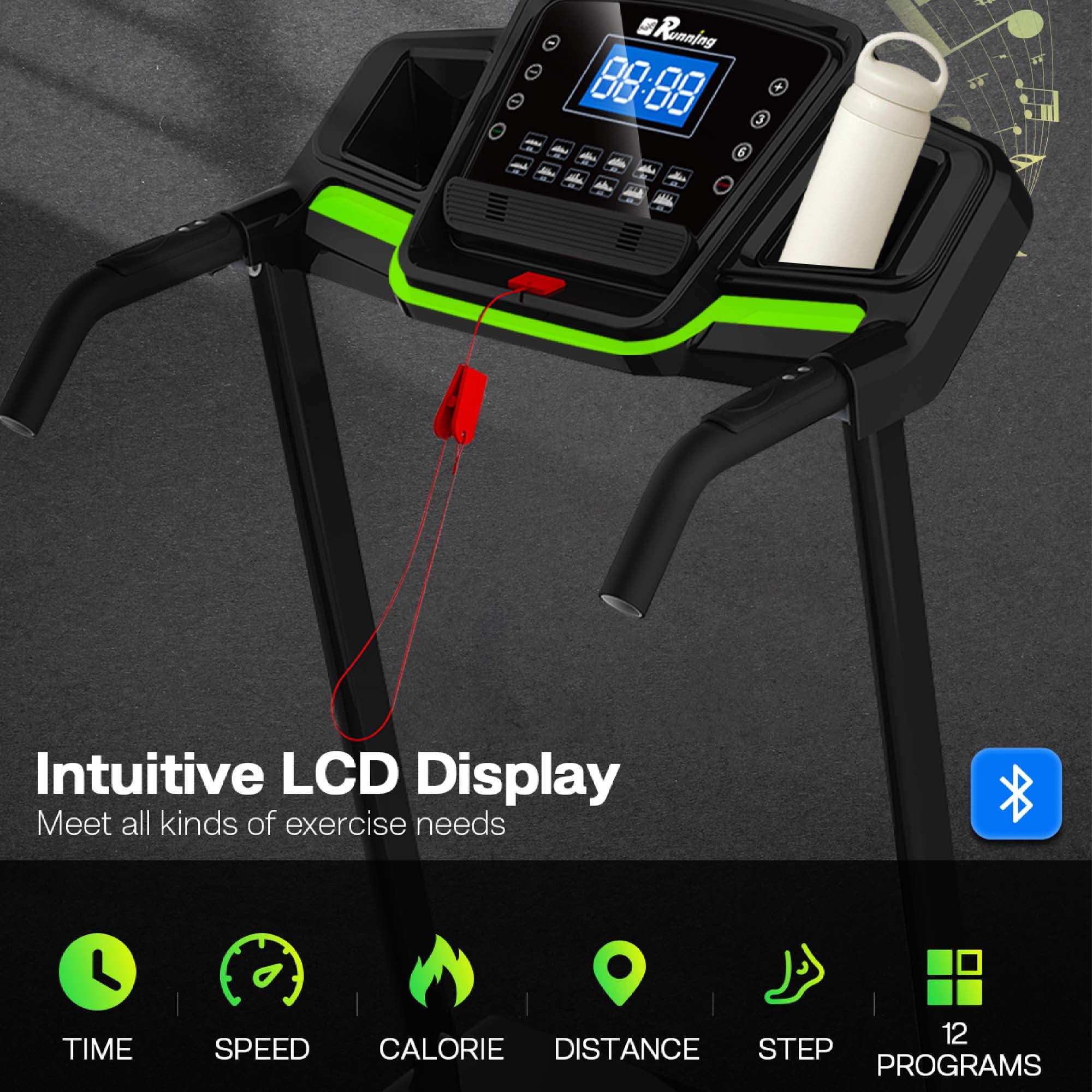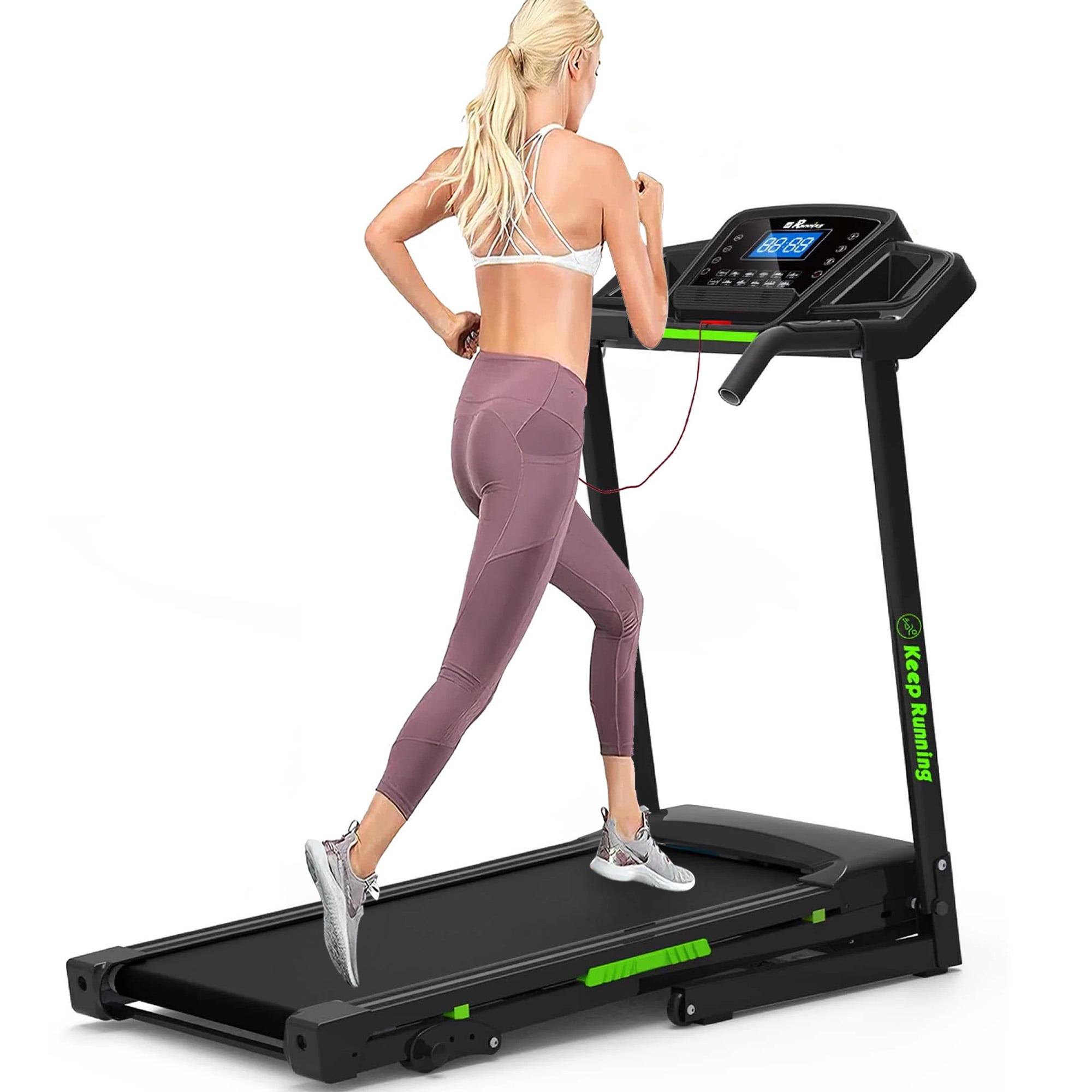 QUIET TREADMILL FOR HOME GYM WORKOUT – Use Aukfa AK-SF02-009 3.5HP folding treadmill, Enjoy a quiet workout with a powerful 3.5 HP motor perfect for walking, jogging and running in the comfort of your own home, with speed ranging between 0.5-8.5 mph. 330 LBS Max Weight Capacity. FOLDING TREADMILL WITH INCLINE – Take your fitness journey to new heights with our 3.5HP treadmill with incline. Embrace the power, convenience, and versatility this treadmill offers and achieve your fitness goals in the comfort of your own home. Invest in your health and wellness today with our top-of-the-line treadmill. 3 Manual incline options are available. FITNESS TRACKING LCD DISPLAY TREADMILL – Keeping track of your progress is essential for reaching your fitness goals. Our treadmill features a user-friendly LCD display that shows key workout metrics such as time, distance, speed, incline, and calories burned. Stay motivated and challenged by monitoring your achievements and pushing yourself to new limits. FOLDING TREADMILL WITH QUALITY-WIDE BELT DECK – We understand the importance of comfort during exercise, which is why our treadmill is equipped with a 16.5″ spacious running surface. With ample room to stride comfortably, you can maintain a natural gait and reduce the risk of injury. The cushioned deck absorbs impact, providing joint-friendly support, and reducing stress on your knees and joints. BLUETOOTH & ENJOY – Open Bluetooth, match the cardio machine, then enjoy music. The built-in speaker brings more fun to your fitness experience. Doing exercise at home is no longer a boring thing when running on this machine. POWERFUL VACUUM MOTOR AND SAFETY EMERGENCY STOP KEY – Premium vacuum motor reduces noise while you run indoors while the safeguard emergency stop key keeps you in control at all times, stopping the treadmill when pulled for your safety. SPACE SAVING – Free up precious floor space by folding your treadmill up and out of the way when it’s not in use with the easy folding feature and easily roll it using the built-in transport wheels. Fitted base rolling wheels on the treadmill underside provide easy and simple transport that protects your floors. EASY ASSEMBLY RUNNING MACHINE – The machine comes fully assembled, simply unfold it and tighten the screws – each treadmill comes with all required tools and instructions. SPECIFICATION: PRODUCT INFORMAITON Assembled Size: 50” L x 26.4” W x 46.5” H Folded Size: 46.2” H x 28.3” W Overall Product Weight: 79 lb Max. User Weight: 330 lb (Actual) Motor power: 3.5 HP Speed: 0.5-8.5 MPH Training Programs: 12 Running Area/ Tread Belt: 41.3” L x 16.5” W Power Supply: 110 V Package Dimension: 53.34″L x 29.13″W x 8.66″H; 91.5 lb Features Product Type: Motorized Treadmill Material Frame: Steel Panel; Plastic Bed Size: Twin Size Color: Black & Red Foldable: Yes Transportation Rollers: Yes Manual Incline: 3 Manual Incline Bookshelf: Yes Display: Time, Calorie, Speed, Distance and Step Package List: Treadmill, Belt Lubricant, Hardware Kit, User Manual Supplier Intended and Approved Use: Residential Use Assembly Level of Assembly: Partial assembly Adult Assembly Required: Yes Suggested Number of People for Assembly/Install: 1 Additional Tools Required (Not Included): All Tools Included Warranty Product Warranty: Yes Full or Limited Warranty: Limited Warranty Length: One Year