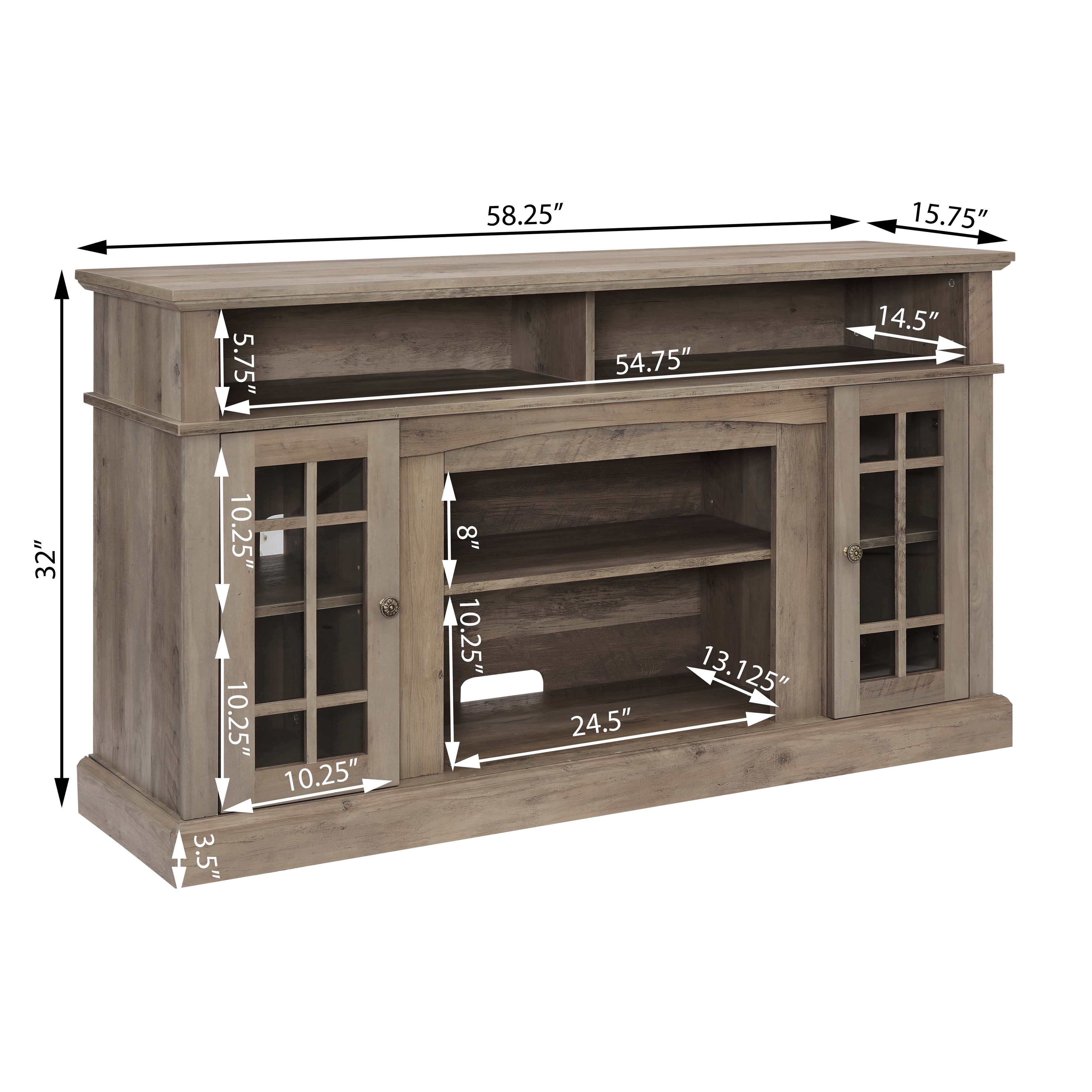 INTIMATE DESIGN – Elevate your TV viewing with our spacious AK-FT01-100TV stand, perfectly designed to accommodate TVs up to 60 inches. Enjoy a clutter-free setup by neatly organizing your consoles, DVD players, and other entertainment devices. SIMPLE & RUSTIC FARMHOUSE STYLE – The material of the TV stand is carefully selected panels. The wood grain pattern has been specially designed to exude a retro rural atmosphere.It can satisfy your longing for nature and pursuit of warmth, and the material surface is corrosion-resistant, durable, and easy to clean. BUILT TO LAST -Crafted from high-quality metal and wood components, our TV stand ensures long-lasting durability and satisfaction. The blend of sturdy materials guarantees a reliable entertainment center that stands the test of time. SAY GOODBYE TO CABLE CLUTTER – Tired of tangled cables? Our TV stand comes to the rescue with 5 cable management cutouts, making cable organization a breeze. With large pass-throughs on the back and open shelf, you’ll have all the space you need to keep your setup clean and organized. VERSATILE STORAGE SOLUTION -Looking for more than just a TV stand? Our versatile piece seamlessly transitions to fit your needs. Whether you use it as a sideboard, console table, or TV stand, its classic design will complement any space you choose. PRODUCT INFORMATION: Overall: 60″W x 15.75″D x 325″H Overall Product Weight: 98.94LBS Features: Product Type: FarmhouseTV Stand; Sideboard,Console Table Color: Gray Wash/Espresso/Stone Gray/Brown Number of Cabinets: 2 Shelving: Yes Number of Interior Shelves: 8 Cable Management: Yes Furniture Design:Enclosed storage Material: Metal+MDF Built-in Lighting: No Supplier Intended and Approved Use: Residential Use Assembly: Assembly Required: Yes Level of Assembly: Full Assembly Needed Installation Required: Yes Warranty: Commercial Warranty: Yes Product Warranty: Yes Warranty Length: 12 Months Warranty Full or Limited Warranty: Full