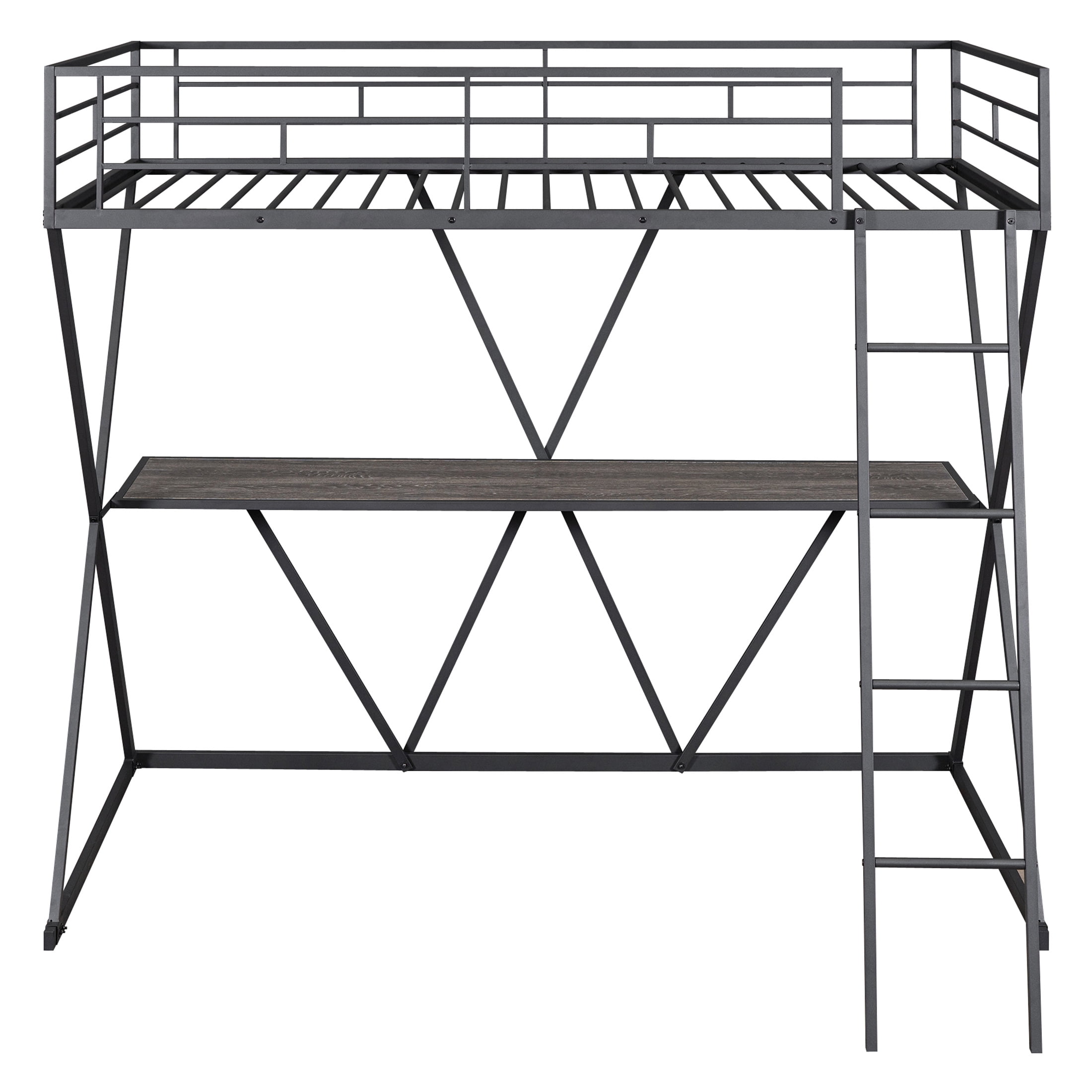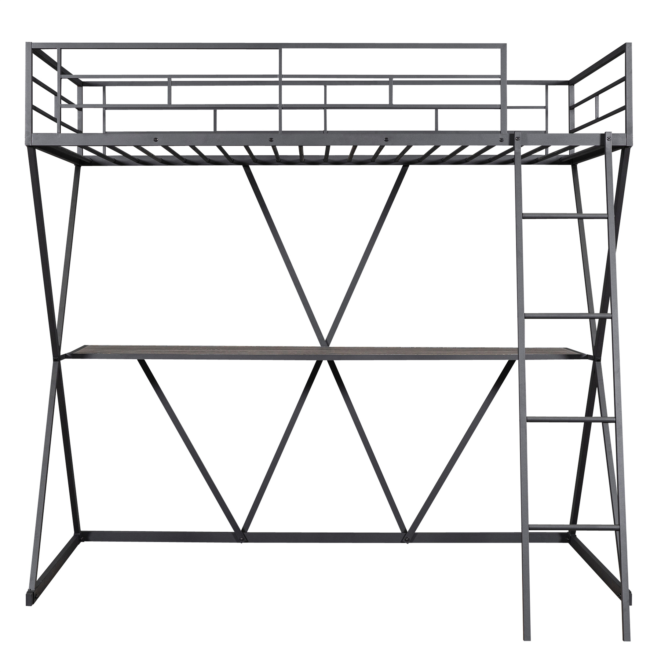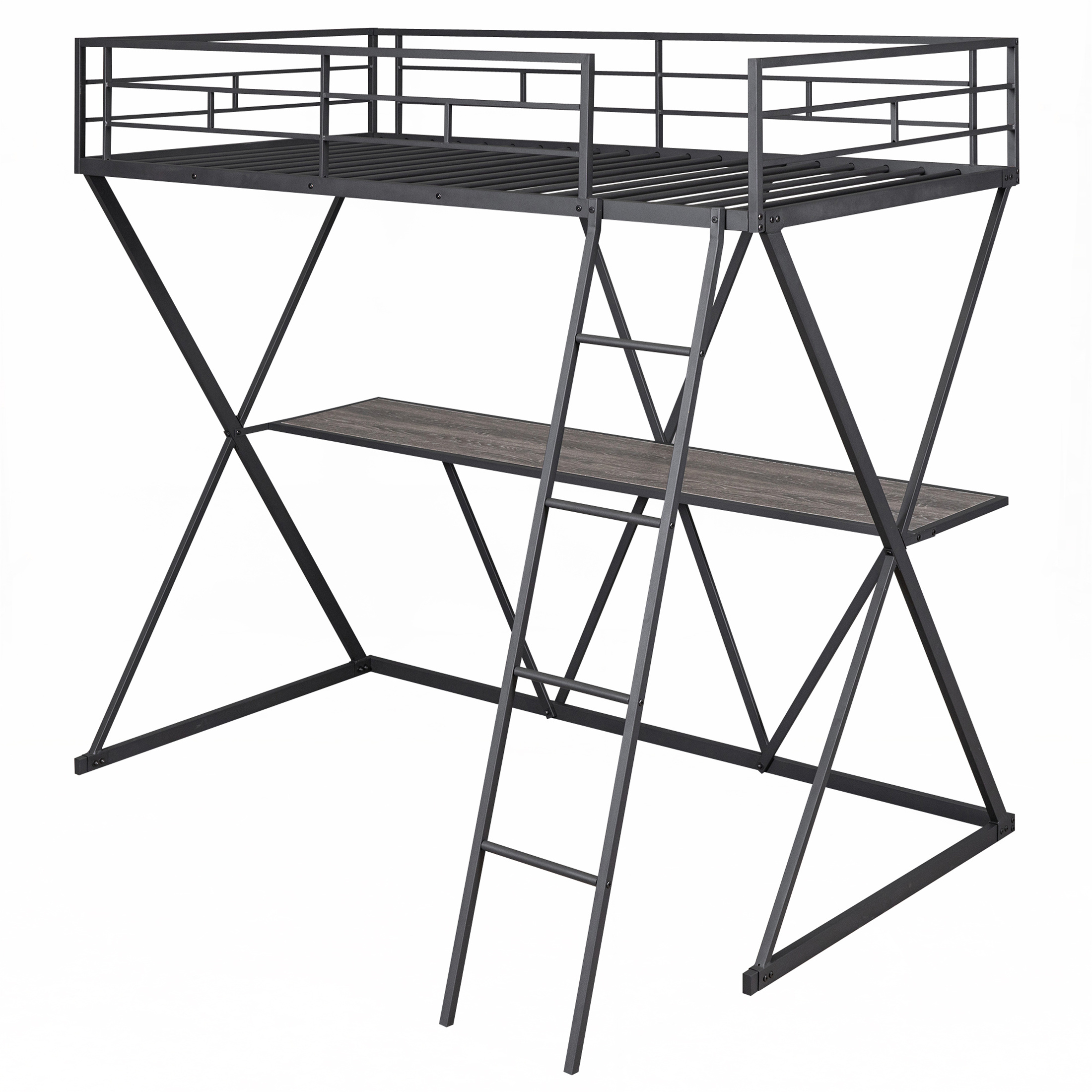 Aukfa Twin Loft Bed with Desk for Kids Teens, Heavy Duty x-Shaped Metal Bed Frame, Black