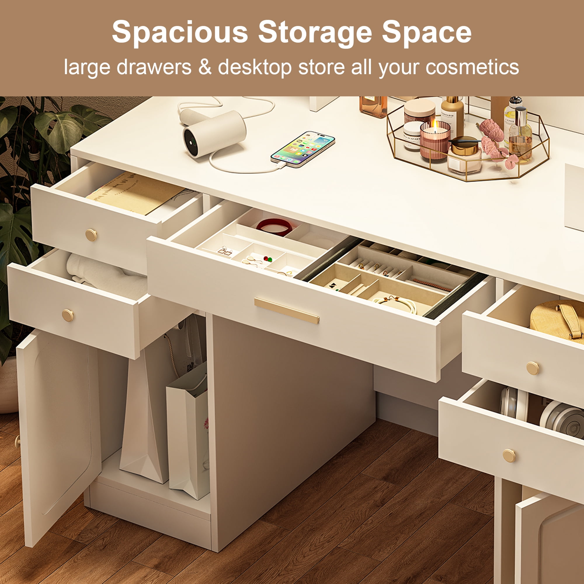 Aukfa Vanity Table Set Makeup Vanity Dressing Table with Mirror, 6 Drawers & Power Outlet, White