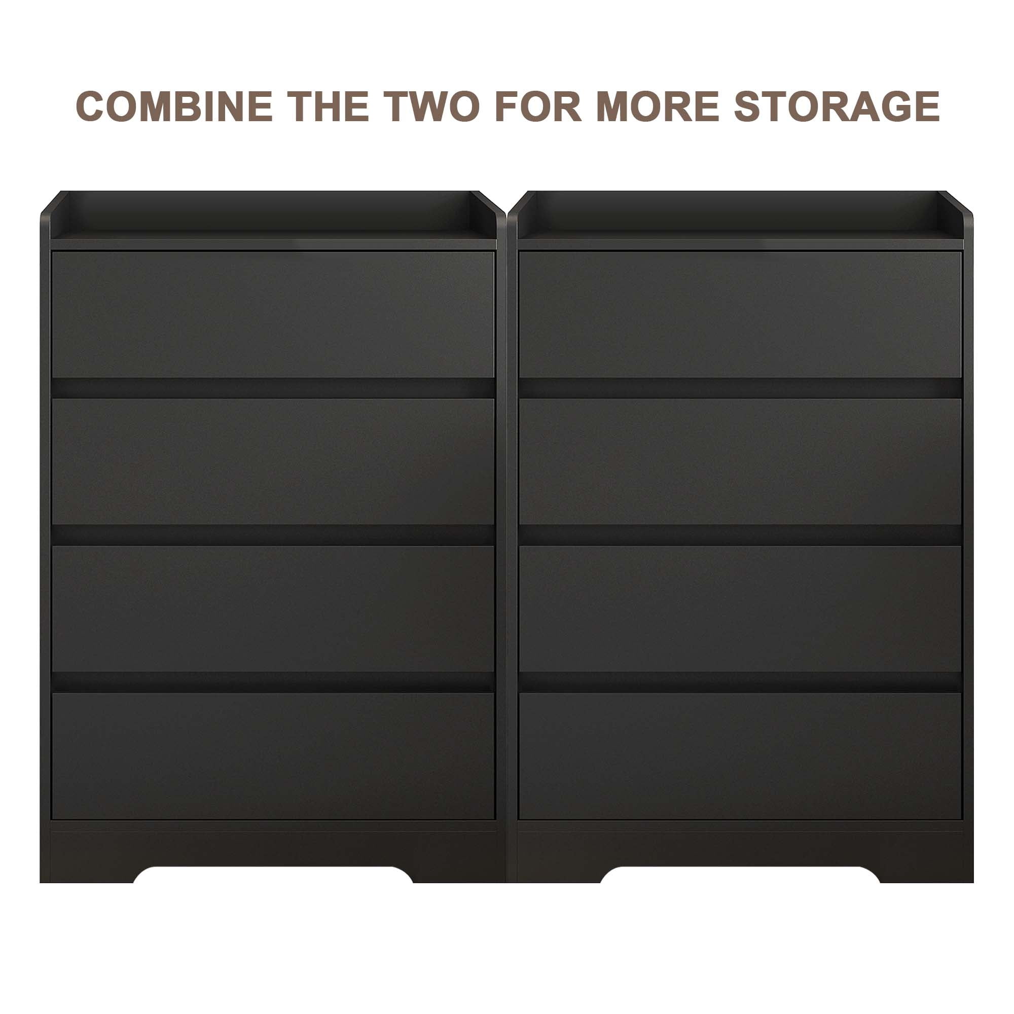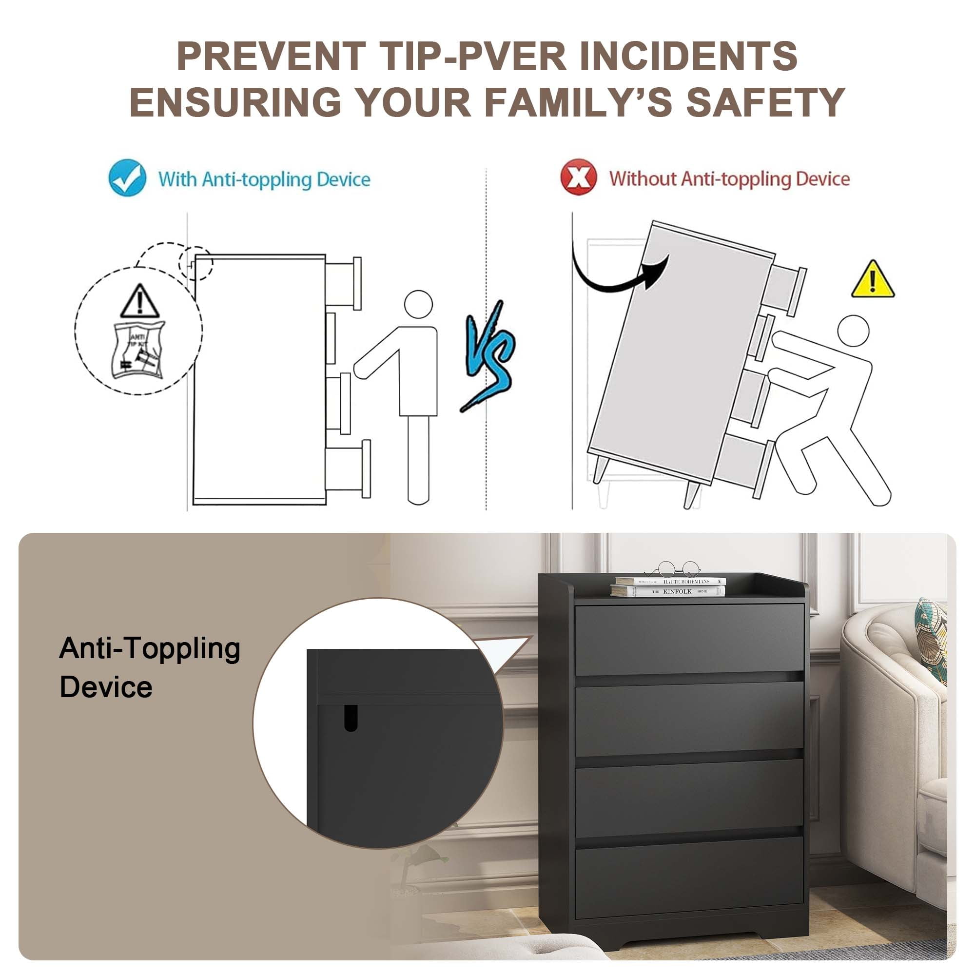 Aukfa Wood 4 Drawer Dresser,Chest of Drawer with Anti-fall Device, Black