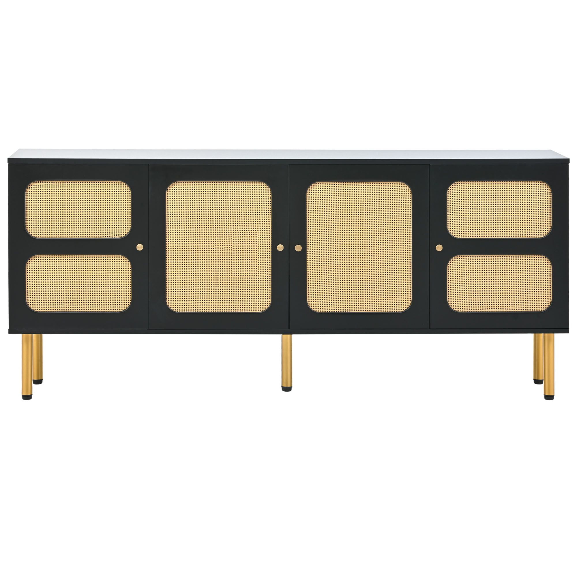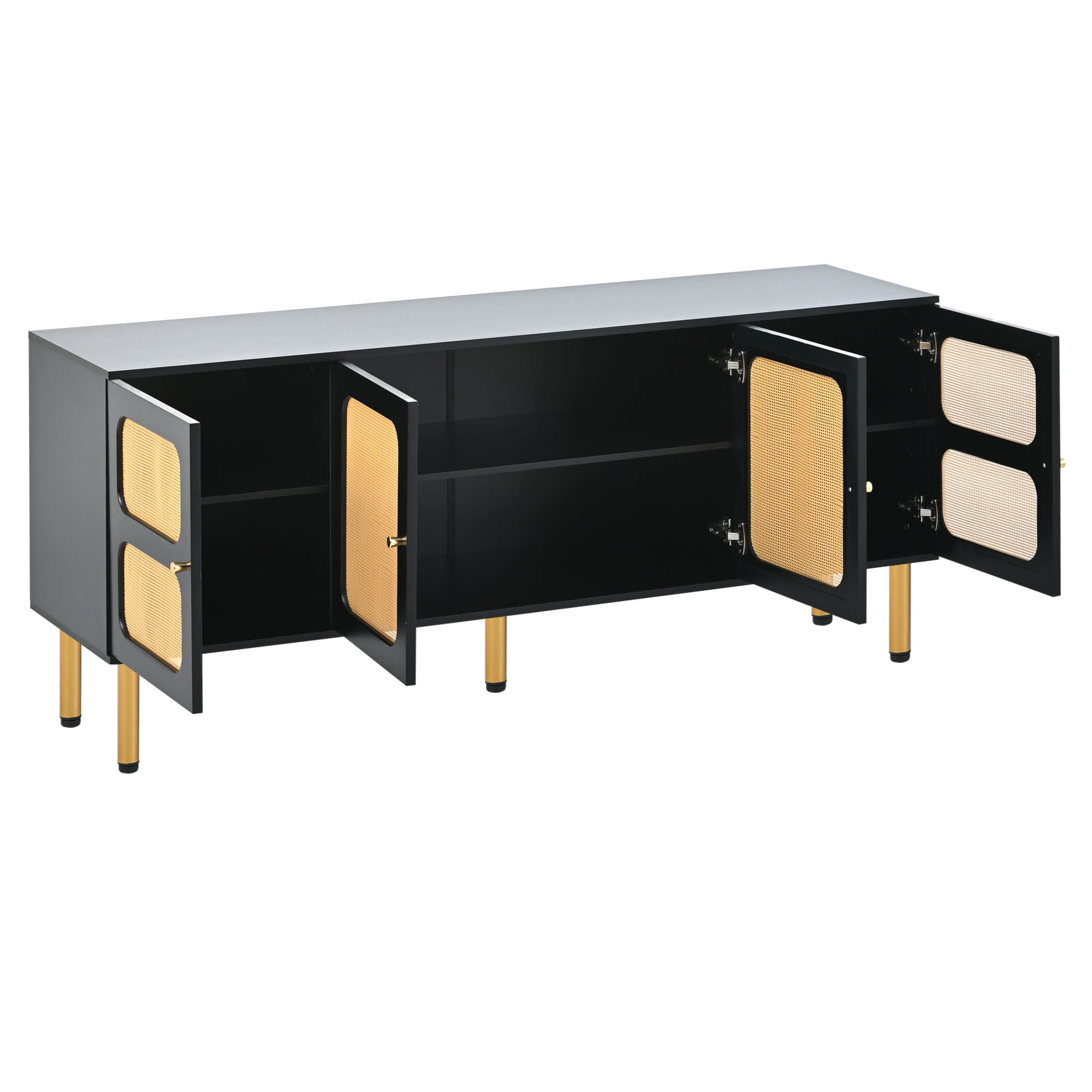 Aukfa Wooden TV Stand for TVs up to 70″ – TV Cabinet with 4 Textured Rattan Doors – Black