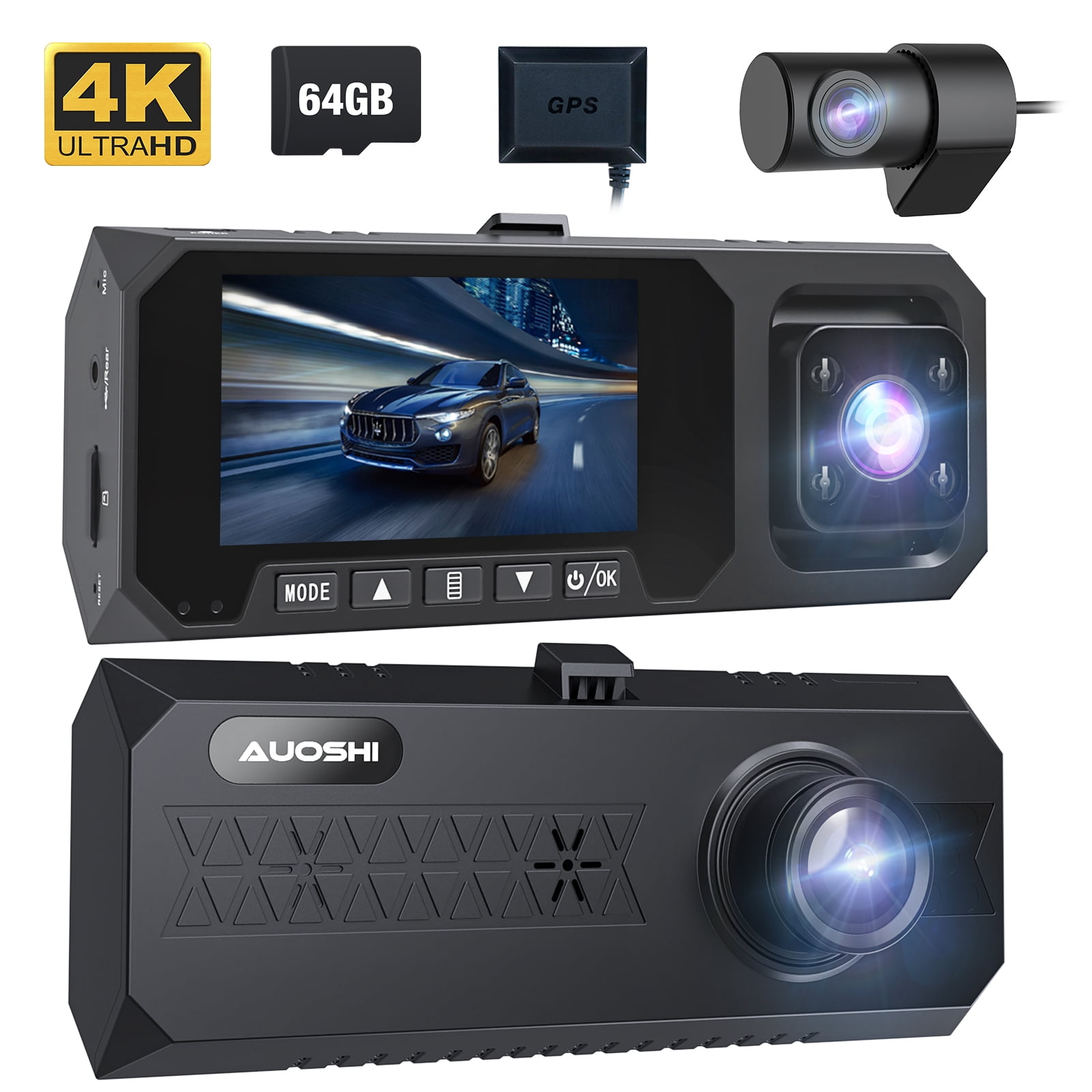 AUOSHI 3 Channel Dash Cam Front and Rear, 4K/2.5K + 1080P Premium Car Camera for Cars with Wi-Fi GPS, Night Vision, 3.16″ IPS Touchscreen, 24H Parking Mode, WDR, Type-C, 64GB SD Card Included
