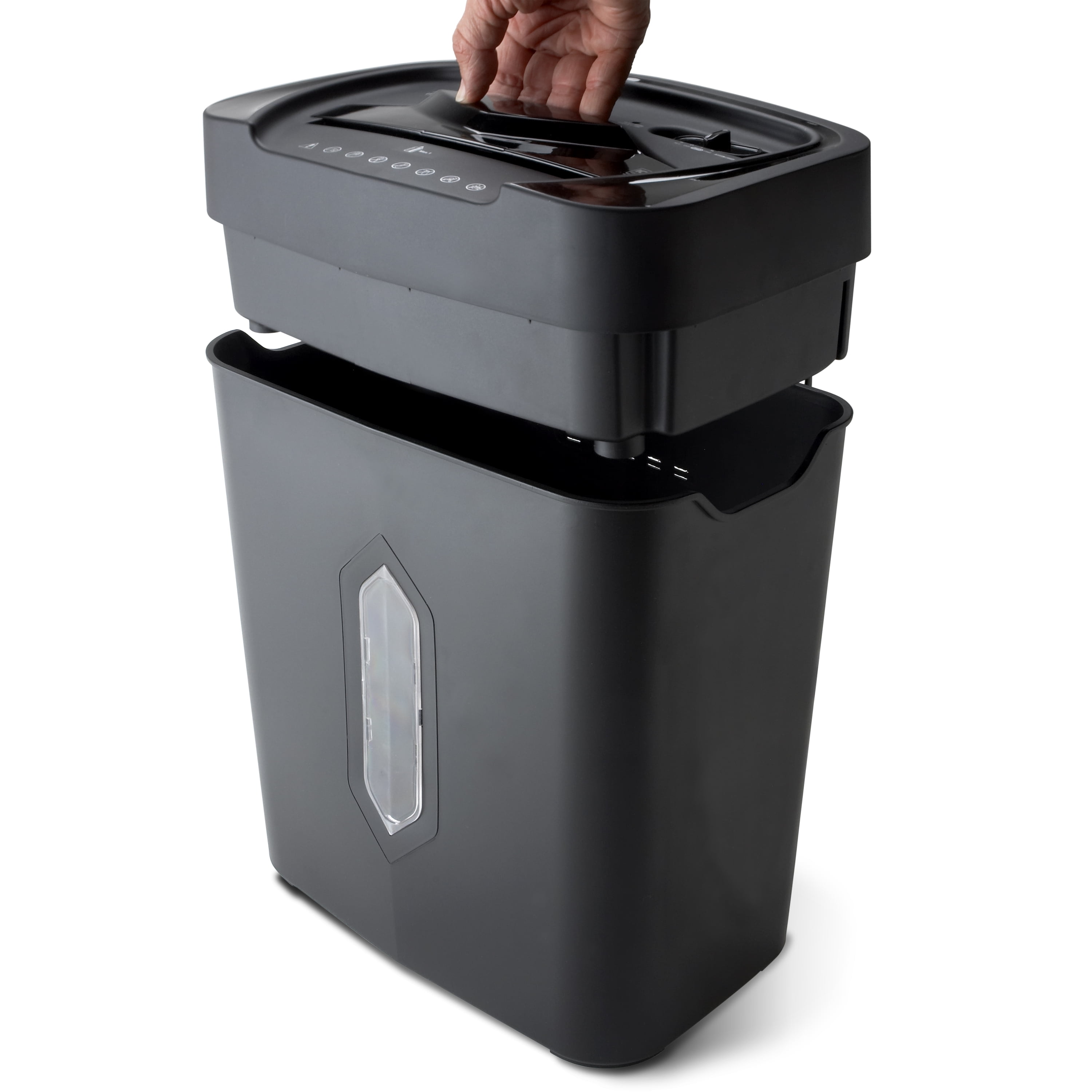 The Aurora AU1010MA 10-sheet micro cut paper/ credit card shredder with basket is the perfect home and small office device to help keep you safe from identity theft. The AU1010MA accepts up to 10 sheets of paper at a time and shreds them into 5/32 x 15/32 inches (4 x 12mm) pieces. In addition to paper, the AU1010MA shreds credit cards, keeping vital information from falling into the wrong hands. The throat of the shredder is 8.7 inches wide and allows continuous shredding for 5 minutes