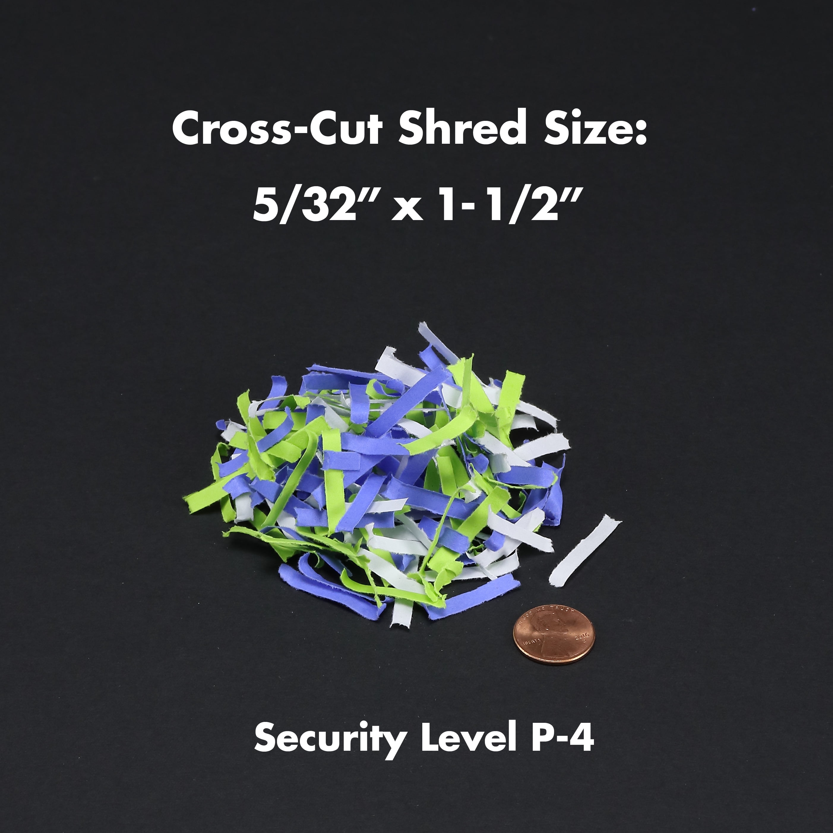 Shreds paper, CDs, DVDs, and credit cards into small pieces (5/32 by 1-1/2 inches), security level P-4 Nonstop 40-minute continuous run time Anti-jam Auto-reverse to clear paper jams; ultra-quiet operation