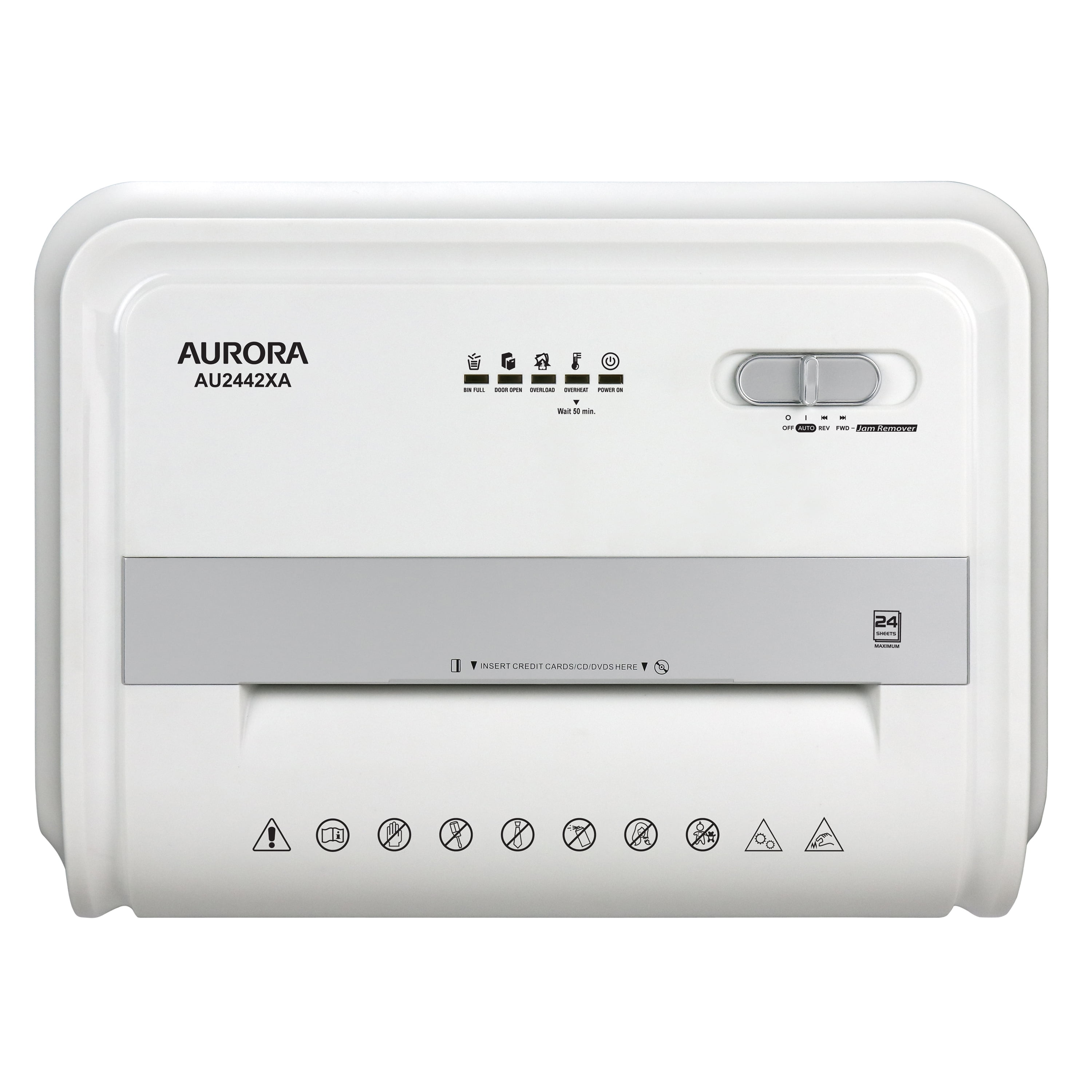 Aurora AU2442XA Heavy Duty Anti-Jam 24-Sheet Crosscut Shredder/40 Min Run Time/ 7-Gallon Pullout Basket, White/Grey
