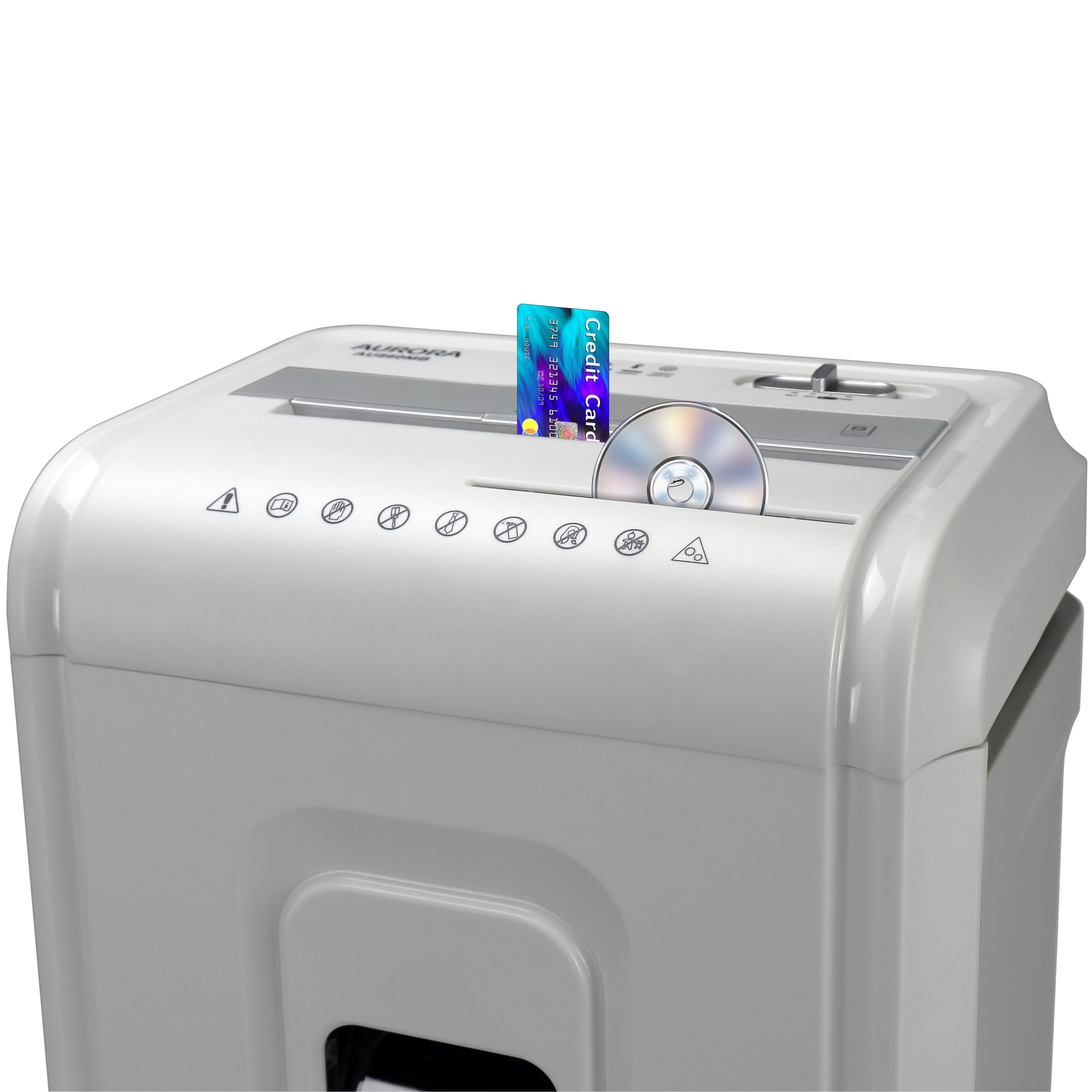 The Aurora AU860MB 8-sheet micro cut paper/ CD/DVD/credit card shredder with pullout basket is the perfect home and small office device to help keep you safe from identity theft. The AU860MB accepts up to eight sheets of paper at a time and shreds them into 5/32 x 15/32 inches pieces. In addition to paper, the AU860MB shreds credit cards and CDs/DVDs, keeping vital information from falling into the wrong hands. The throat of the shredder is 8.7 inches wide and allows continuous shredding for 6 minutes.