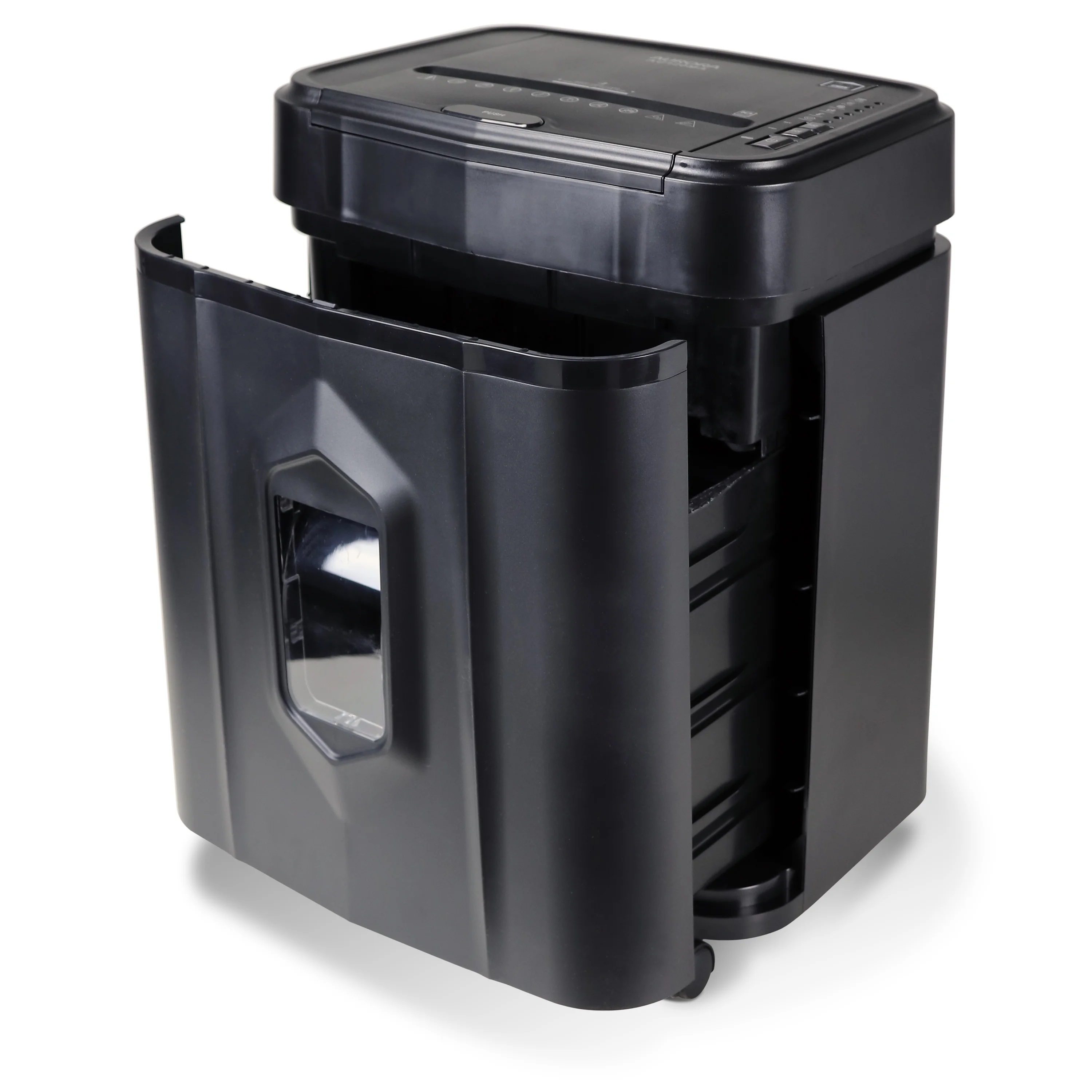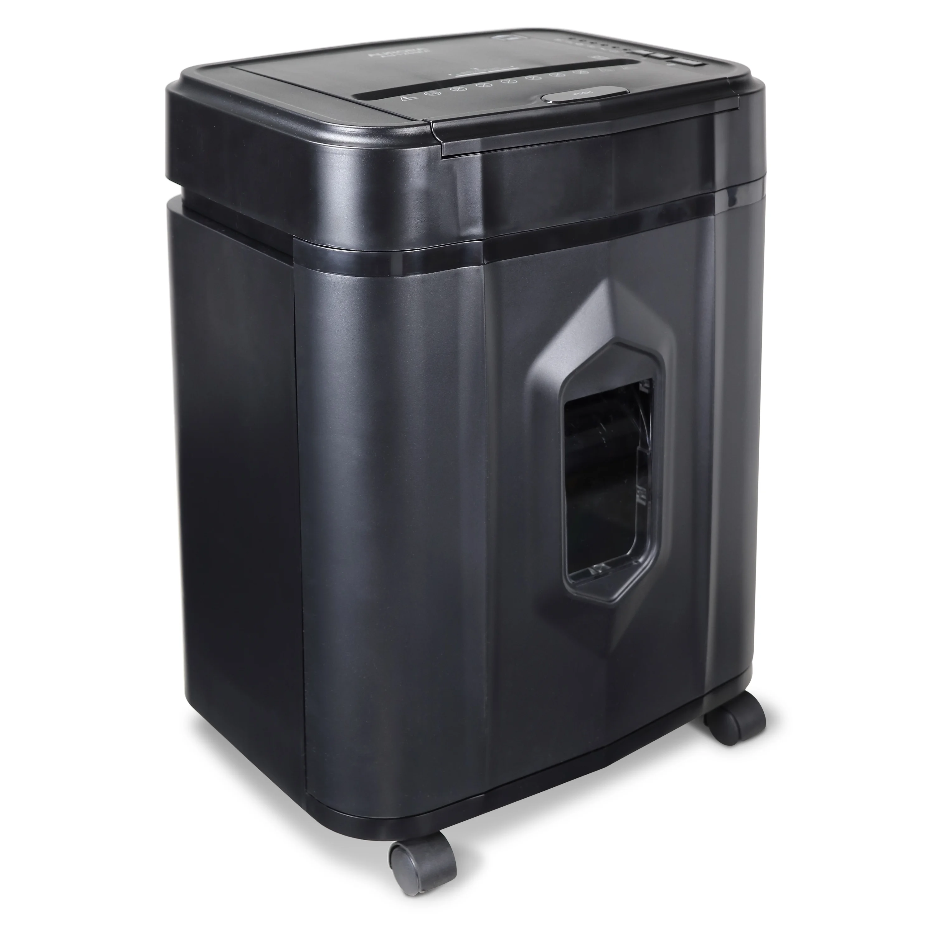 High security micro-cut shreds paper and credit cards into small pieces (5/32 by 15/32 inches), security level P-4 Nonstop 30-minute continuous run time Ultra-quiet operation 5-gallon pullout bin with LED indicator lights Standby/Overheat/Bin-full/Overload/Feed Error/Door open status