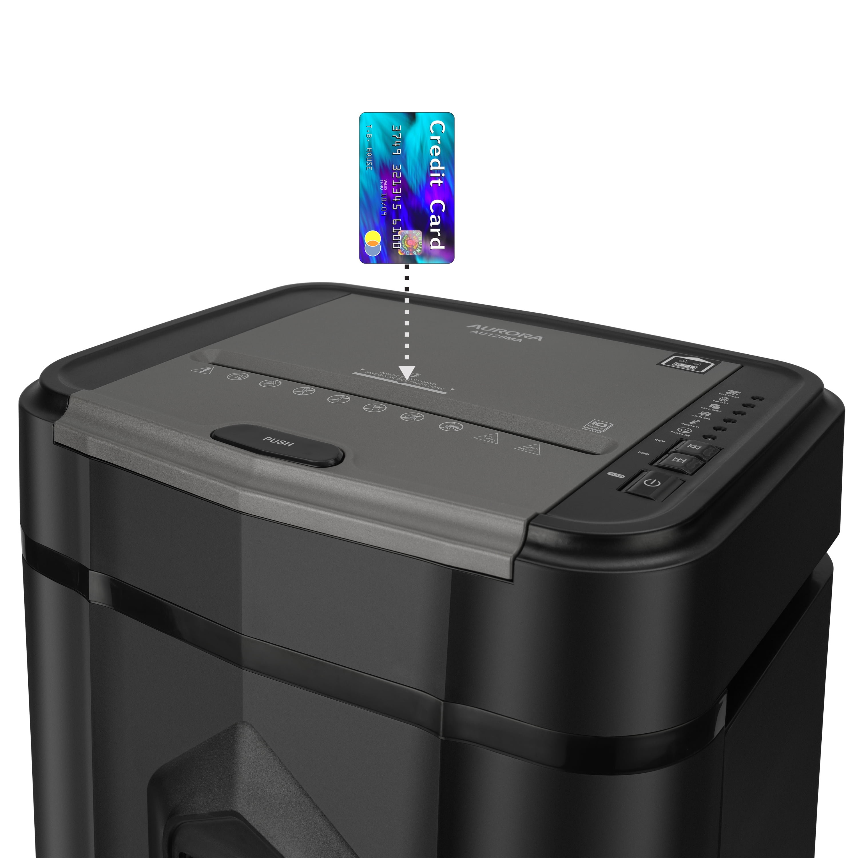 Aurora Professional Grade 120-Sheet Auto-Feed High-Security Micro-Cut Paper Shredder with 5-gallon pullout basket is the perfect home office and business device to keep you safe from identity theft. The AU125MA shreds documents into small pieces (5/64 by 15/32 inches), security level P-5.