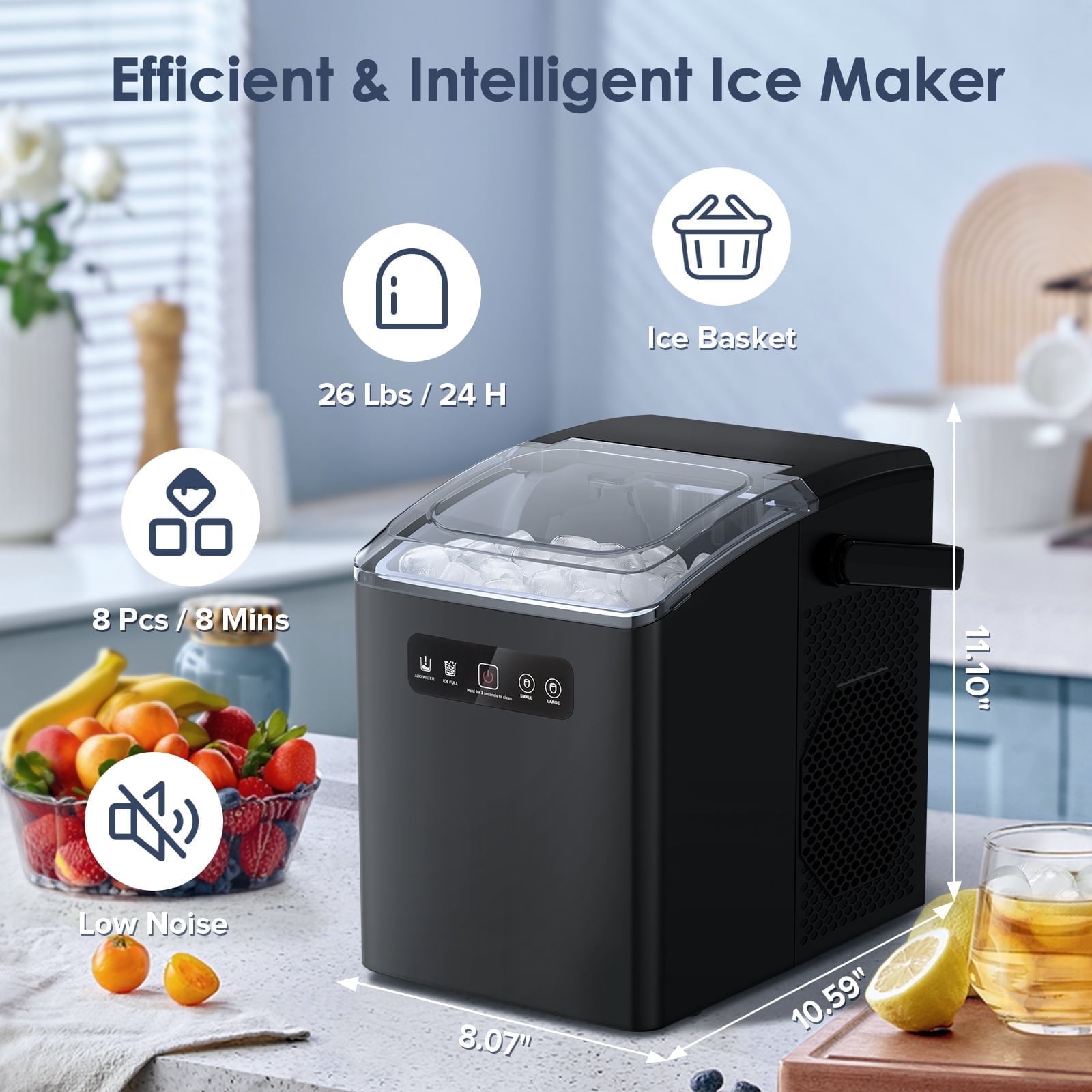 Auseo Countertop Portable Ice Maker, Self-Cleaning with Handle, Ice Scoop, 2 Sizes of Bullet Ice Cubes, for Home/Kitchen/Office-Black
