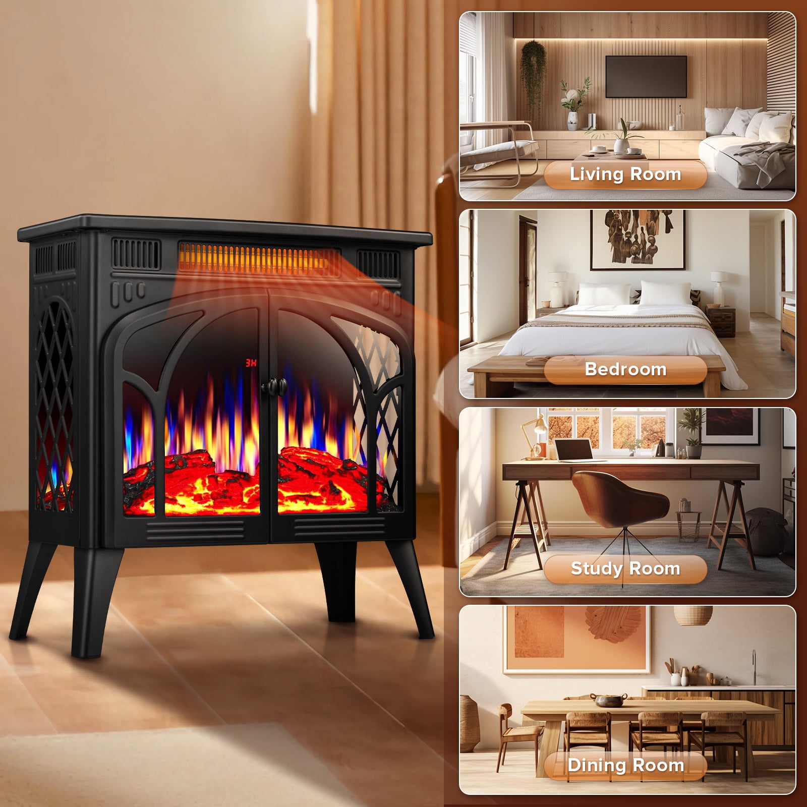 A fireplace in winter can warm your body and mind, so that you can be surrounded by hot air at any time, and you don’t have to worry about how to survive this cold season at home. Auseo’s freestanding fireplace has a retro appearance, original medieval church door design and solid material structure. The efficient heat output of 5100 BTU can help you drive away the cold and be comfortable in winter. The size of this fireplace is: 23.46 inches * 10.67 inches * 24.25 inches. You can move it easily, and it won’t take up much space. This fireplace can be adjusted in five colors. You can adjust it according to your own preferences and suitable scenes. The realistic flame effect seems to put you in the scene. Infrared heating technology makes the heat coverage wider and the heating speed faster, making every corner of the home warm as spring. Whether as a gift or for family use, this fireplace is the best gift in winter. Our products are more popular with the public because of the facade design of the Louvre in Europe. Buy it quickly and let it accompany you into winter!