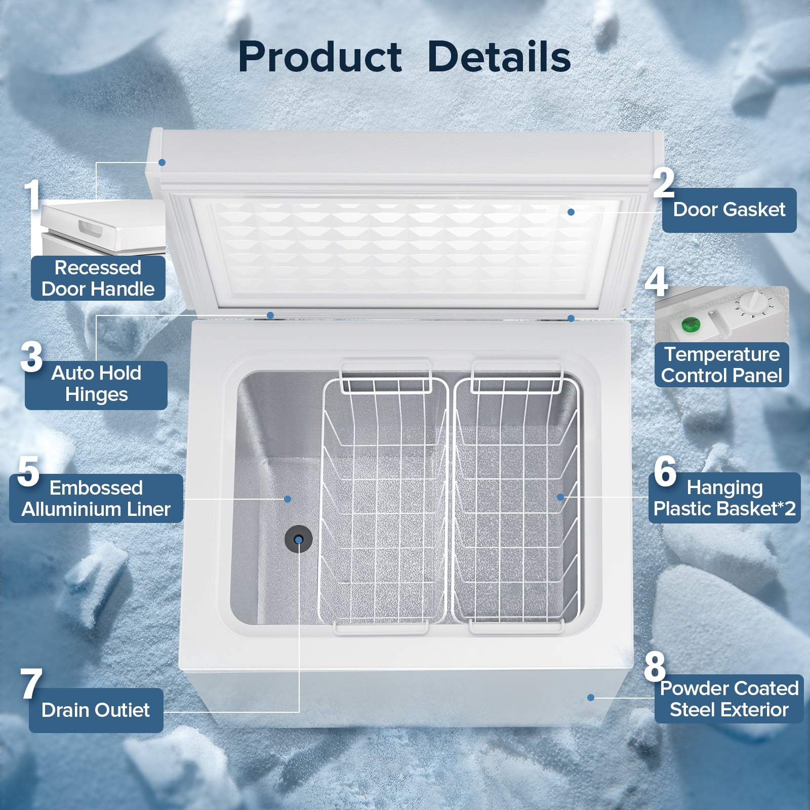Auseo Mini Freezer Chest 3.5 cu ft, White Deep Freezer & Side Handle, Compact Freezer with 7 Gear Adjustable Temperature, Removable Storage Basket*2, Energy Saving