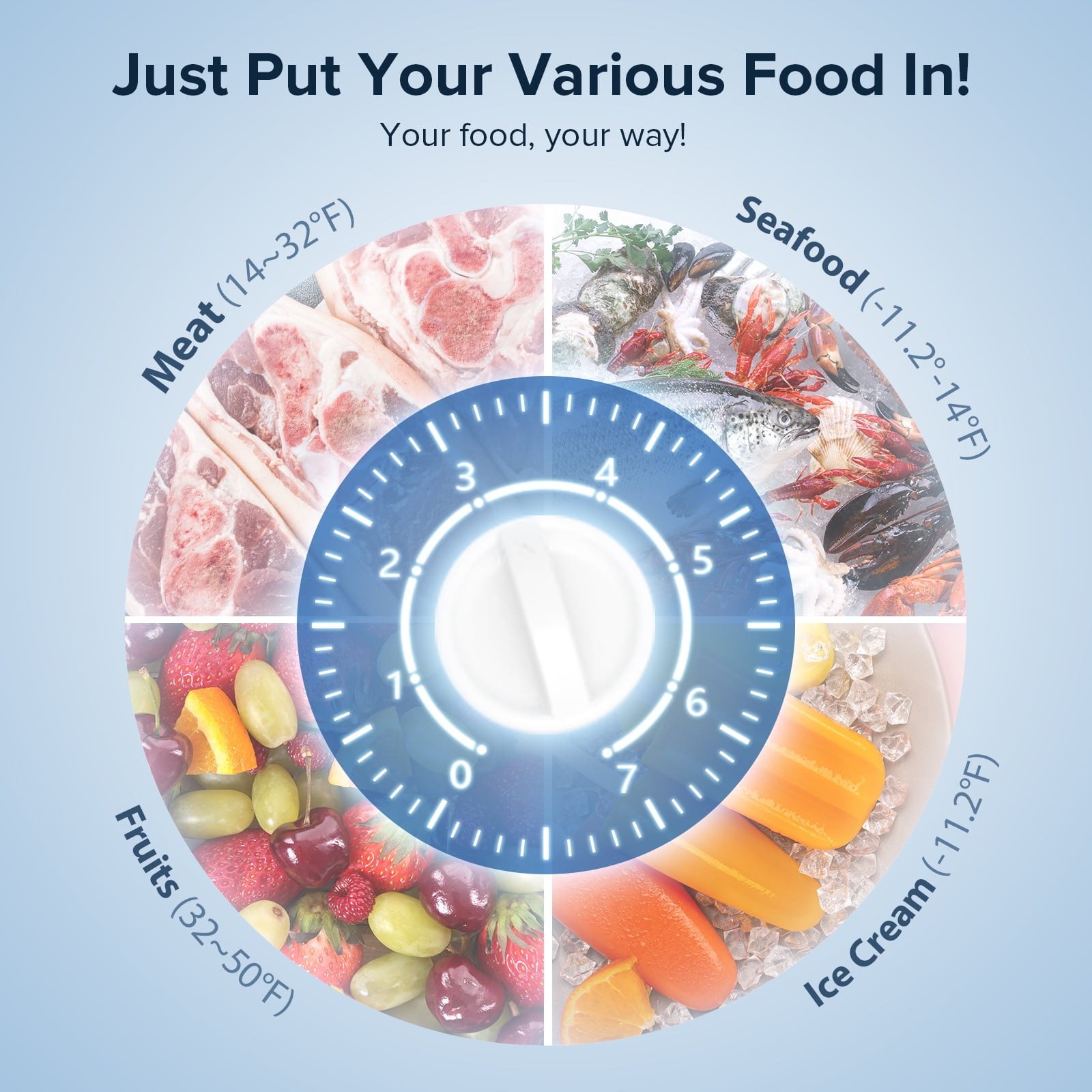 ❄️ COMPACT SIZE & LARGE STORAGE CAPACITY: Auseo 3.5cu.ft. Vertical freezer provides sufficient storage space for all your refrigeration needs. With its size of 19.37*17.72*32.83inch, you can store all kinds of items, including frozen food, meat, vegetables and so on. Say goodbye to the crowded freezer and enjoy the convenience of having enough space to store frozen necessities. ❄️ QUIET OPERATION: We understand the importance of a peaceful environment, which is why our compact refrigerator is designed for quiet operation. The noise of our products is less than or equal to 40 decibels. As the noise level is kept to a minimum, you can carry out daily activities at home or in the office without any interference or interference. ❄️ CUSTOMIZABLE TEMPERATURE SETTING: This freezer is equipped with 7 temperature settings, so that you can accurately control the freezing conditions. Whether you need mild refrigeration to preserve some items or deep refrigeration for long-term preservation, our refrigerator can flexibly adjust the temperature according to your preference. ❄️ CONVENIENT DETACHABLE BASKET: In order to increase convenience and arrangement, our refrigerator comes with 2 detachable basket. This allows you to easily separate and access your small items or common items without rummaging through the whole refrigerator. Keep the refrigerator clean and orderly, and maximize the storage efficiency. ❄️ SUITABLE FOR A VARIETY OF SCENARIOS: Our freezers are versatile and can be used in various occasions, including homes and offices. Whether you need extra freezing space in the kitchen or a dedicated freezer in the workplace, this compact freezer can perfectly adapt to any environment and provide convenient and reliable freezing function. Upgrade your freezing experience with our horizontal freezer, providing spacious storage capacity, quiet operation, customizable temperature setting, convenient movable basket, and various use options suitable for your home or office. Enjoy the benefits of efficient freezing and orderly storage. Order today to improve your freezing ability!
