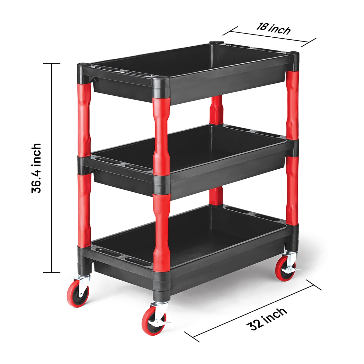 Auto Drive Heavy Duty Professional Detailing Cart. Durable, high density industrial Polypropylene cart measures: 32 In. x 18 In. x 36.4 In. (81 cm x 45.6 cm x 92.5 cm). Cart Includes smooth rolling Heavy Duty 4” locking casters. Three heavy duty 3 7/8” deep trays provide space for you to organize auto detailing products & tools. Cart can hold up to 300 lbs. Cart won’ t rust, chip or dent. Cart is chemical and water resistant. Non slip trays are easy to clean. Ideal for home use, garage, workshops, warehouse, office, restaurants, businesses and more. No Tools Needed For Assembly.