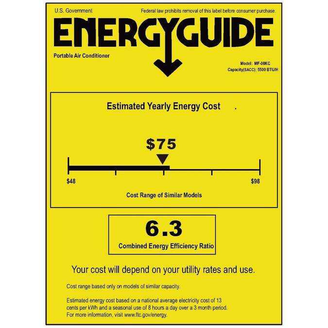 • 8,000 BTU ASHRAE Standard / 5,500 BTU DOE Standard