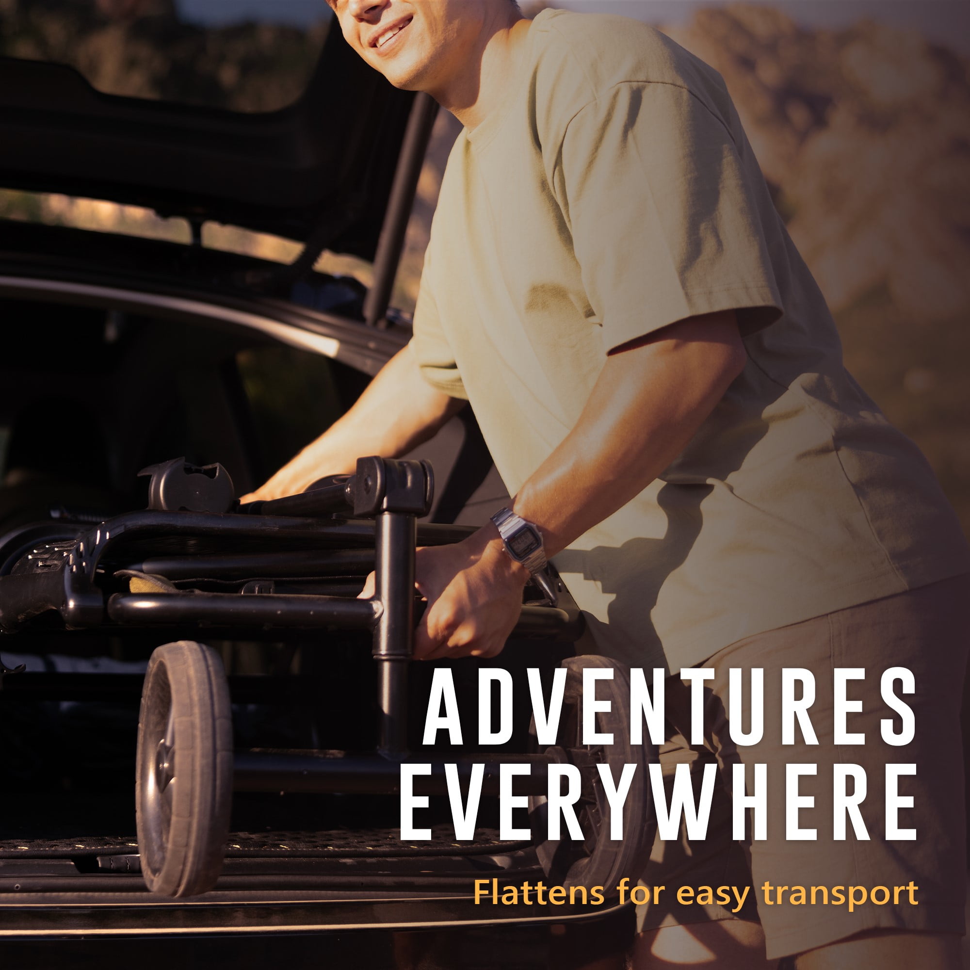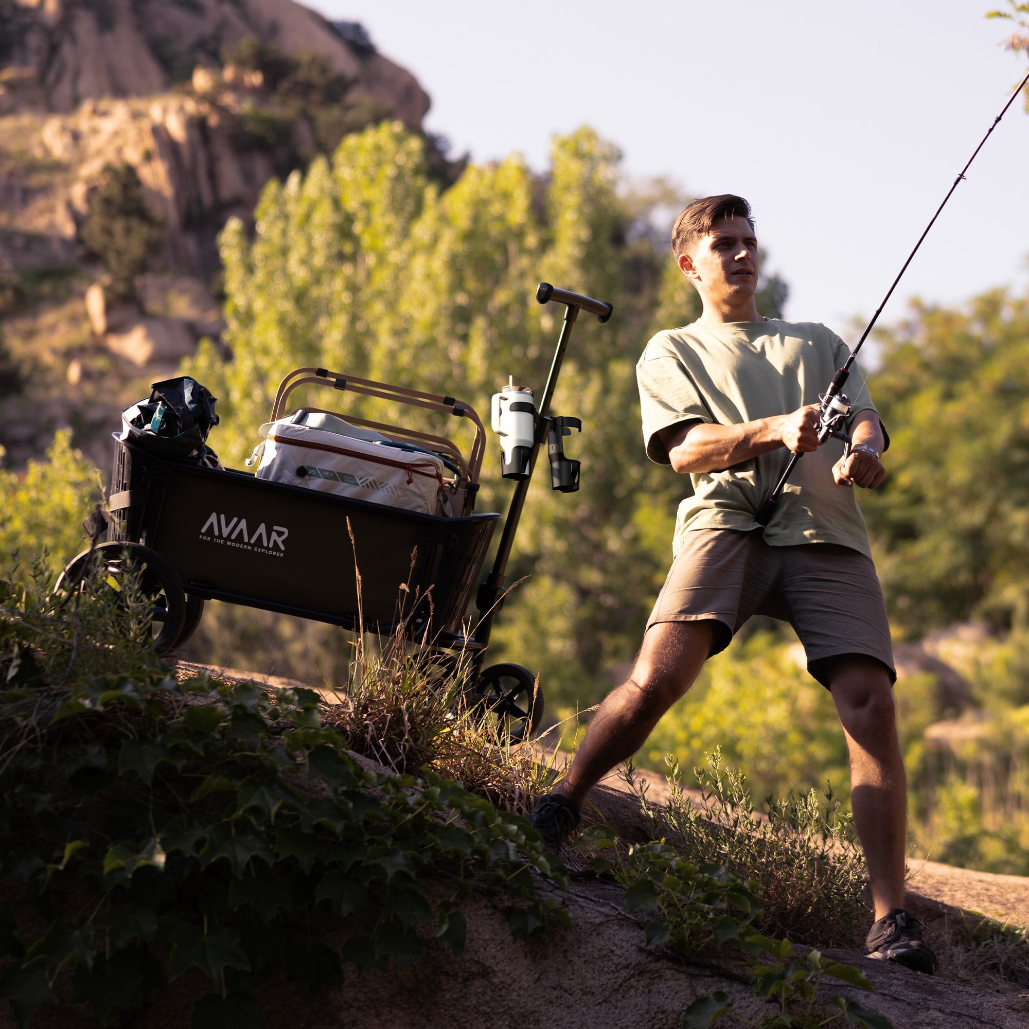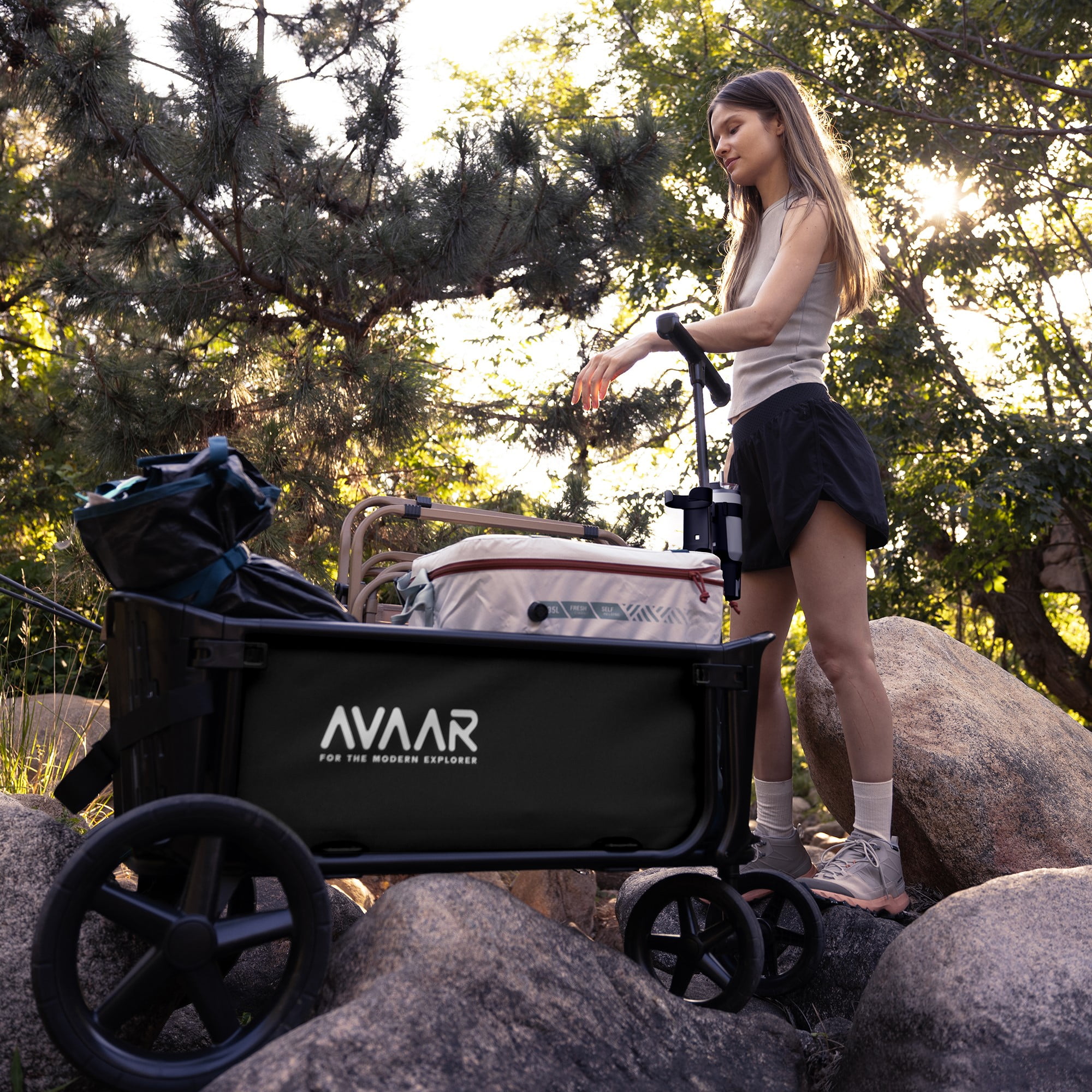 The Avaar Go Anywhere Cart effortlessly adapts to all your exploring needs. This large cart features all-terrain wheels and a tailgate function, so you can carry oversized items. You can easily push and pull the cart, and it has a 360-degree rotating front axle for a super tight turning radius — perfect for those times when you venture off the beaten path. Accommodating users of all sizes, the Avaar Go Anywhere Cart’s handle height is fully adjustable. Not only that, it never touches the ground, keeping your hands totally clean. The Go Anywhere Cart’s two self-righting, adjustable cupholders fit containers of any size, keeping your favorite beverages always within reach. Need extra storage space? The Avaar Go Anywhere Cart has you covered with convenient side pockets, perfect for stashing small items or valuables. So you can keep your essentials close at hand and out of sight. Built to handle heavy loads with ease, the Avaar Go Anywhere Cart boasts an impressive 400 lb. weight capacity. Assembled dimensions: 43.3″ L x 25.2″ W x 44.1″ H.