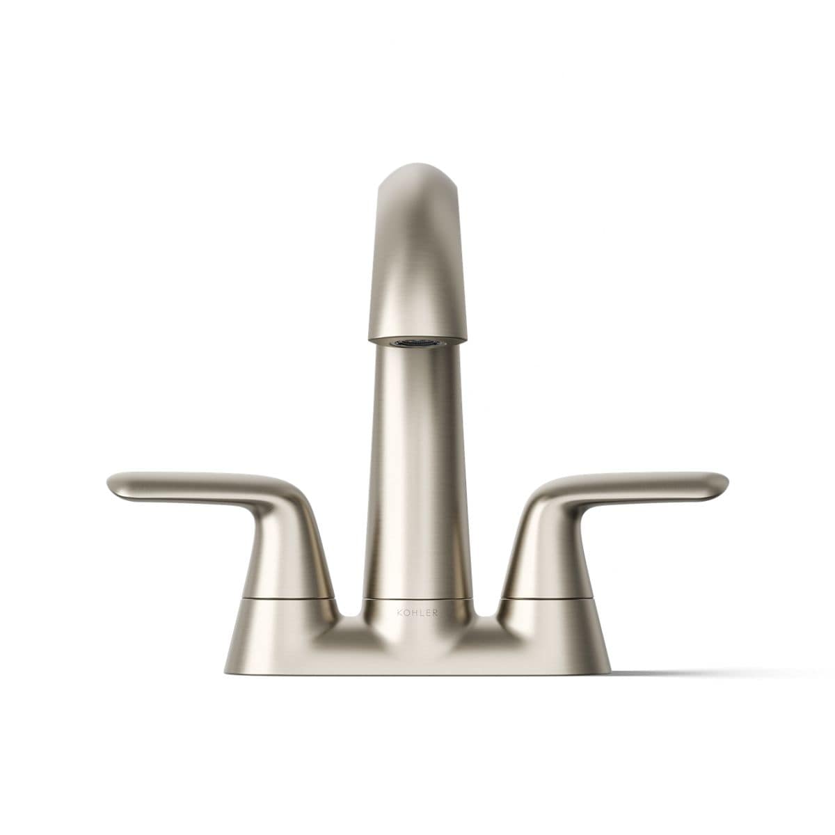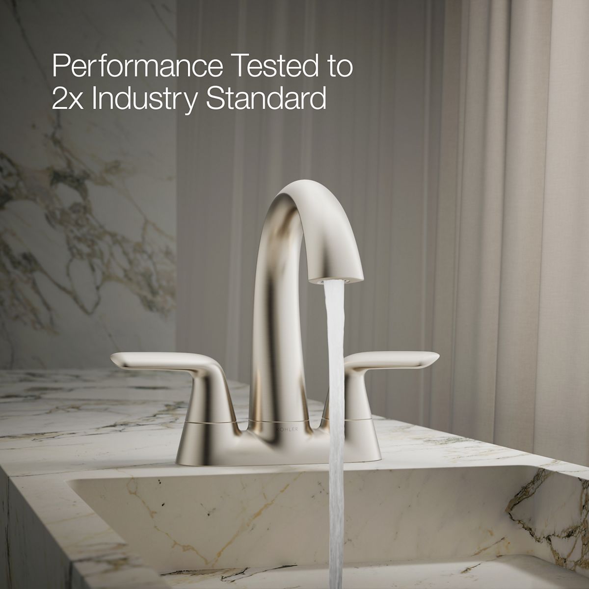 Avail Vibrant Brushed Nickel 4-in centerset 2-handle WaterSense Mid-arc Residential Handle Bathroom Sink Faucet with Drain