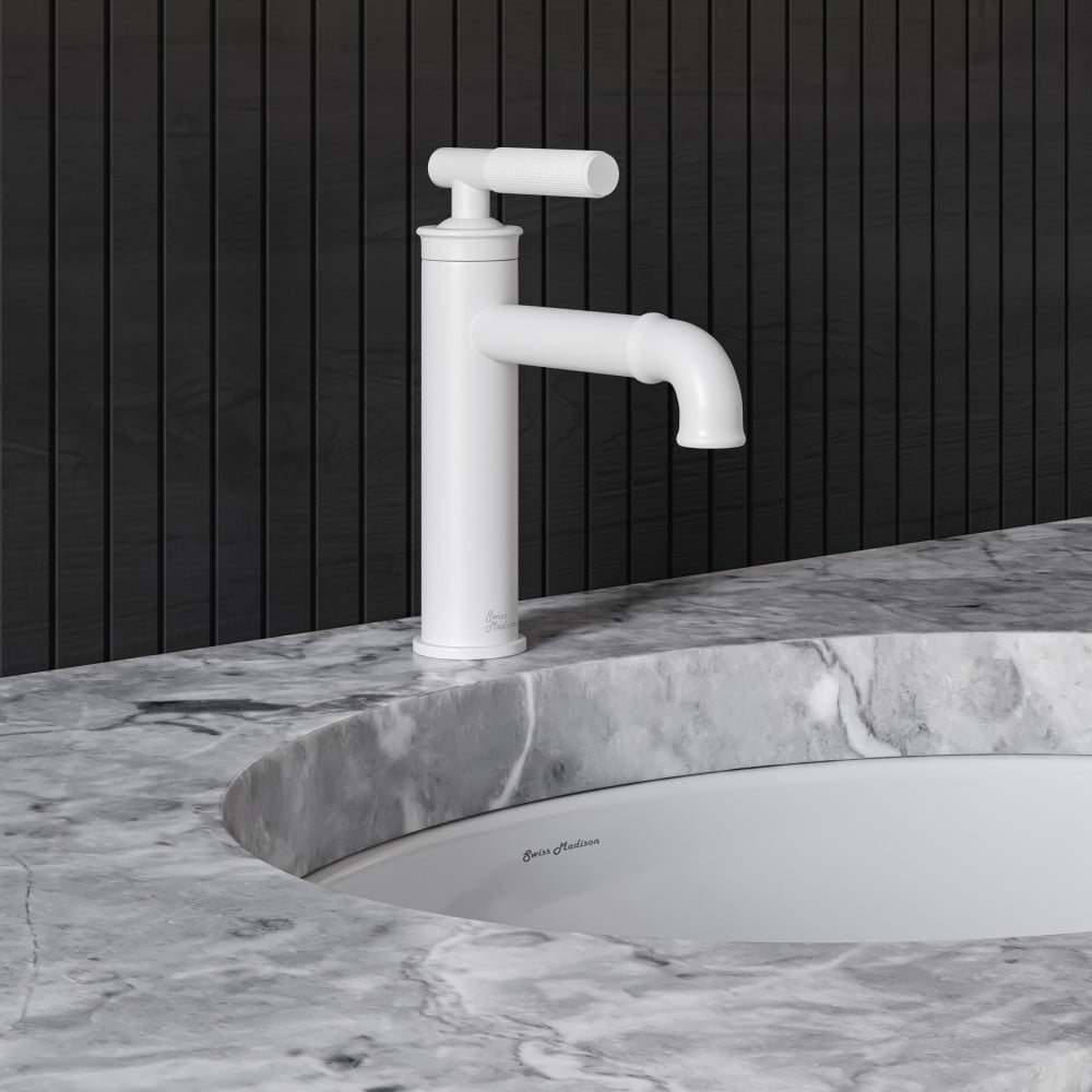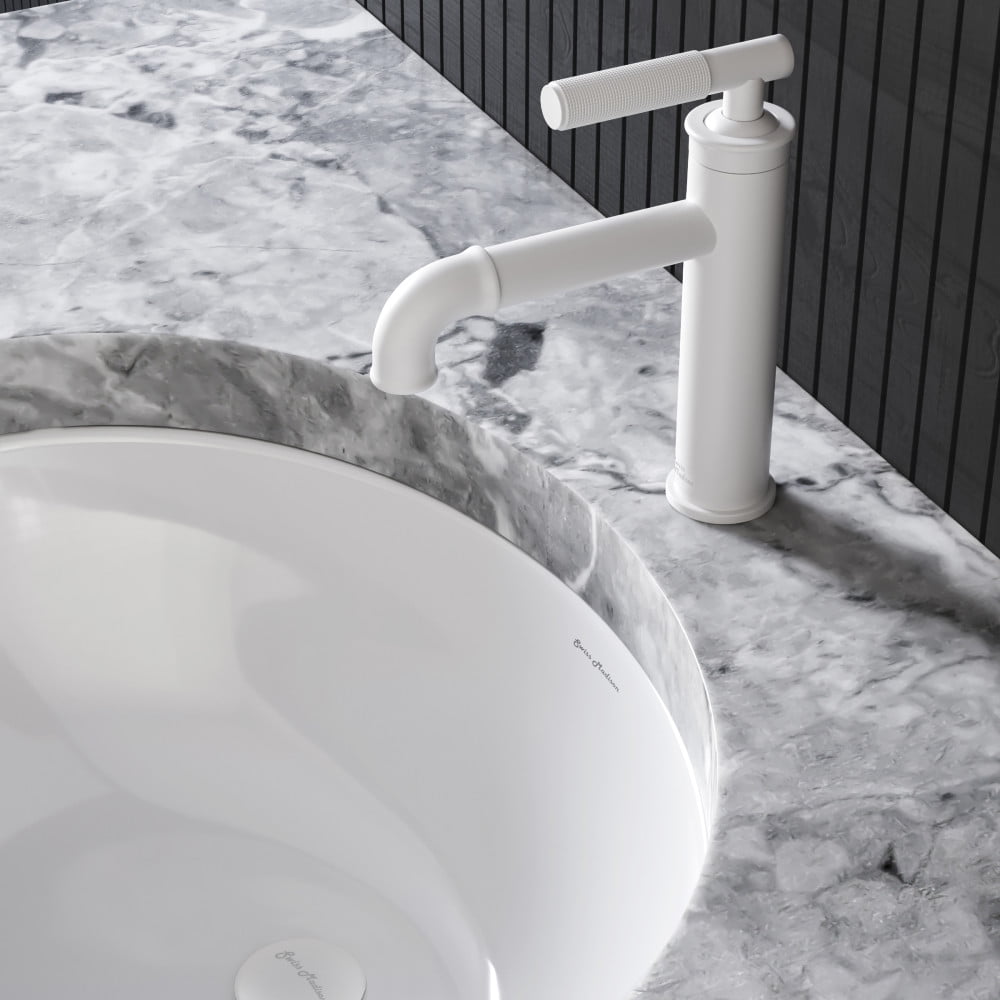 Explore the Avallon collection, where rustic charm and contemporary aesthetics merge to create a warm and inviting atmosphere. Discover simplicity and sophistication in one with our single-handle faucets, offering smooth operation and contemporary design. Offered in white with a matte finish.
