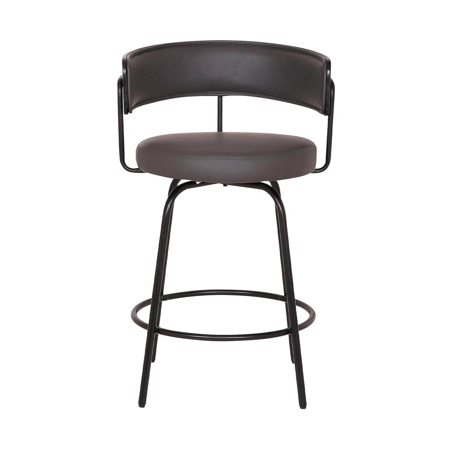 360-degree swivel seat function allows for a wide range of user mobility Metal frame assures longevity from this dependable design Added footrest offers an exceptional degree of user leg support Thick, semi-firm cushion will give you comfort all day Medium cushioned open back to help keep your back supported and aligned Legs are tipped with rubber protectors to prevent sliding on or scratching floors Ships in one box, ready to be assembled hassle-free with clear instructions