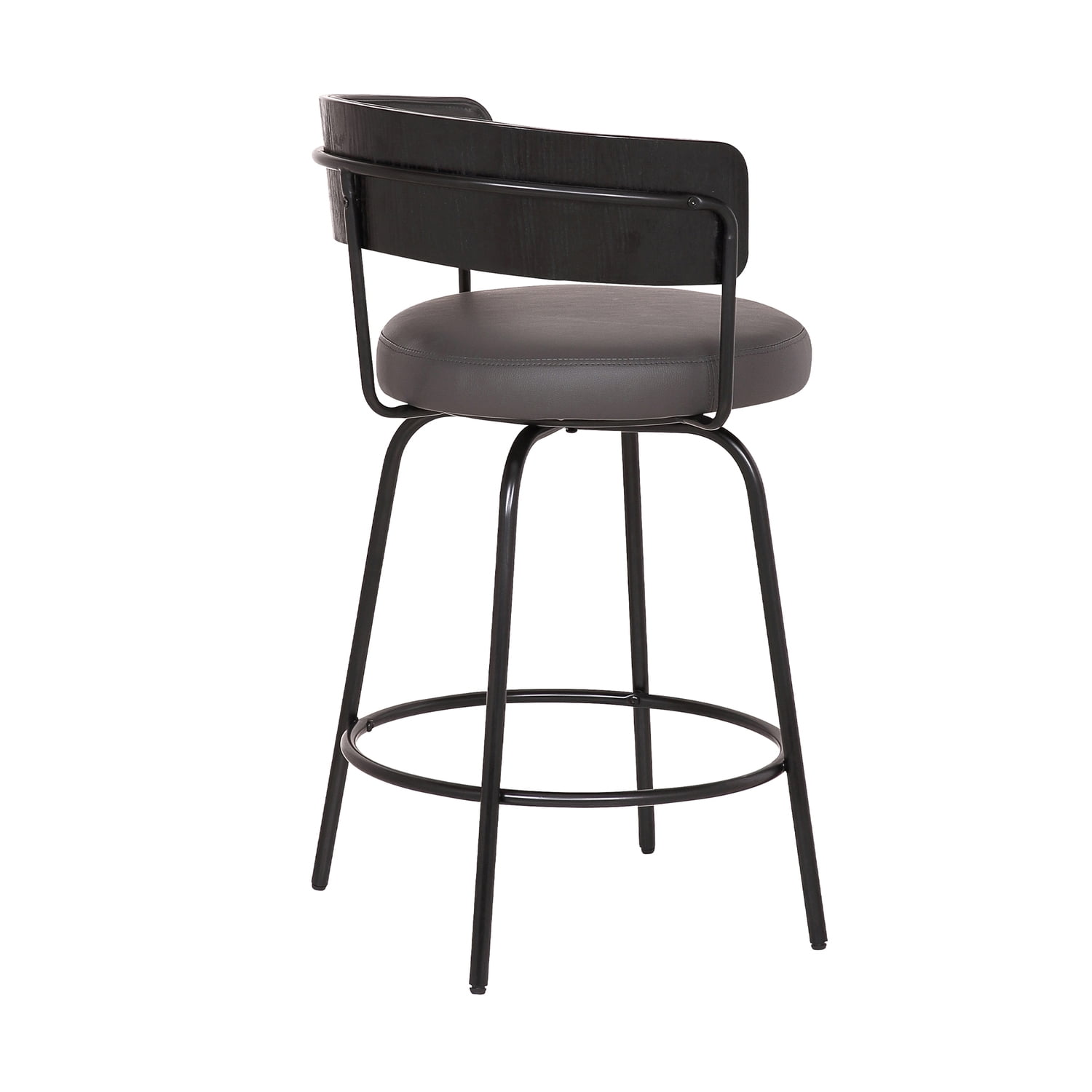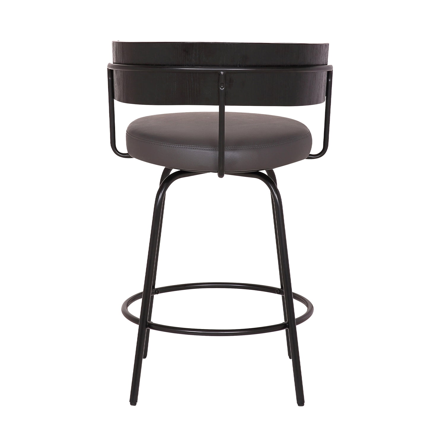 Update your kitchen counter or bar area with the clean, minimalist design and faux leather upholstery of this contemporary bar stool. Featuring a curved back with black brushed wood, padded faux leather seat, and ring footrest, this bar stool allows you to lounge in easy comfort. A steel frame with black powder coat finish offers sturdy and durable performance. The Avalon stool is available in 2 industry standard sizes; 26” counter and 30” bar height.