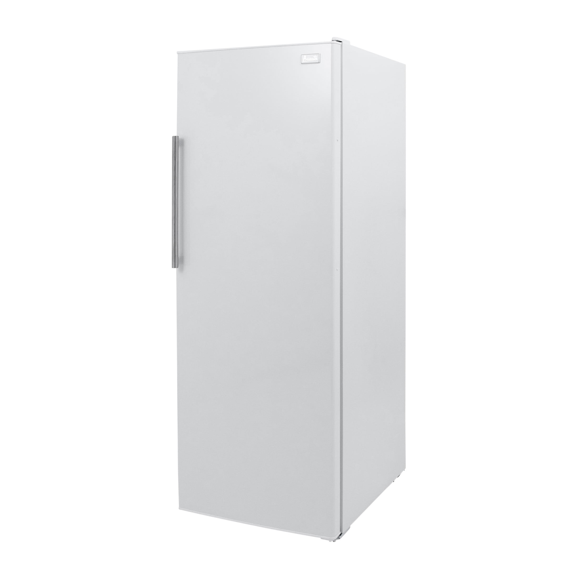10.8 cu ft capacity provides plenty of storage for all your frozen food needs This vertical freezer features a white exterior with stainless steel handle Digital thermostat Reversible door Three adjustable glass shelves with white trim help you organize your items LED interior display light lets you easily see what’s inside Equipped with 4 full-width door bins for storage and organization See-thru plastic crisper is ideal for storing produce This vertical freezer is Energy Star rated Covered by the Avanti One-Year Limited Warranty