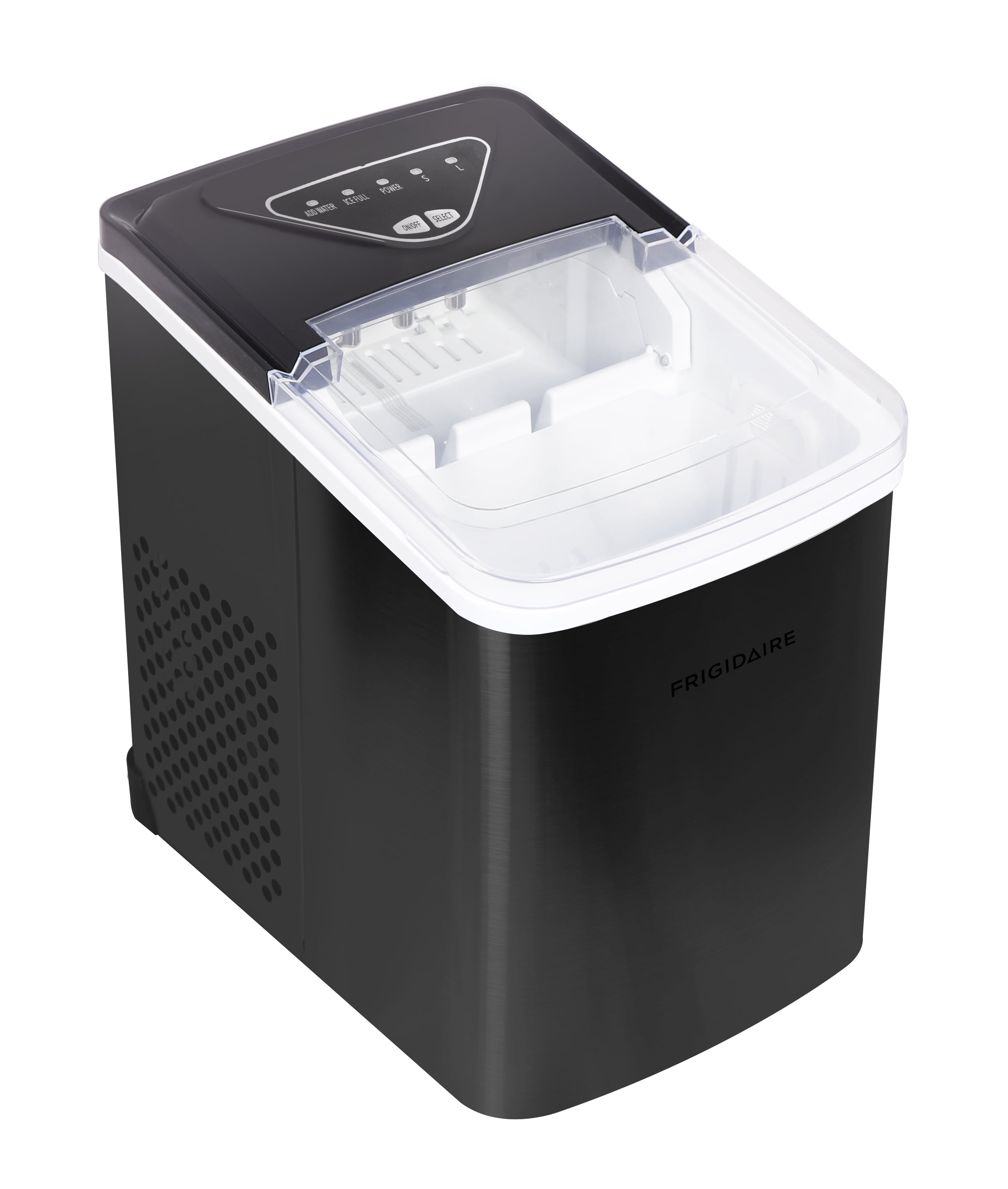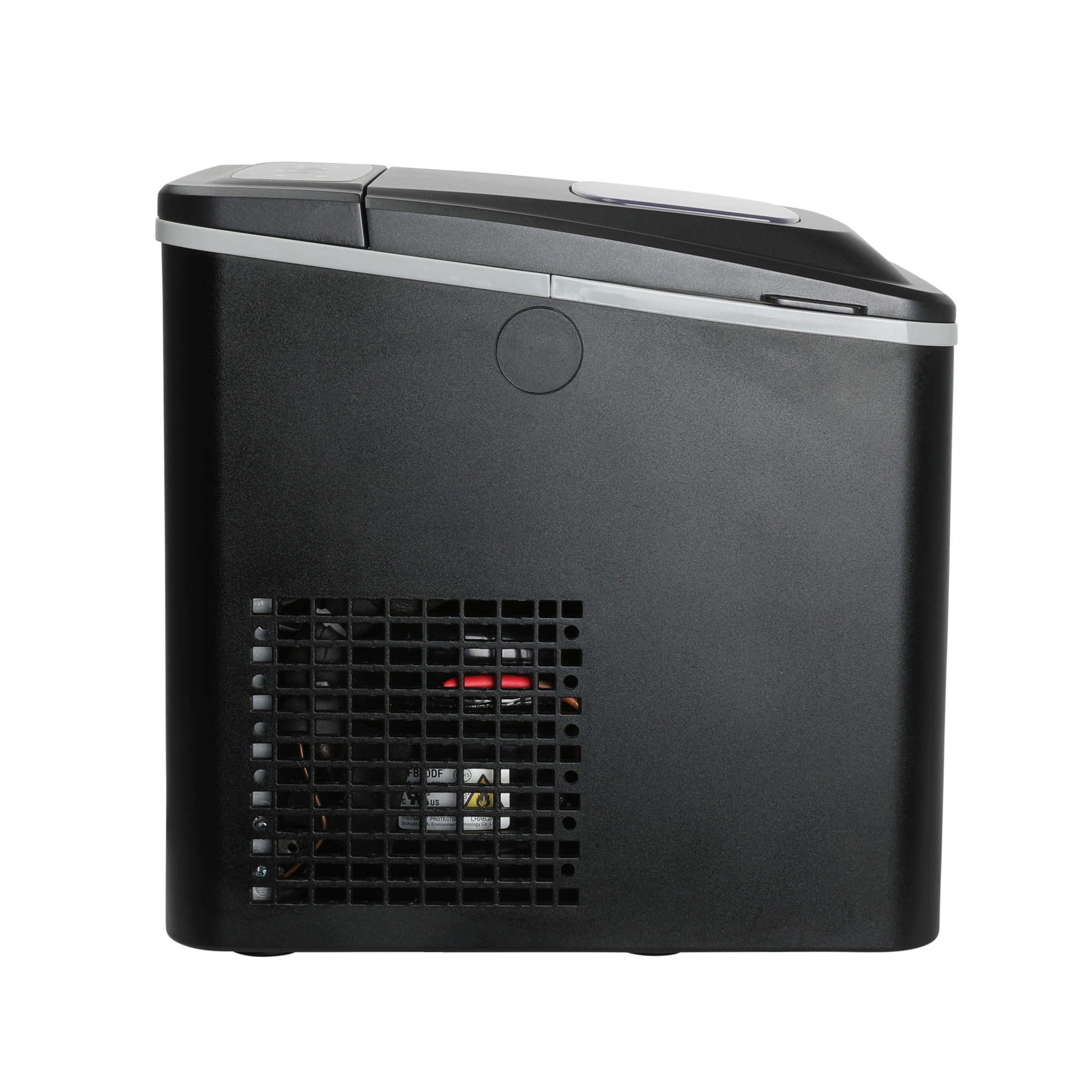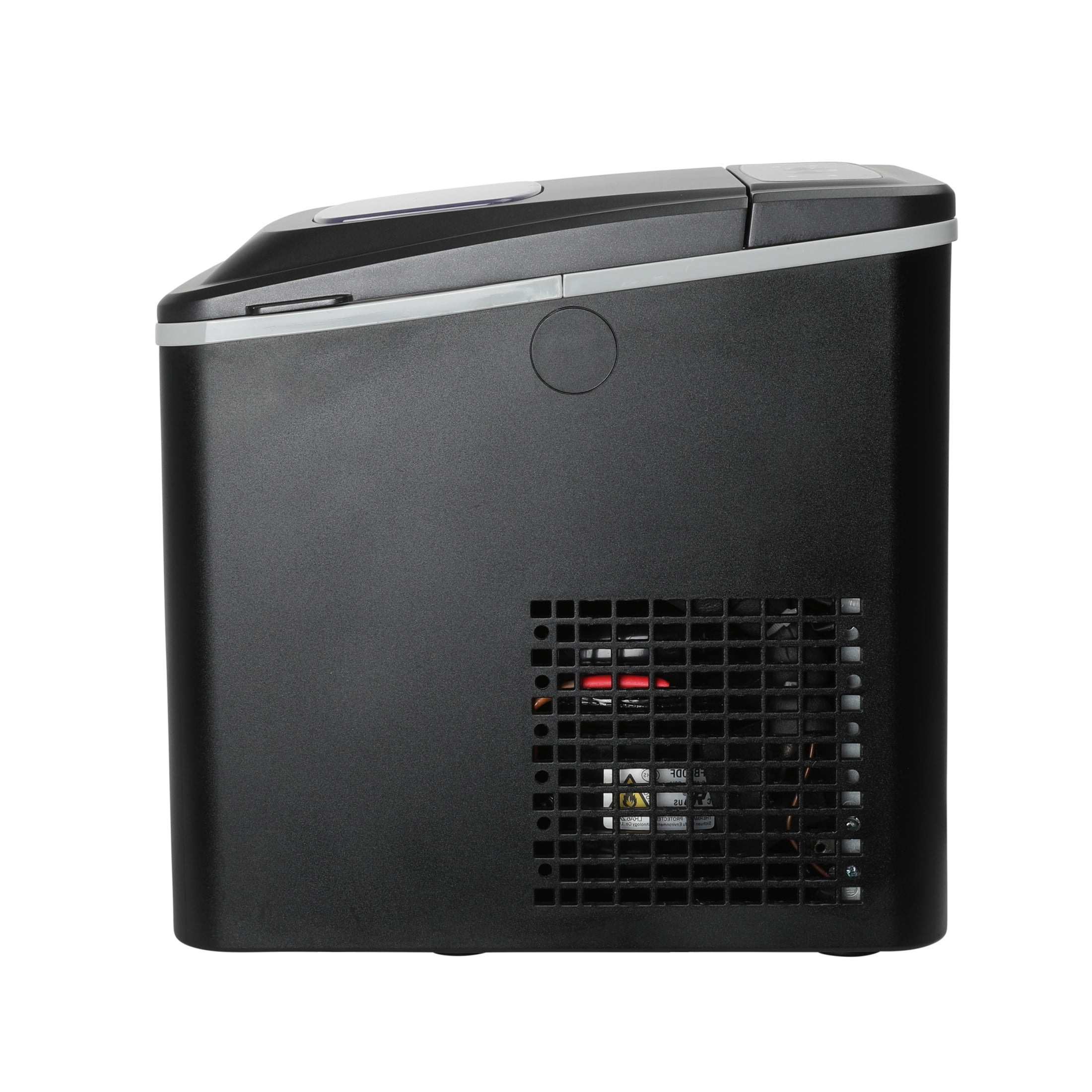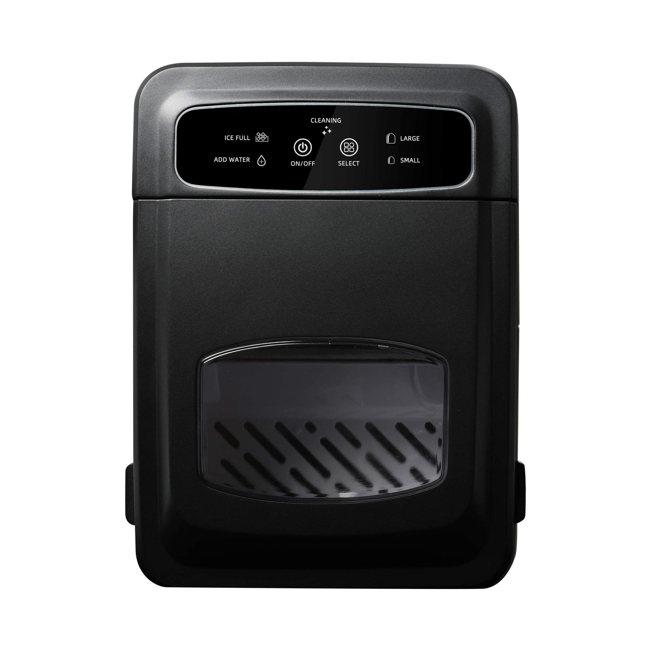 Makes up to 26 lbs. of ice per day. Choose between small or large sizes of round, smooth, bullet-shaped ice to suit your preference. Produces a batch of ice in as little as 6-minutes. Features “Add Water” and “Ice Full” indicators. Easy to use digital controls. Self-cleaning function ensures clean and fresh-tasting ice every time. Includes ice scoop and ice tray for easy handling and serving. Compact design fits effortlessly on any countertop for convenience. Easily portable for use at home or any event. Ultra quiet operation at just 49 dB.