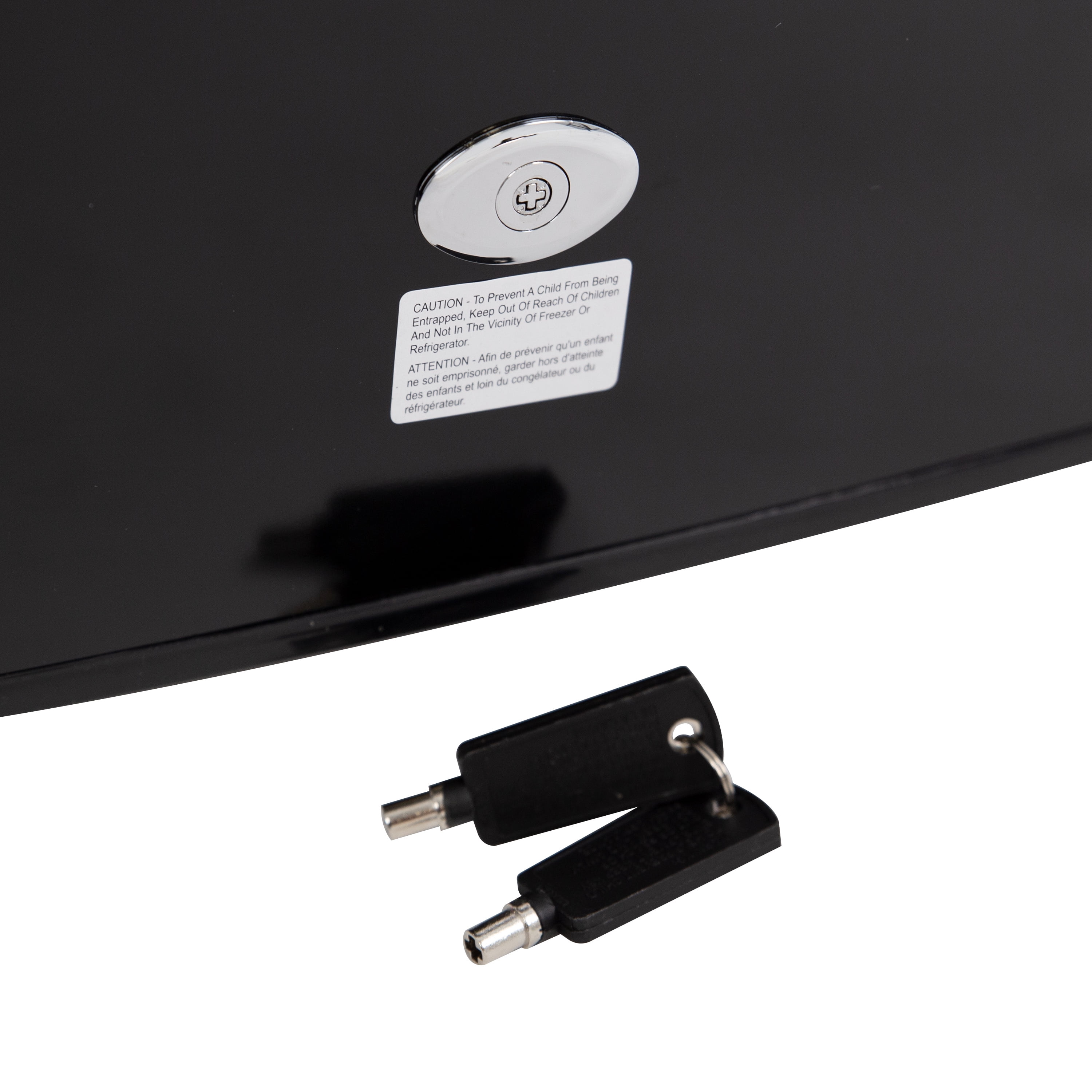 4.4 cu. ft. capacity Two adjustable/removable glass shelves and glass top crisper Full range temperature control Automatic defrost Interior light and adjustable leveling legs Security lock at the bottom of the door Space-saving recessed door handle and flush back design Reversible door, left or right swing ENERGY STAR® certified Covered by Avanti’s 1-Year Manufacturer Limited Warranty