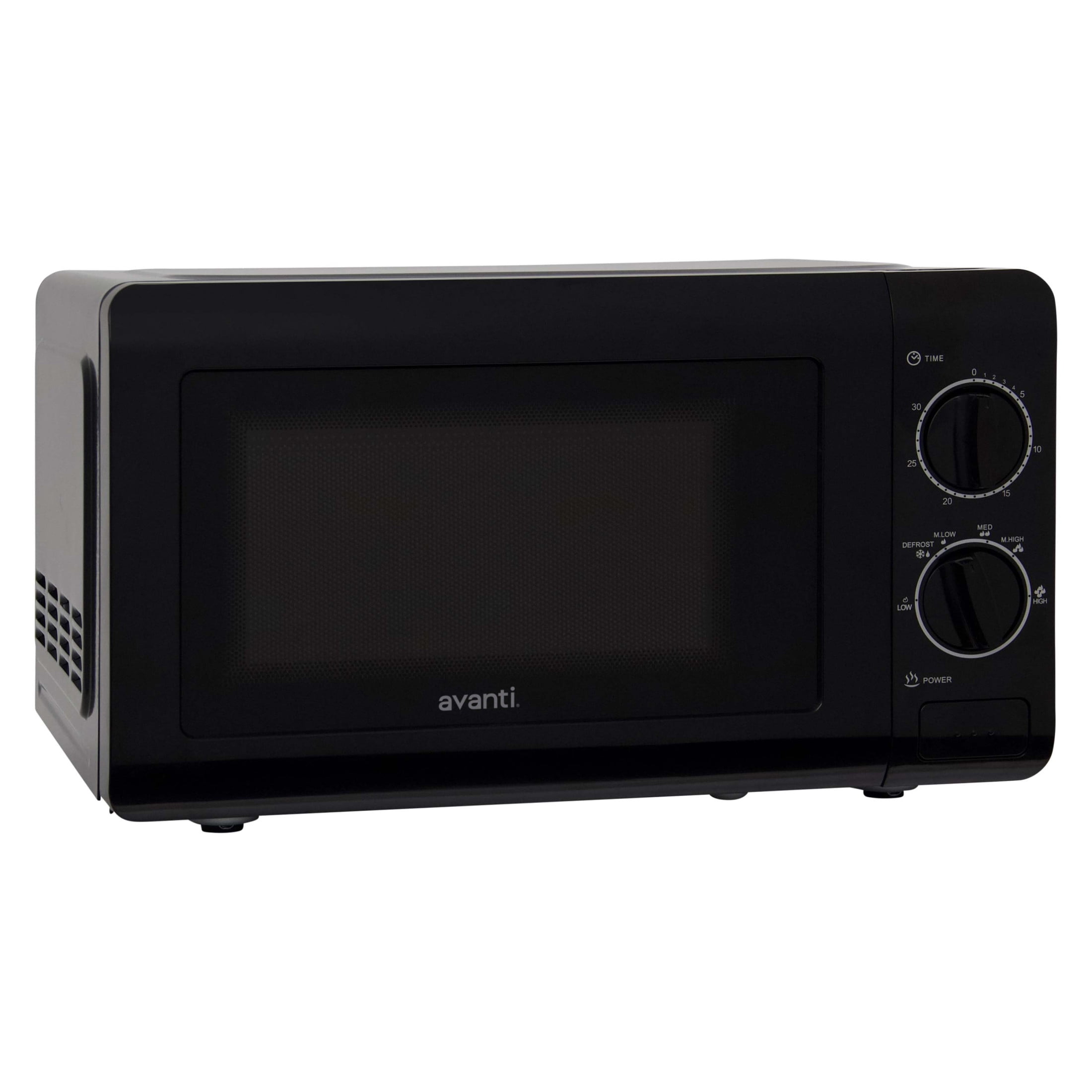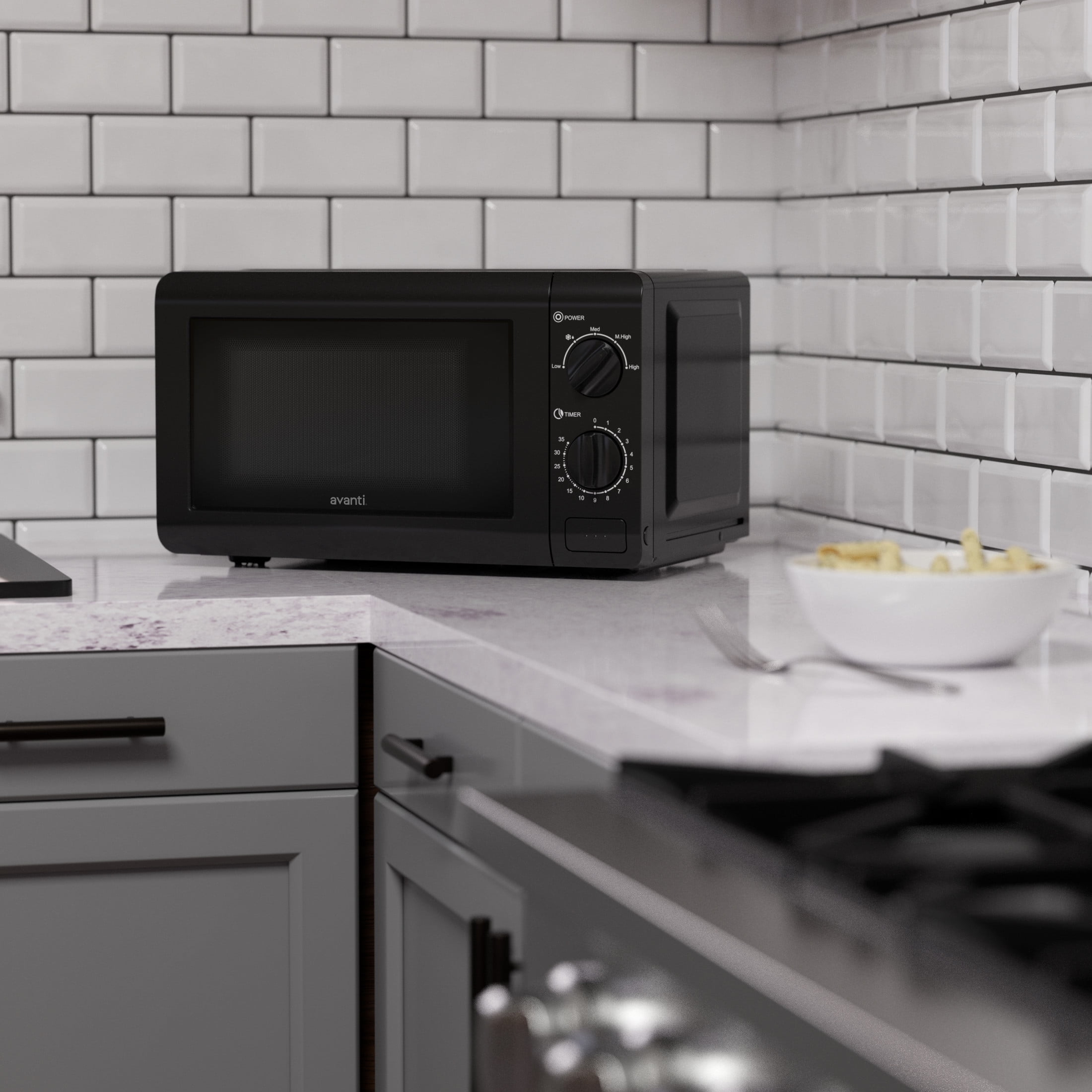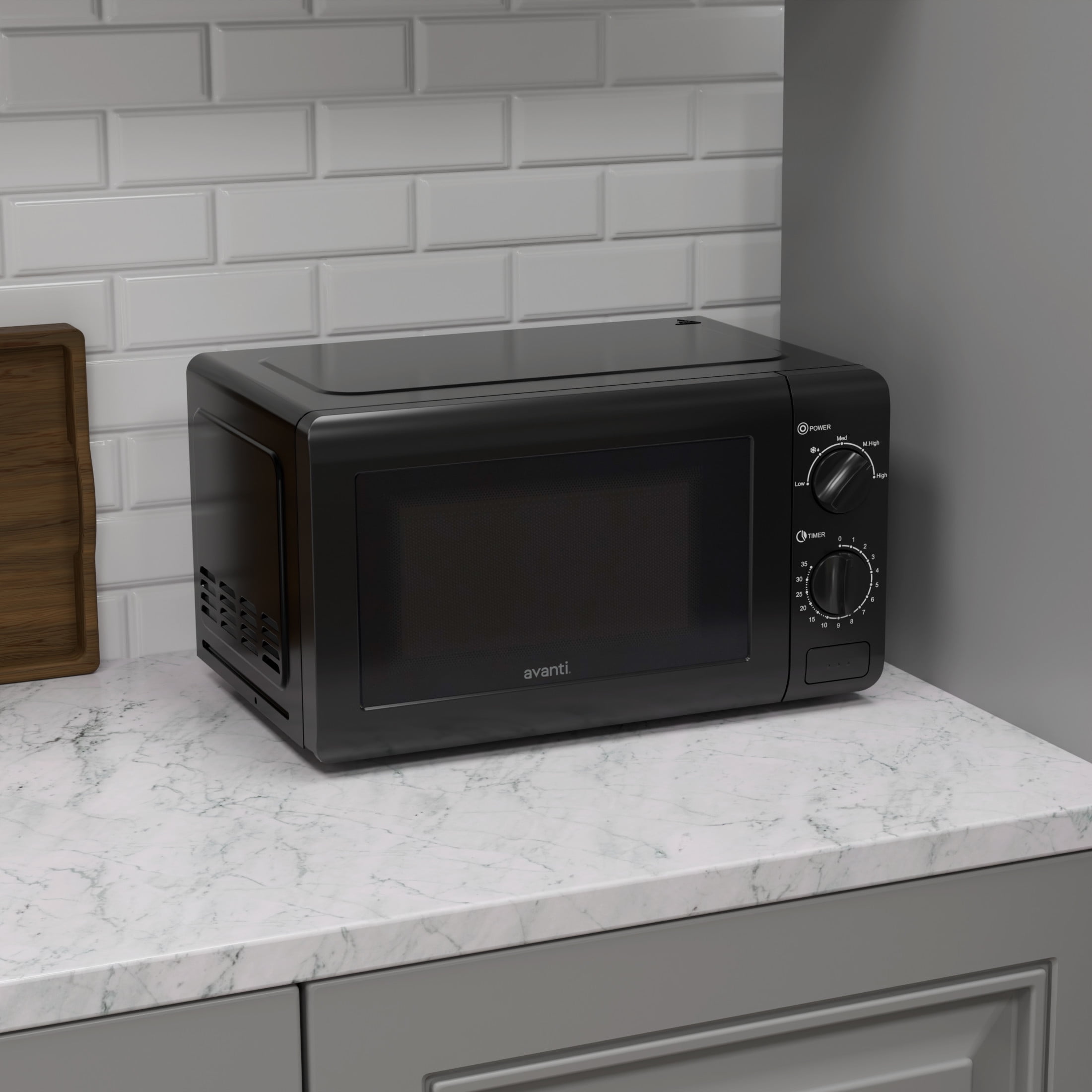 Save counter space with this 0.7 cubic foot microwave oven from Avanti. Its compact size makes it the perfect countertop microwave for the dorm, man cave, office, studio apartment, RV, tiny home, rental room, condo, vacation home or anywhere you need to cook food fast. This easy-to-use microwave features 700 watts of cooking power. Easy-to-use mechanical dials allow you to set the timer from one to 30 minutes and choose from five power levels (low, med-low, medium, med-high, high). This microwave also has a defrost setting, a removable glass turntable and a push-button door release. Maximize your counter space with this small microwave oven. Covered by the Avanti One-Year Limited Warranty.