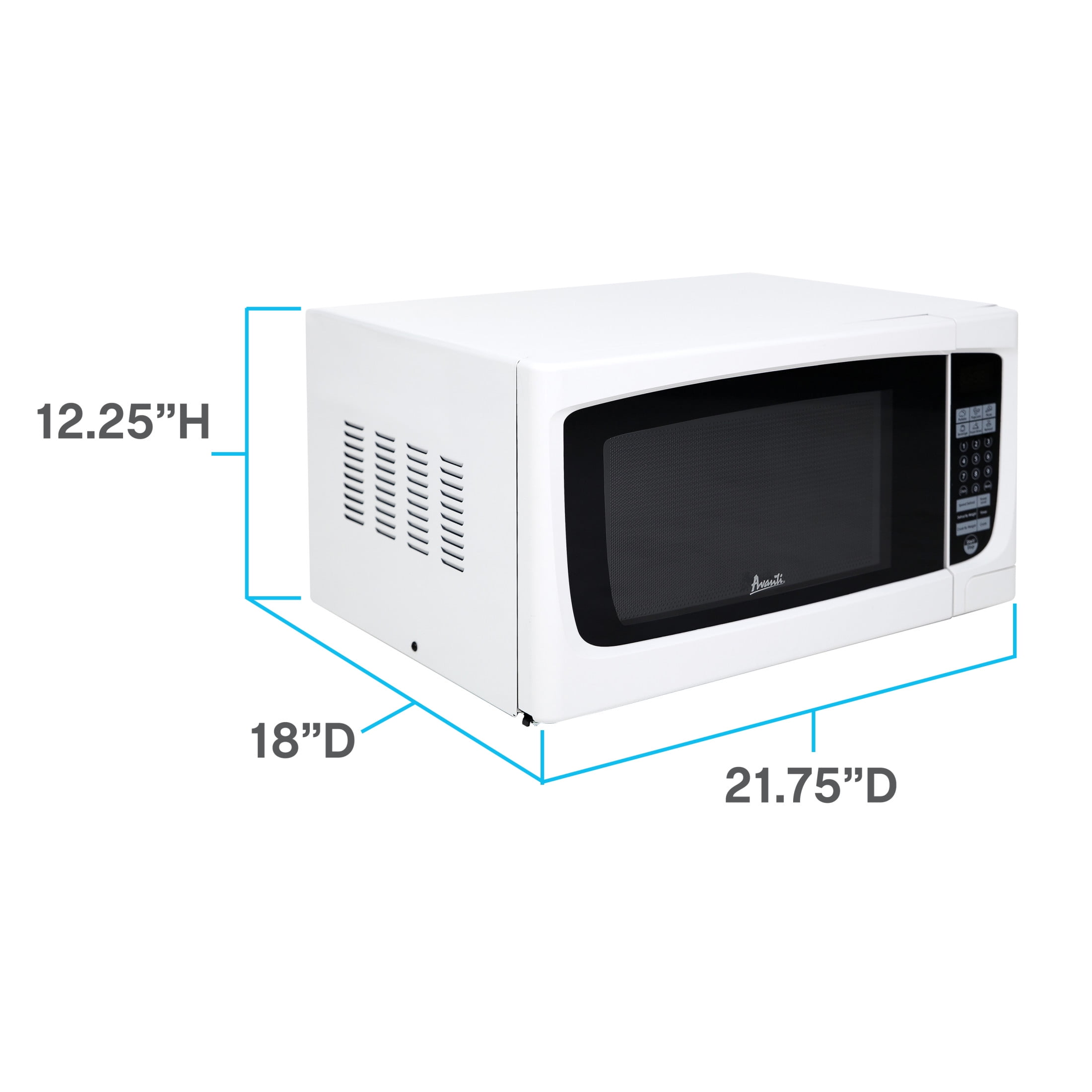 1.4 Cubic Foot Capacity Microwave Oven, 1,000 Watts, White Save counter space with this compact, 1.4 cubic foot, microwave oven from Avanti. The perfect countertop microwave for the dorm, man cave, office, studio apartment, RV, tiny home, rental room, condo, vacation home, or anywhere you need to cook food fast. This small microwave features 1000 Watts of cooking power, an electronic control panel, 9 pre-programmed cooking settings (popcorn, baked potato, pizza, beverage, frozen dinner, reheat, fresh vegetable, frozen vegetable, soup), and a removable glass turntable all in its compact footprint that fits perfectly on the countertop. 1,000 watts of cooking power. Features an electronic control panel. Nine one-touch, preprogrammed, cooking settings. Speed defrost setting. Cook/defrost by weight. Kitchen timer. Removable glass turntable.