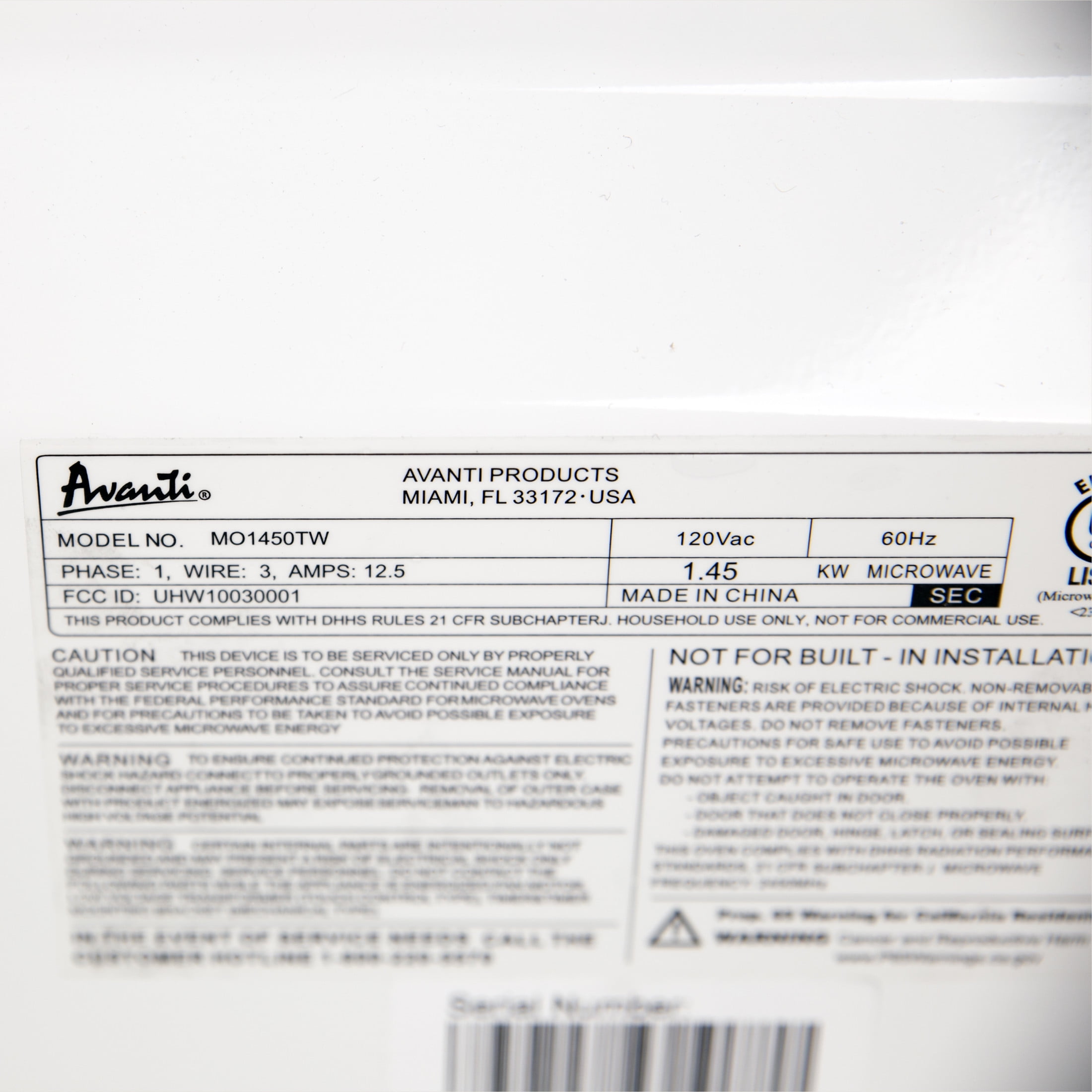 Avanti MO1450TW 1.4 cu ft Microwave Oven, White 1.4 cu. ft. microwave 1000 watts of cooking power Electronic control panel One touch cooking programs Speed defrost