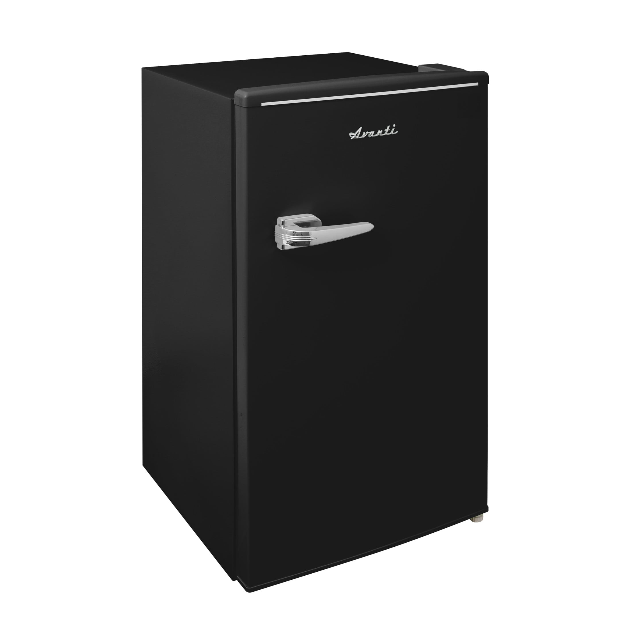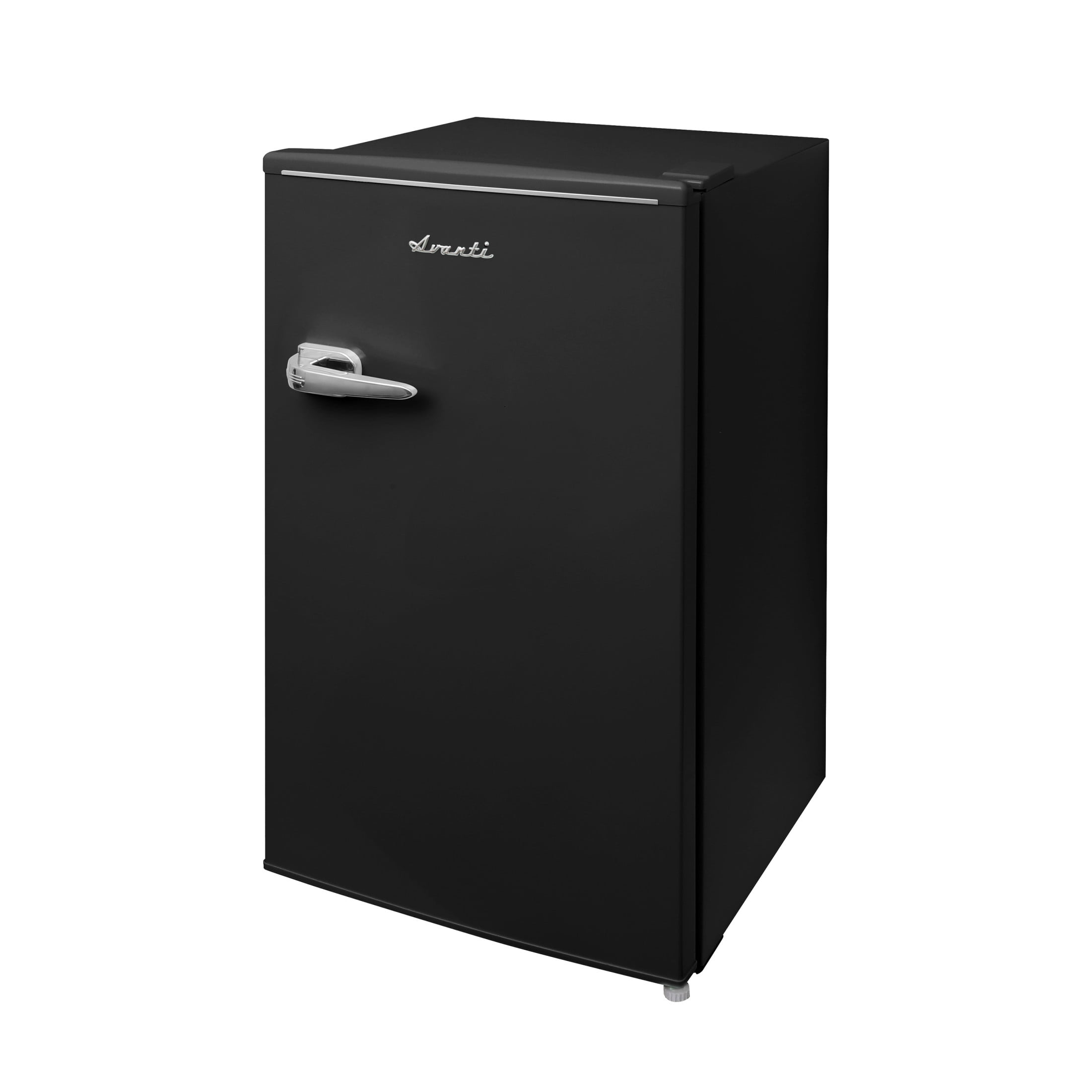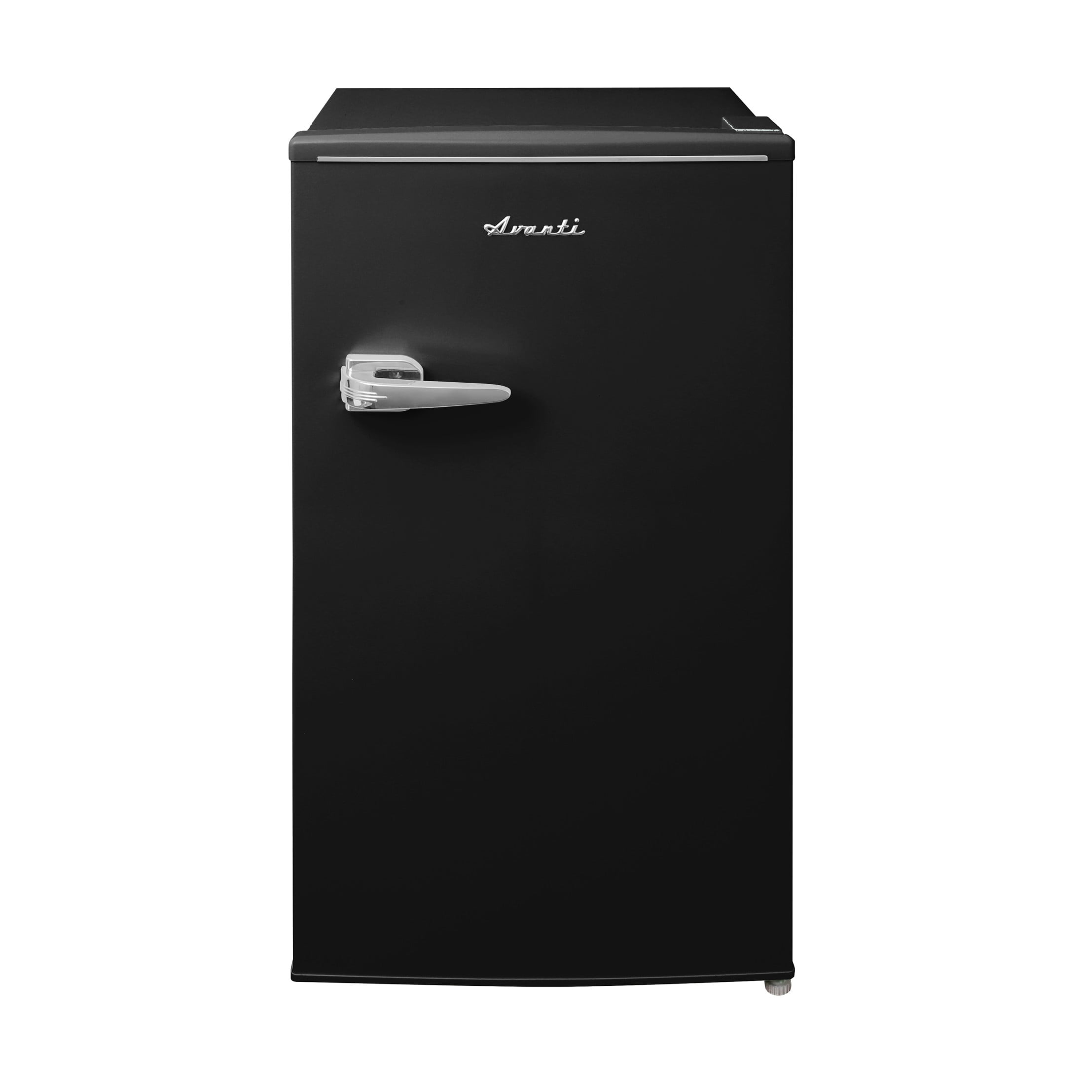 Make game time, family movie night, an all-night study session, or your after-workout hydration routine a breeze with the Avanti RMRS31X5R-IS Retro Compact Mini Refrigerator with Manual Defrost in Black. This stylish and compact mini fridge is designed to keep your favorite snacks and beverages close at hand whether in your office, dorm room, home gym, or rec room. The vibrant, retro, 3.1 cubic foot refrigerator elevates space with form and function that will enhance your life. The perfect mini-fridge for any space from the man cave to the she-shed, from the basement bar to the teenage bedroom, or anywhere you need a little extra refrigerator space. The high-rimmed door shelves allow you to easily store beverages while the glass interior shelves allow you to arrange salads, fruits, snacks, and other food for easy access throughout the day. This compact fridge features manual defrost so your food and beverages stay fresh and cold without icing over or coming out unevenly chilled. Select the right settings for your items with the mechanical and easily adjustable temperature control. Enjoy quick access to your favorite snacks and drinks with the Retro Compact Mini Refrigerator with Manual Defrost from Avanti.